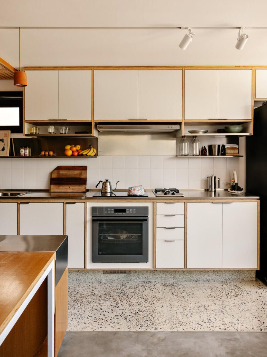 “Acho que um grande norte foi a ideia de contrastar. Concreto, madeira, inox, granilite, cores. Foram poucas iterações do projeto até chegar na versão final. Mas cada versão eram ideias que foram se aperfeiçoando, com os dois lados se empolgando para fazer algo único.”