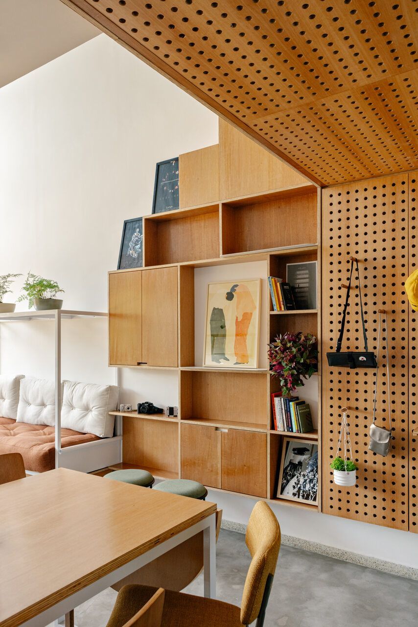 Assinado pelo Studio Papaya, dos arquitetos Delia e Samuel, este duplex de 50m² traduz um momento decisivo: a primeira casa de quem sai do lar dos pais para morar sozinho. Concluída em 2025, a reforma partiu de um desejo claro de autoconhecimento e ganhou forma a partir de referências bem definidas, entre elas, os projetos do canal australiano Never Too Small, que levaram o morador até o escritório e ajudaram a construir uma conversa honesta sobre viver bem em poucos metros.