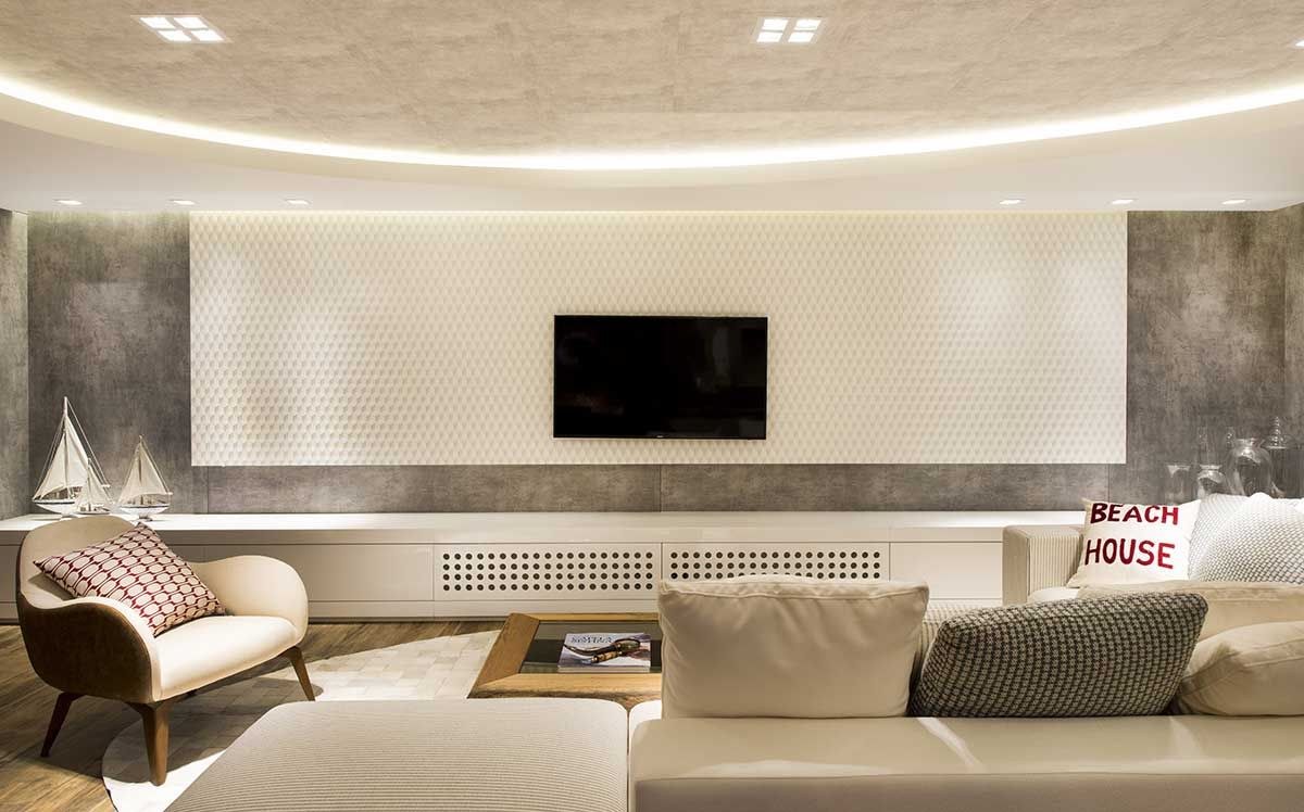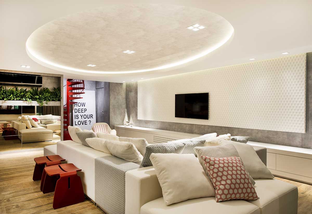 Os clientes procuraram o escritório Anna Maya e Anderson Schussler Arquitetura e Interiores para integrar o living no pavimento inferior, criando um ambiente mais amplo para o apartamento duplex. Além, de reformar o pavimento superior com quartos para os filhos.