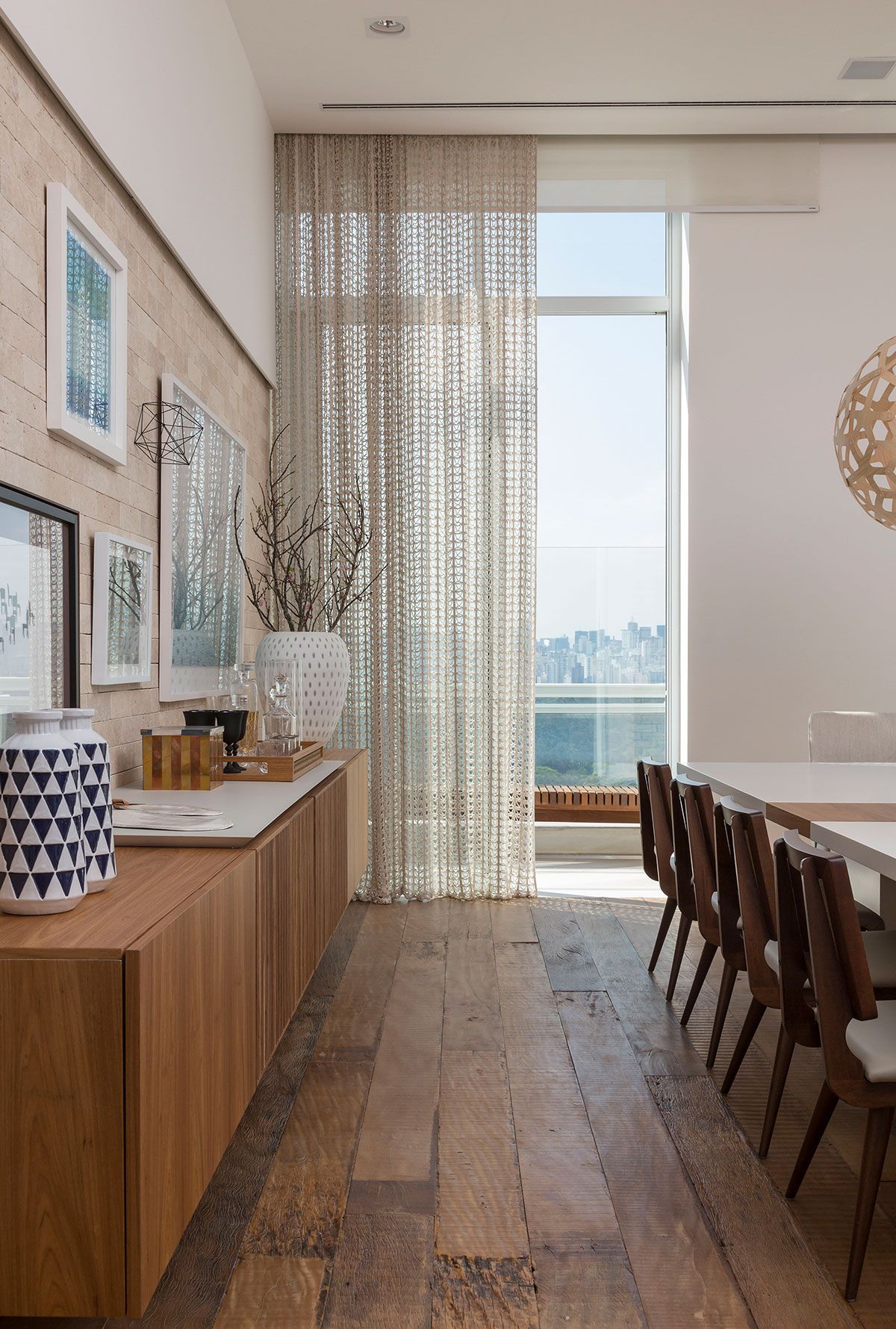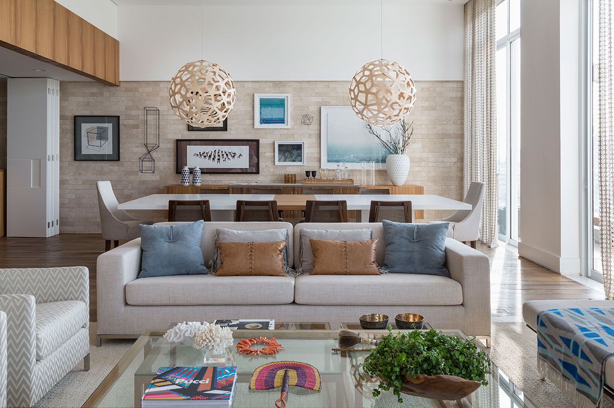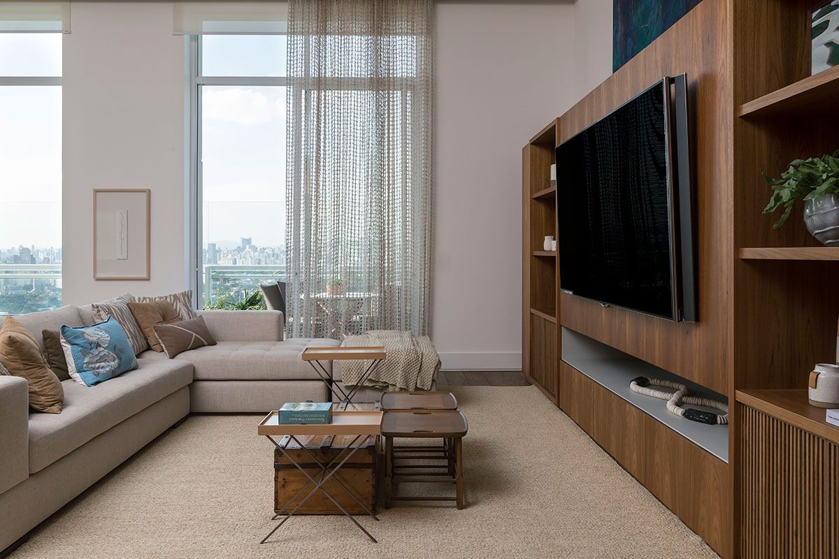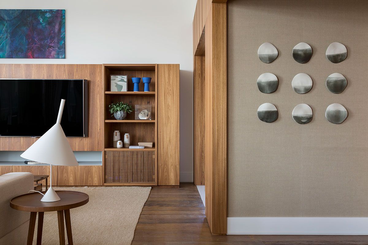 A profissional define o estilo do apê como Easy chic, com um pouco do lifestyle carioca para o território paulista através de cores claras, materiais naturais, uso de madeira como elemento acolhedor e praticidade nos volumes.