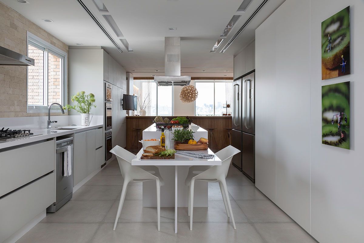 Roberta Devisate assina o projeto desse apartamento de 600m², em São Paulo. O jovem casal de moradores vive no exterior e queria algumas mudanças no imóvel, o principal pedido foi integrar a cozinha com a sala de jantar.