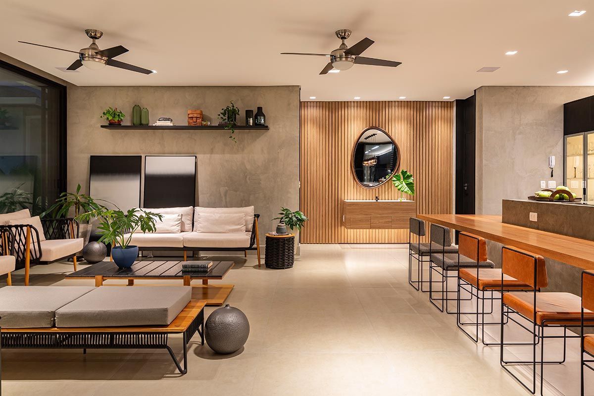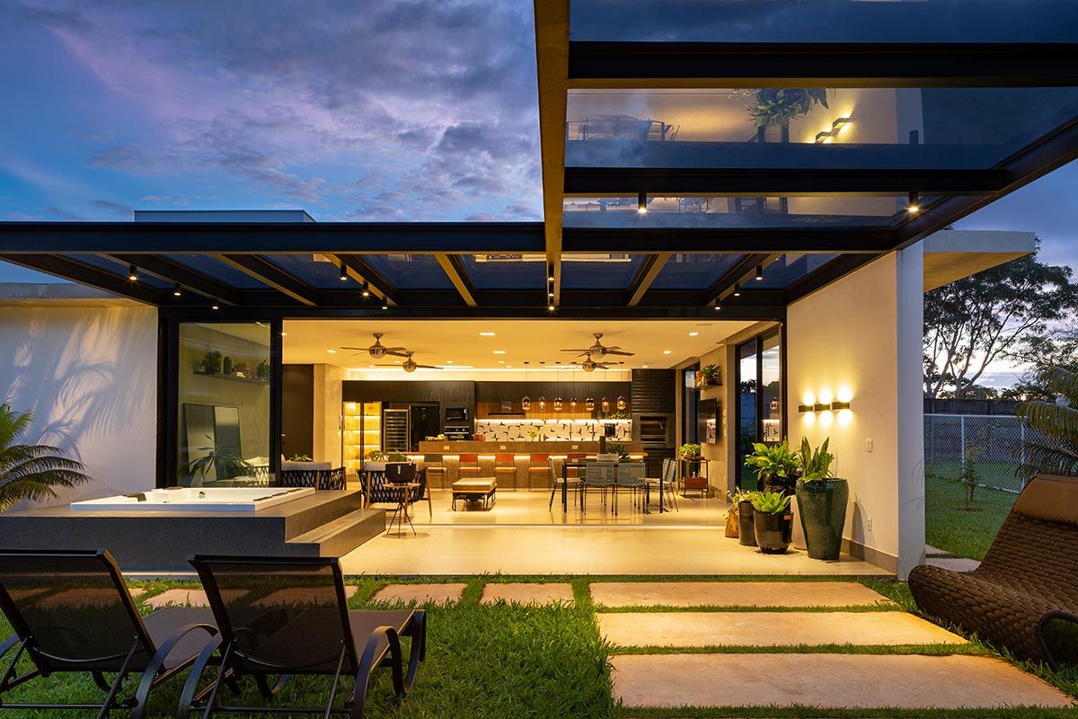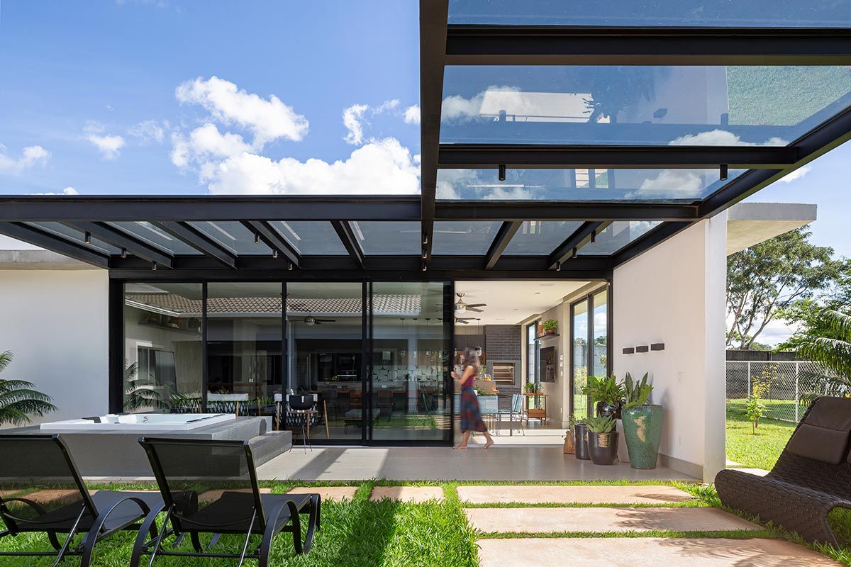 Uma família que adora receber composta pelo casal, três filhos e dois cachorros, sentiu a necessidade de ter um espaço maior de lazer que fosse separado da casa em que vivem, para terem mais privacidade e conforto nos eventos sociais. Para criar esse projeto de extensão em um bairro tranquilo e arborizado em Brasília, os moradores contaram com o escritório Lez Arquitetura: