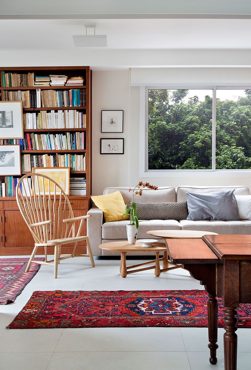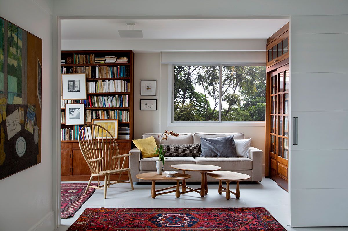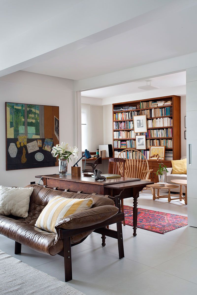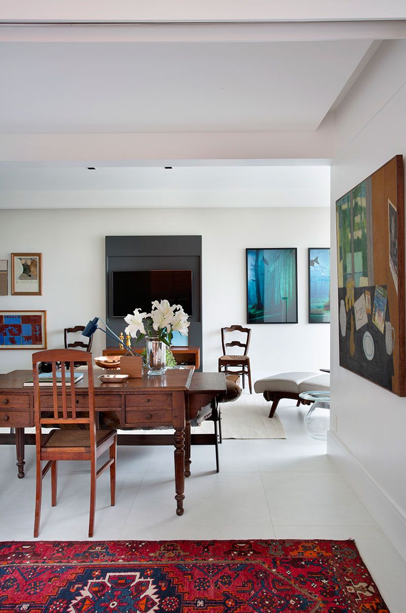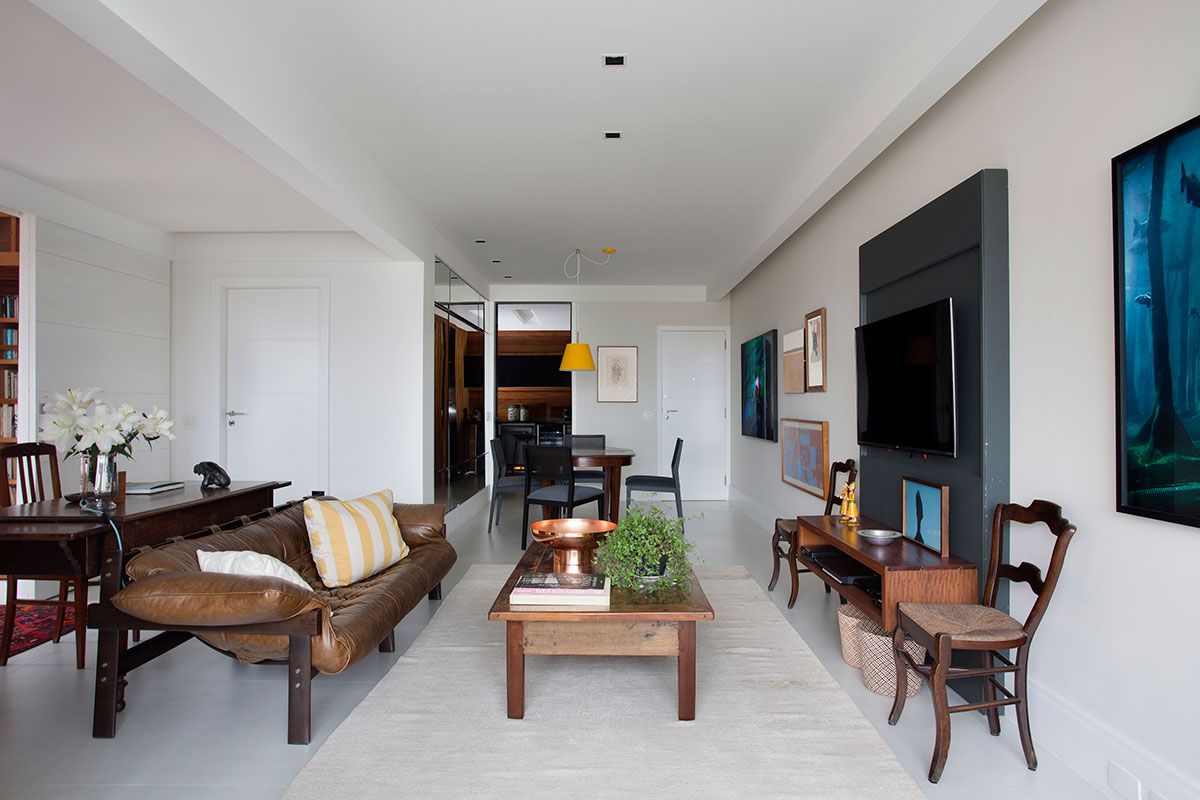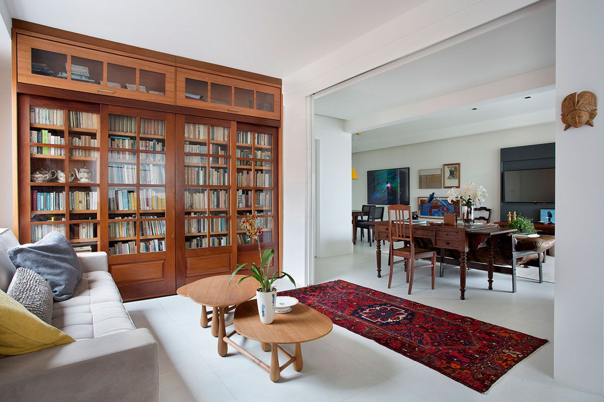 Originalmente com três quartos pequenos e uma sala estreita, apartamento de 120m2, na Gávea, se transformou pelas mãos do arquiteto Francisco Viana. O morador é um psicanalista de 70 anos, já com filhos adultos, que viveu em Paris muitos anos e trouxe na mudança de volta ao Brasil peças de valor afetivo da residência anterior.