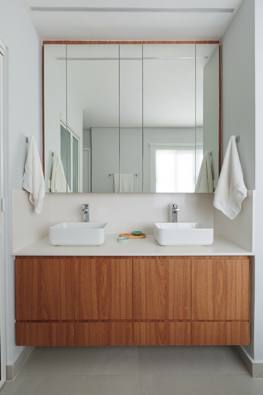 A reforma trouxe mudanças que fazem a diferença no dia a dia da família. As janelas foram atualizadas para permitir melhor ventilação e iluminação. As cubas e bancadas foram escolhidas para garantir resistência e fácil manutenção, enquanto os móveis foram pensados para aproveitar cada espaço sem comprometer a circulação.