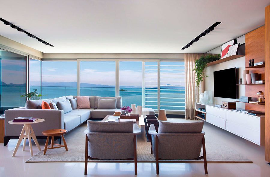 A arquiteta Juliana Pippi assina o projeto desse apartamento de 180m² para um casal de empresários e suas duas filhas. Ela apostou em uma disposição espaçosa e repleta de cores para conseguir um resultado que estabelece um diálogo interessante com a vista privilegiada para o mar.