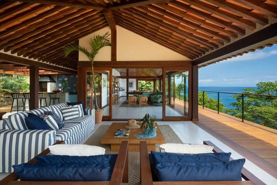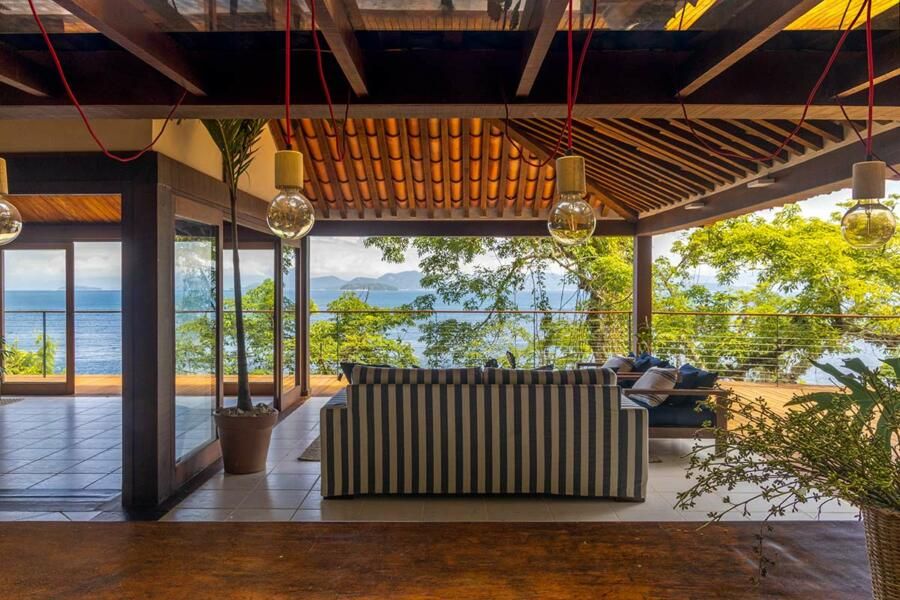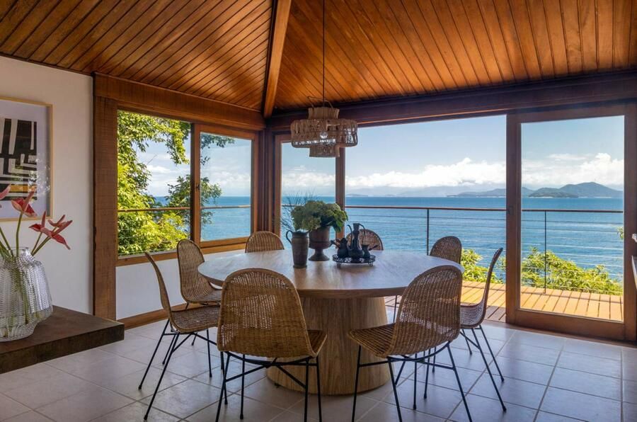 “O maior desafio foi a localização, como a casa fica numa ilha, todo acesso foi super complicado, desde o material e execução da obra, até o mobiliário. A mesa de jantar caiu dentro do mar quando fomos descarregar, foi uma loucura, mas conseguimos recuperar.”