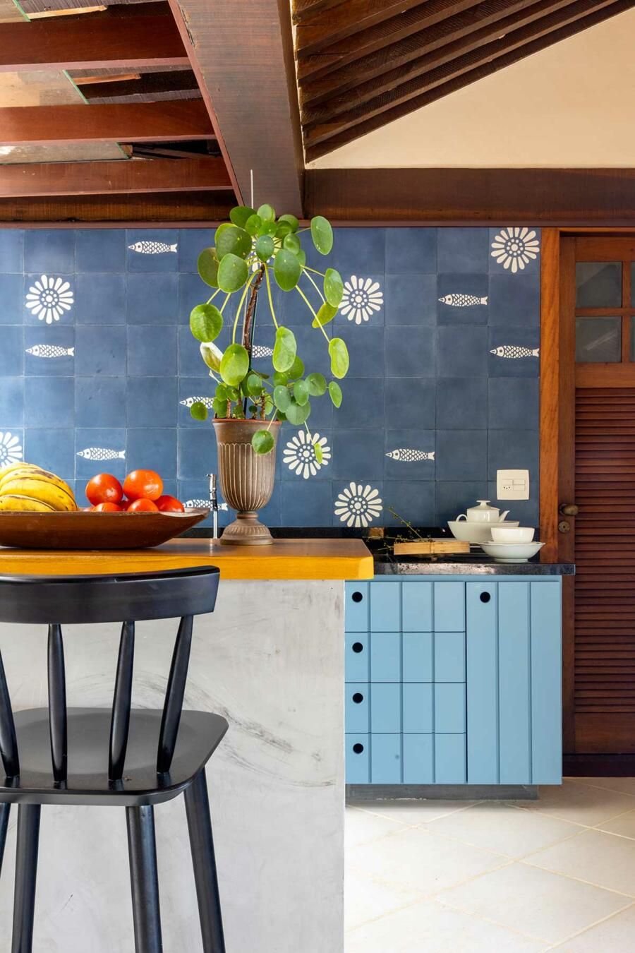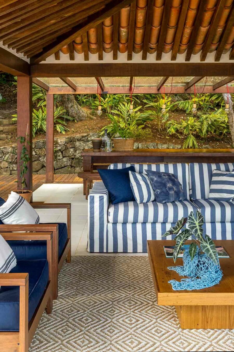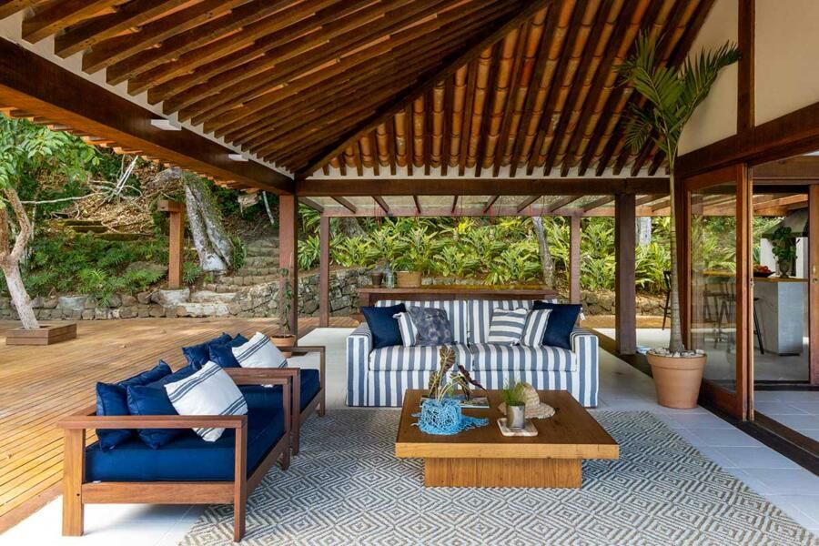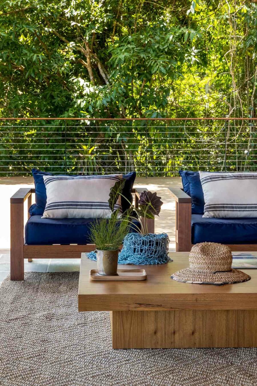 Ainda como uma extensão das águas cristalinas de Angra dos Reis, a cor azul é encontrada em diversas tonalidades na décor desta casa de veraneio.