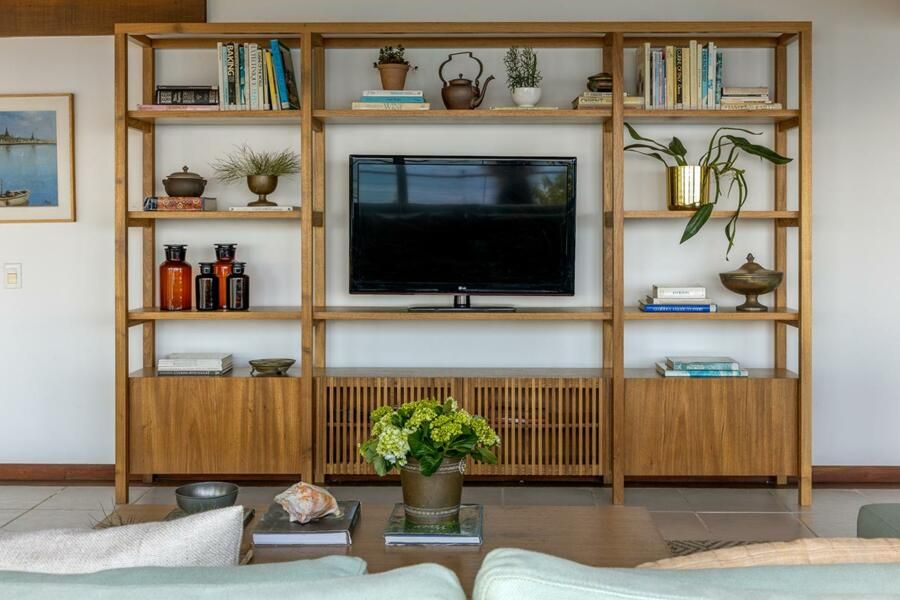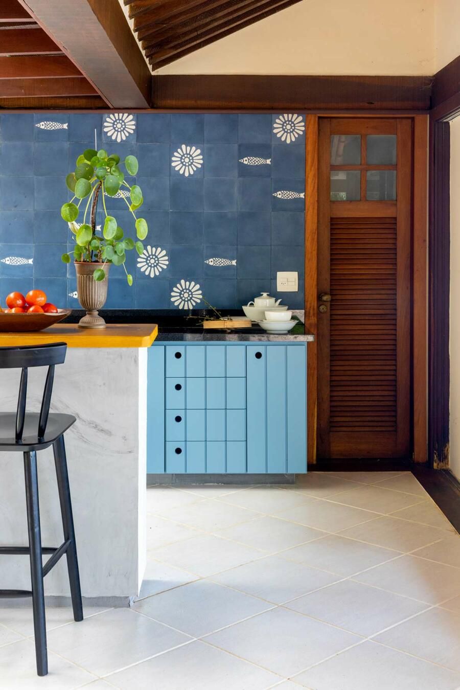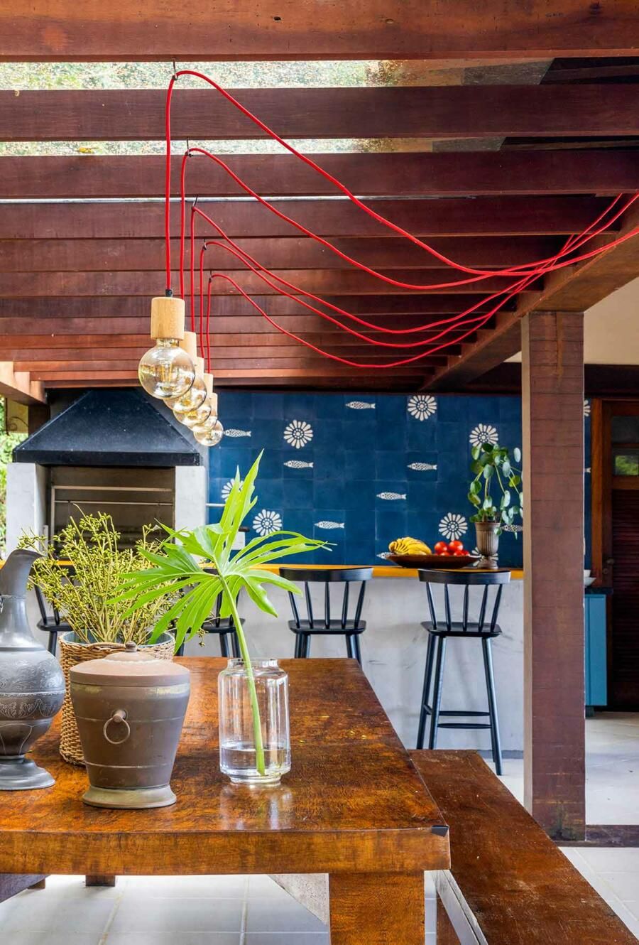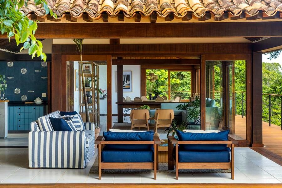 Ainda como uma extensão das águas cristalinas de Angra dos Reis, a cor azul é encontrada em diversas tonalidades na décor desta casa de veraneio.