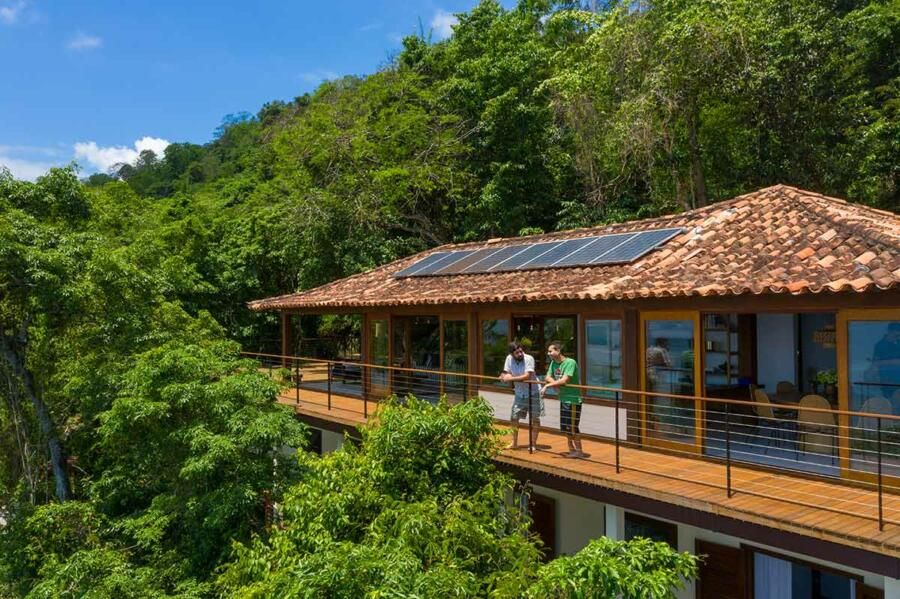 Ah, sem contar no sistema de captação de energia solar que a casa utiliza como uma maneira sustentável.
