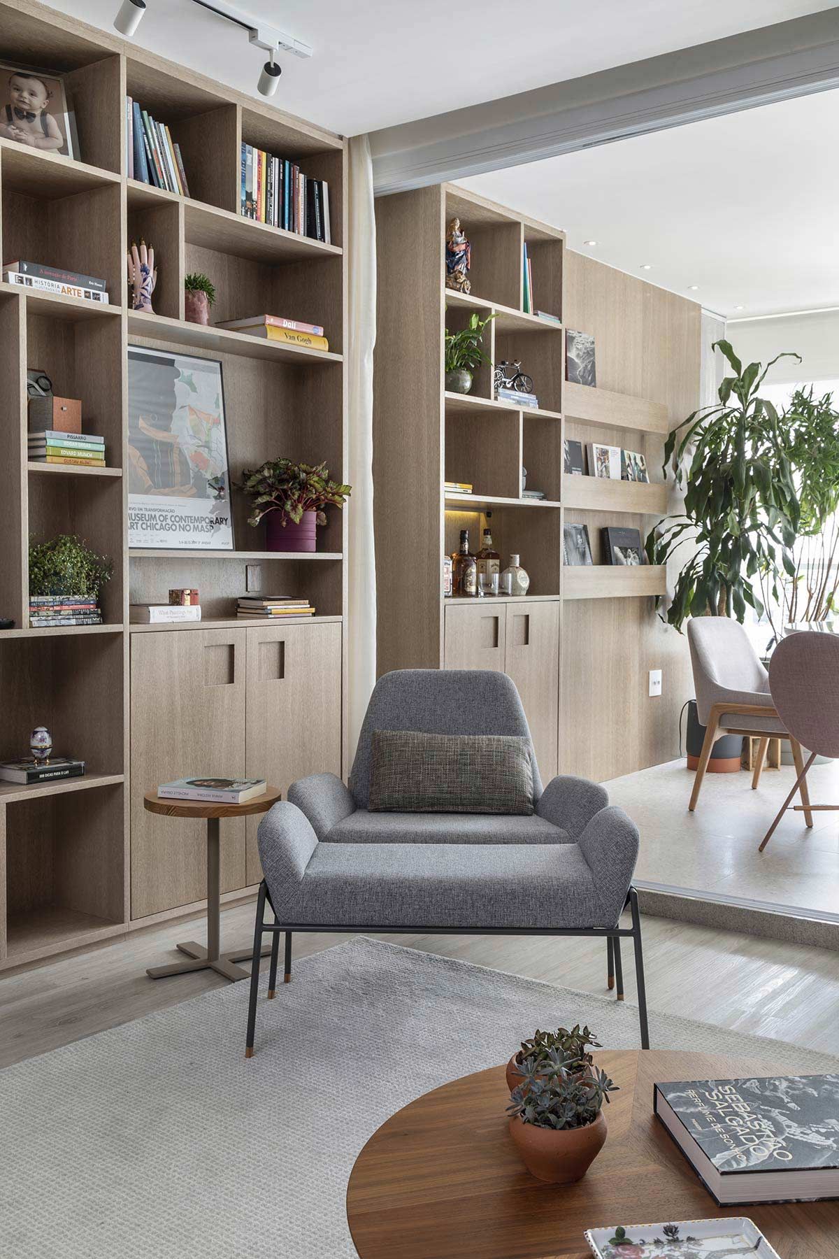 Uma jovem advogada que atua em grande empresa de mineração, mora sozinha no bairro Campo Belo e é amante de boa leitura, viagens obras de arte. O lar perfeito para ela era sinônimo de uma biblioteca farta em algum dos ambientes e quem ficou responsável por desenhar, não só uma estante enorme para acomodar os livros, mas também todos os outros detalhes, foi o MSAC Arquitetura e Interiores: