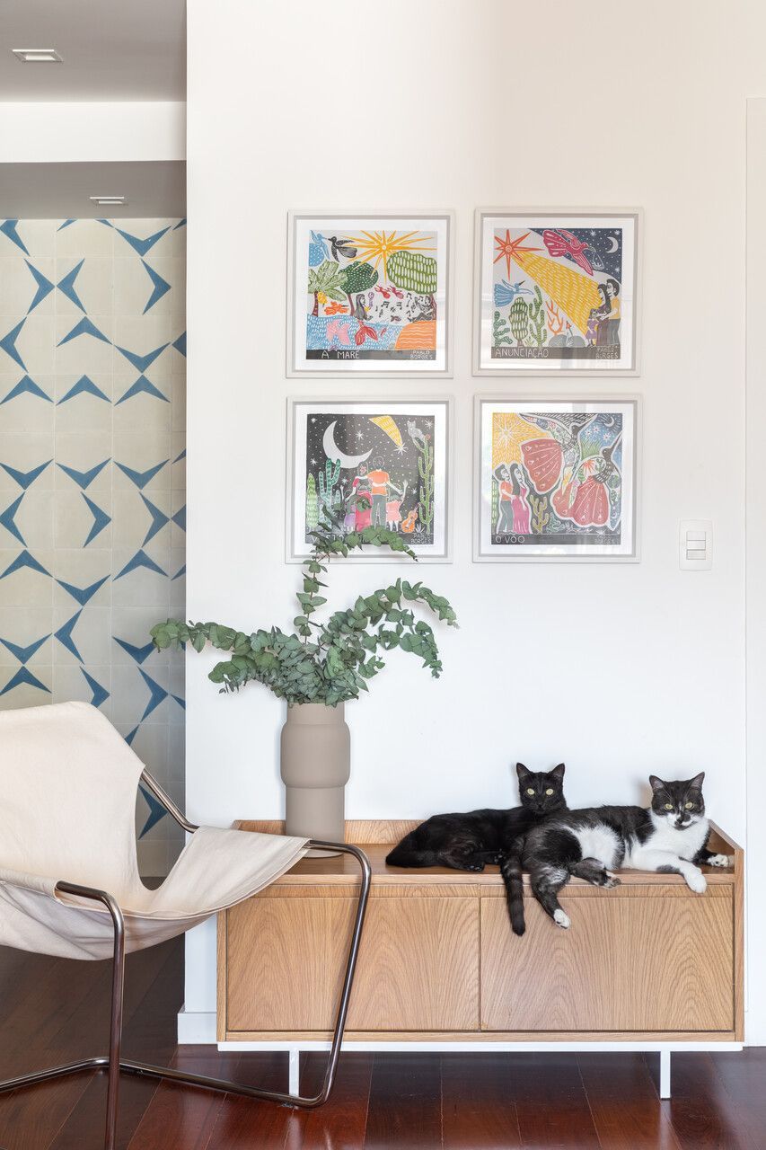 Em seguida, as arquitetas Juliana Gonçalves e Fernanda Matoso, do escritório Co+Lab Juntos Arquitetura e Interiores, foram chamadas para elaborar um projeto, incluindo a decoração de todos os cômodos. Durante a obra, que durou cinco meses, os clientes moraram de aluguel em outro apartamento, no Flamengo.