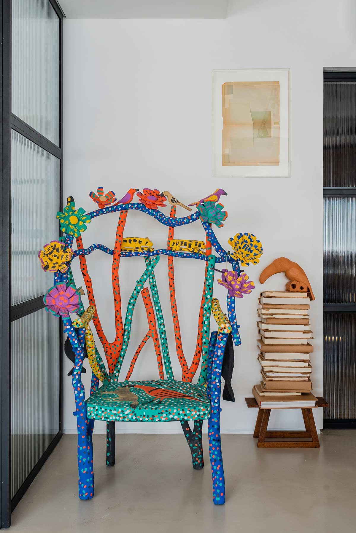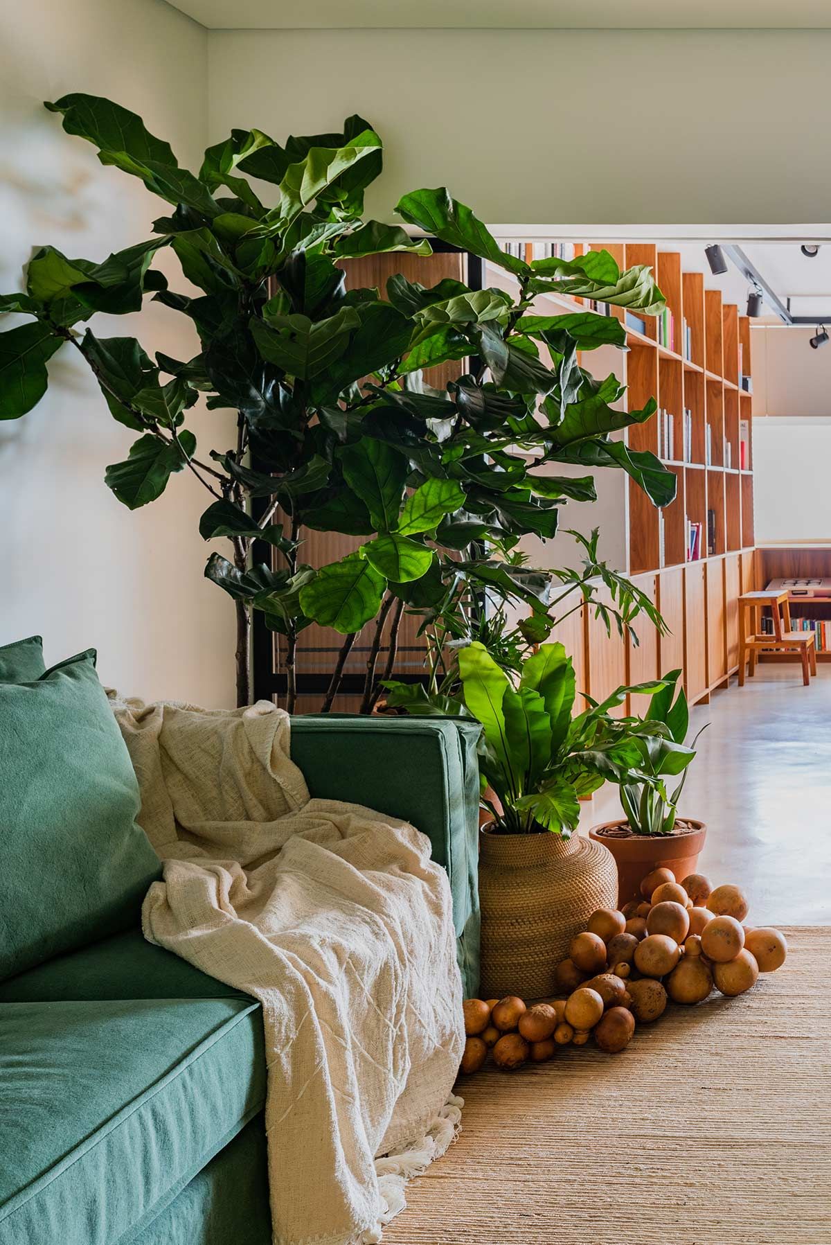 Bebendo da fonte do conceito da biofilia, características do mundo natural permeiam o espaço construído, através de obras de arte do artesanato brasileiro como as esculturas de Umburana, a poltrona colorida do Jasson, cerâmica da Denise Braune e a luminária do Humano – capazes de impulsionar a criatividade da equipe. Vasos de barro, rattan, vegetação, sementes, tapete de sisal e um confortável sofá, compõem o espaço de descompressão.