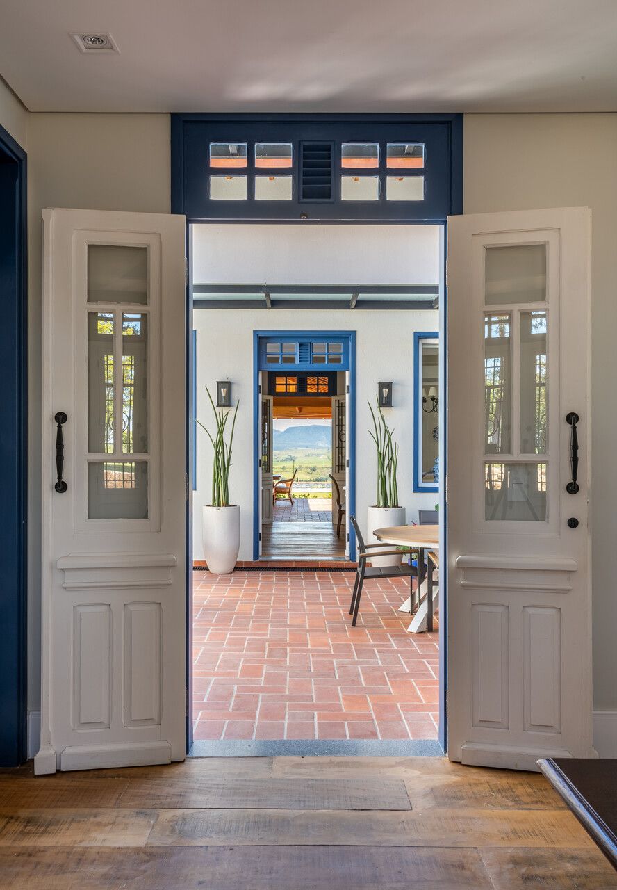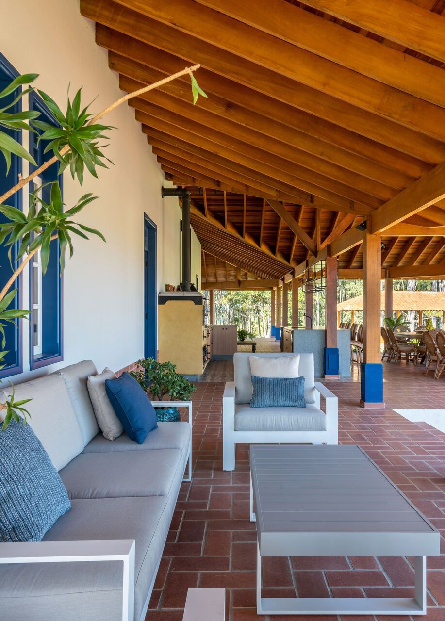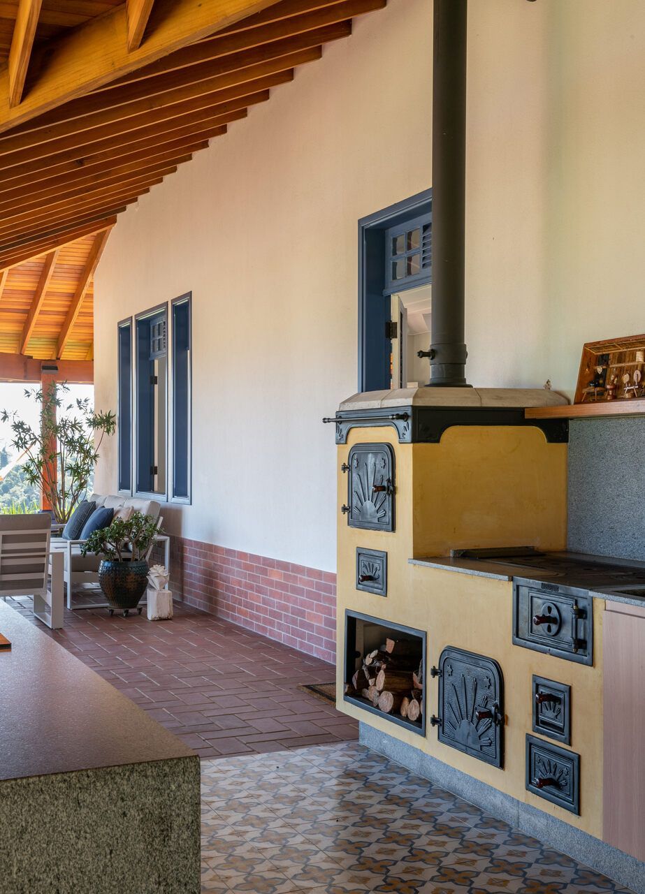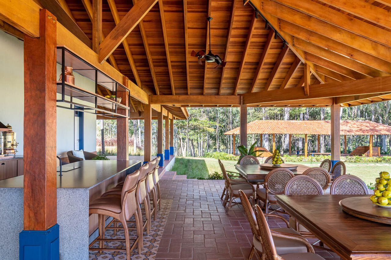 Após uma ampliação passou de 440m² para os atuais 800m² e uma reforma completa, a fazenda ganhou uma nova vida. Detalhes como o assoalho de madeira de demolição nas salas e suítes, tijolo cotto nas varandas e ladrilho hidráulico nas cozinha interna e gourmet externo, adicionaram charme à residência.
