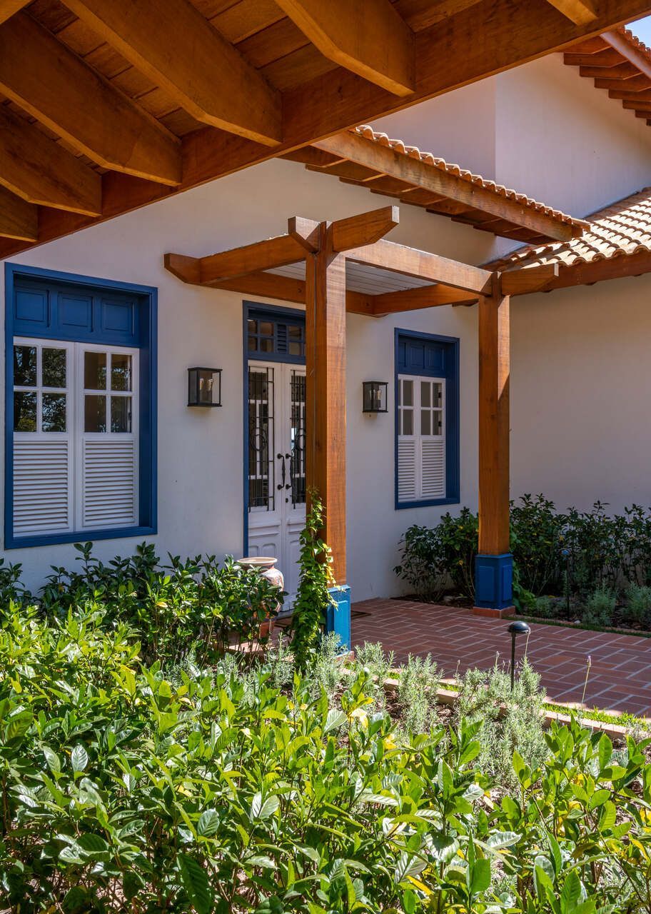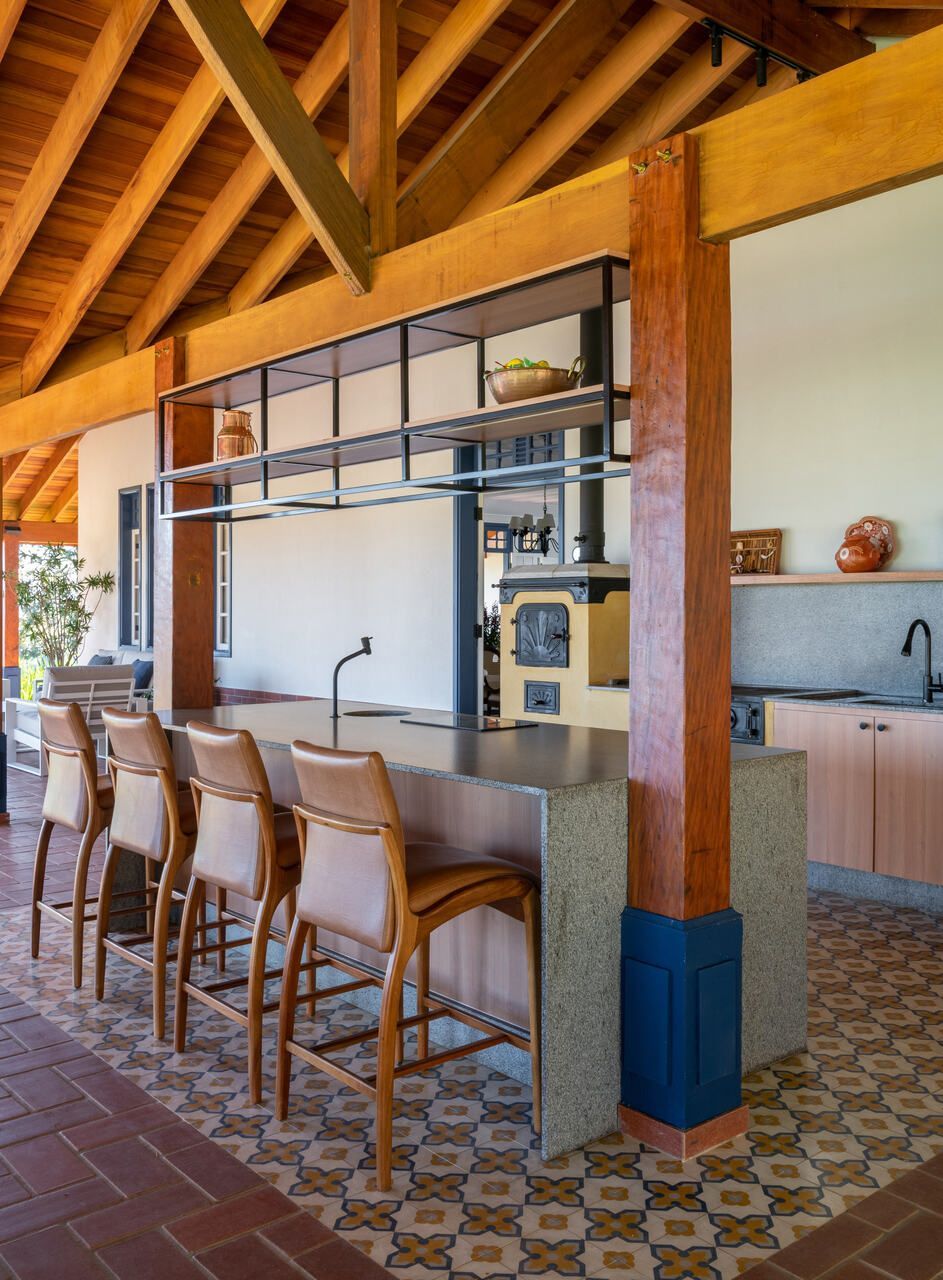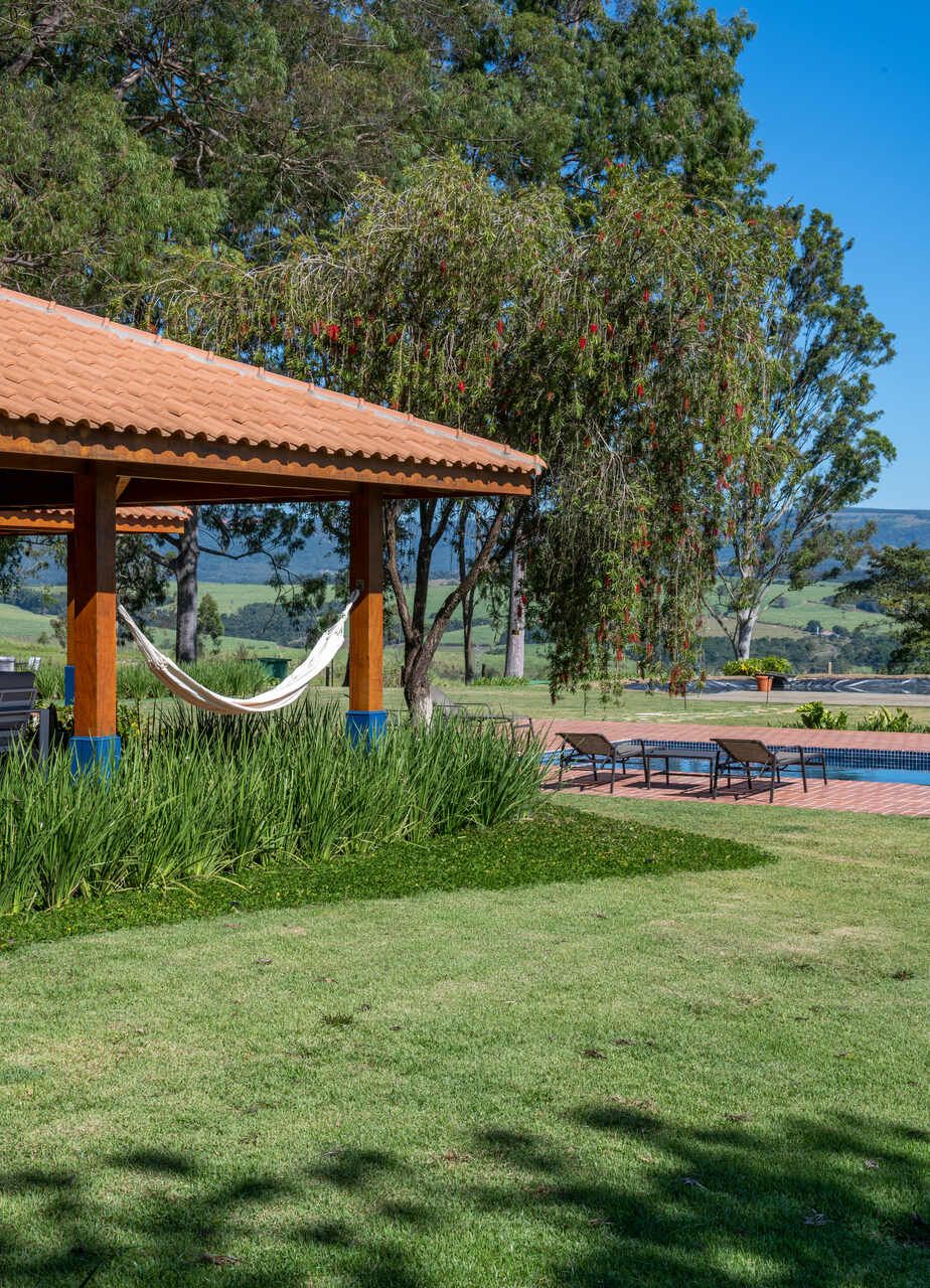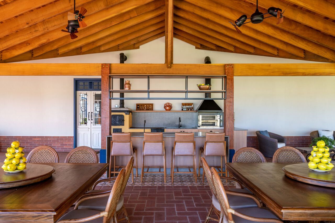 Após uma ampliação passou de 440m² para os atuais 800m² e uma reforma completa, a fazenda ganhou uma nova vida. Detalhes como o assoalho de madeira de demolição nas salas e suítes, tijolo cotto nas varandas e ladrilho hidráulico nas cozinha interna e gourmet externo, adicionaram charme à residência.