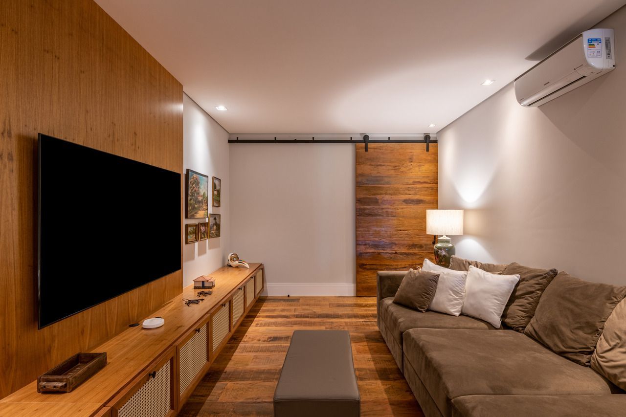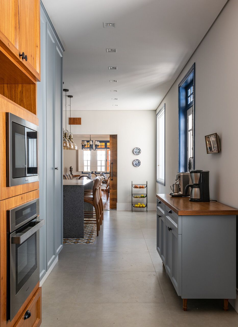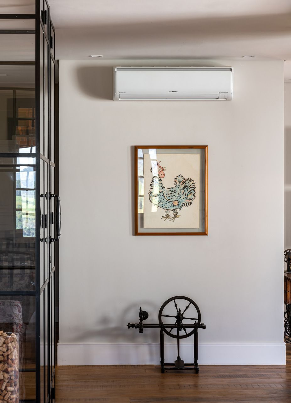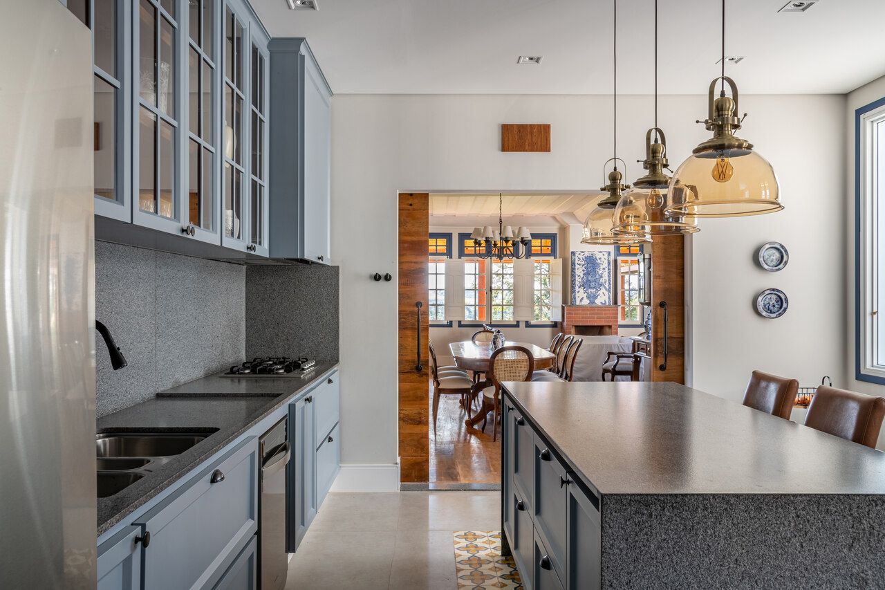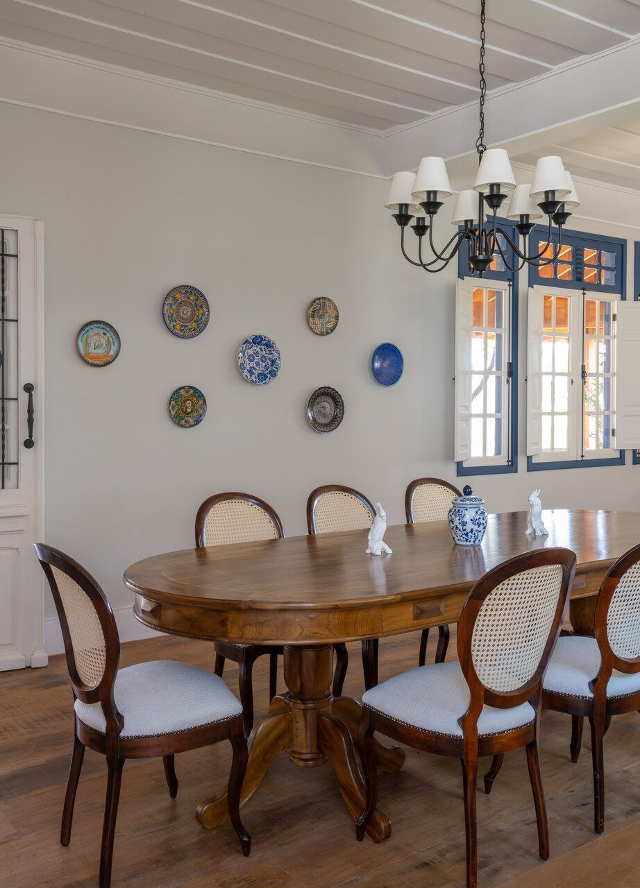 O destaque vai para os apliques de gesso no forro da sala e as portas de correr de madeira de demolição. Com um pátio interno que possibilita o uso em dias mais frios e uma vista para o Paredão, a propriedade se tornou um refúgio acolhedor, após 16 meses de reforma e ampliação.