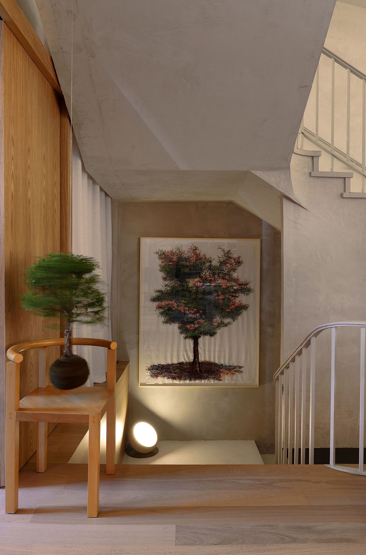 A escolha das obras de arte veio da paixão da arquiteta, que inicialmente estudou artes plásticas. A primeira escolha foi a obra do artista cinético alemão Knopp Ferro, na escultura suspensa no vão da escada, cujo princípio estético está relacionado com a propagação de uma onda de força em uma simples haste de metal vibrante através da qual a força cinética é transmitida de um elemento suspenso para o outro.