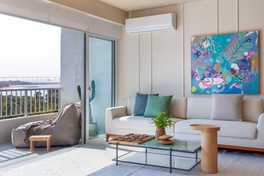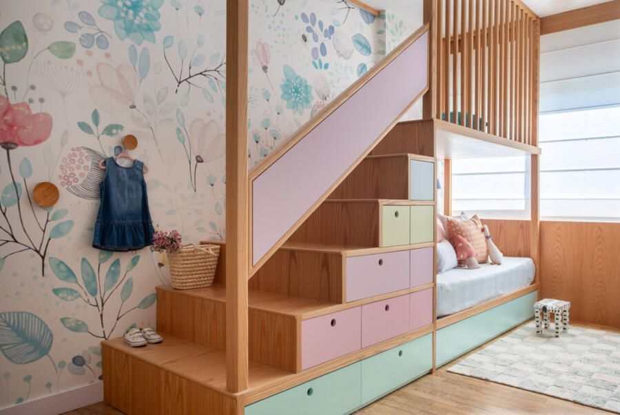 O verde nos aproxima da natureza, enquanto o azul traz serenidade. As demais cores entraram depois para equilibrar e deixar os ambientes mais alegres e luminosos.