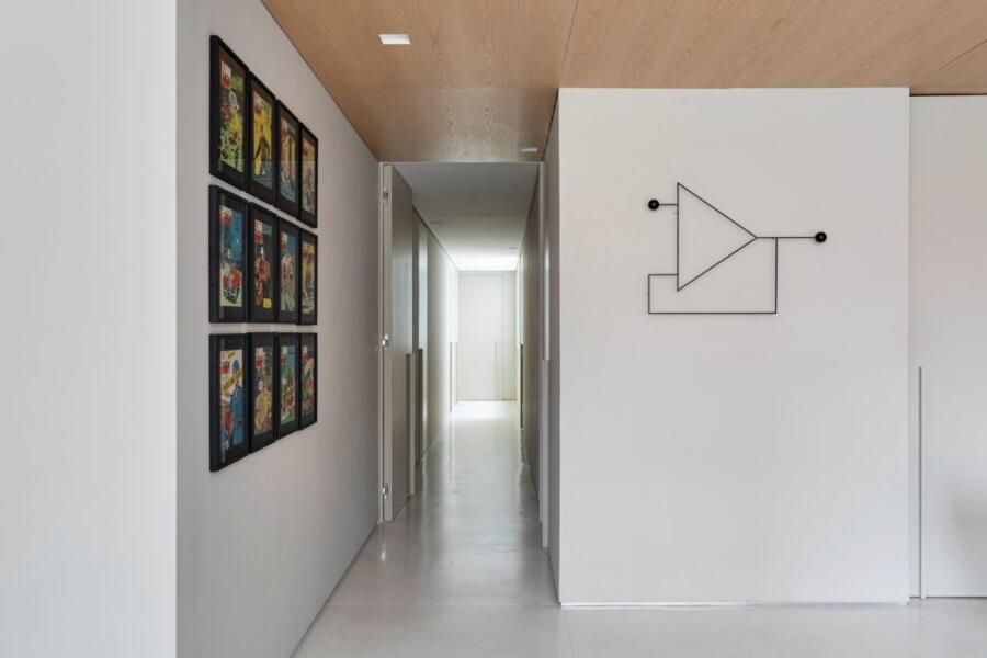 Como a ideia do casal é se mudar definitivamente para o Rio de Janeiro no futuro, foi colocada uma porta na circulação que permite o fechamento e cria privacidade para suíte master, banho master, dormitório 2 e banho 2. Essa solução funcional permite com que, havendo necessidade, a suíte master fique com dois banhos e mais armários.