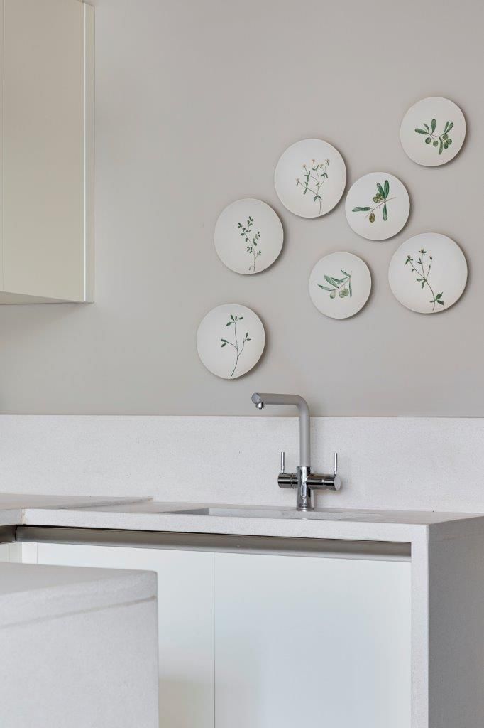 “Queriam um apartamento leve e funcional para receber família e amigos. Como fica na praia, pensamos em ser revestido quase que totalmente com um material único, granilite cor areia. Garantindo aspecto funcional do material e possibilidade de trabalhar com ele tanto em piso, paredes, nichos e bancadas.”