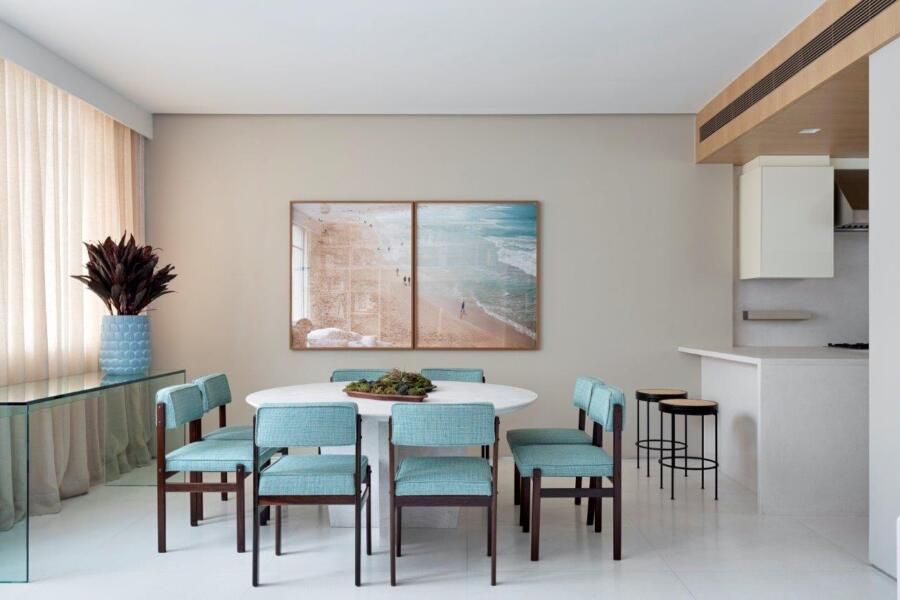 Um apartamento com décor leve, funcional e perfeito para os dias de praia do Leblon, no Rio de Janeiro, com os amigos e a família. Esse foi o pedido dos clientes ao arquiteto David Bastos, que assina a reforma geral dos 145m² do imóvel.