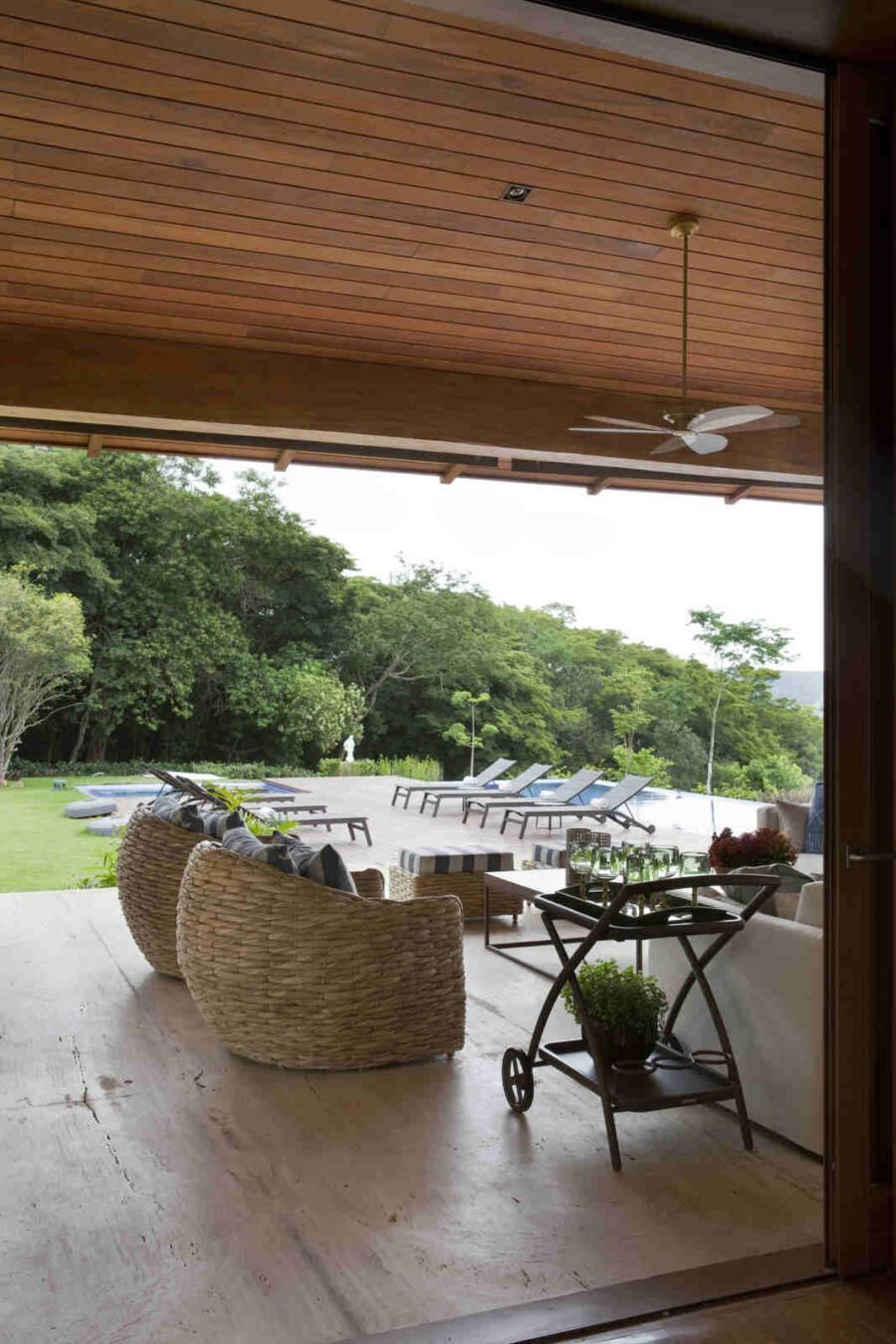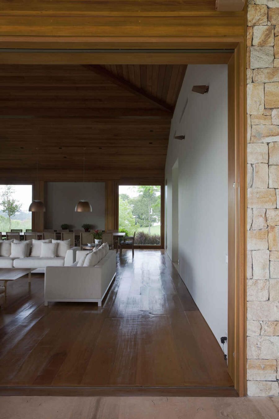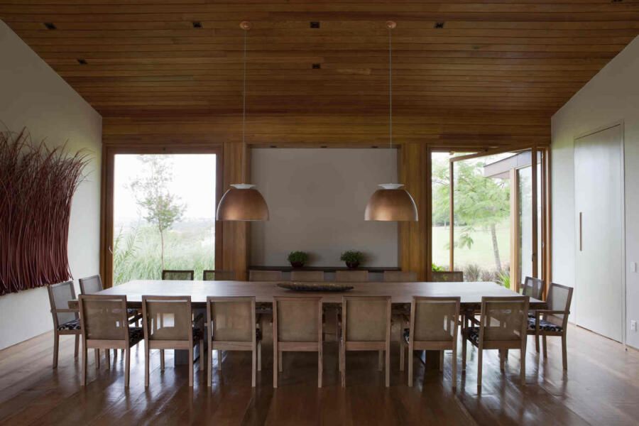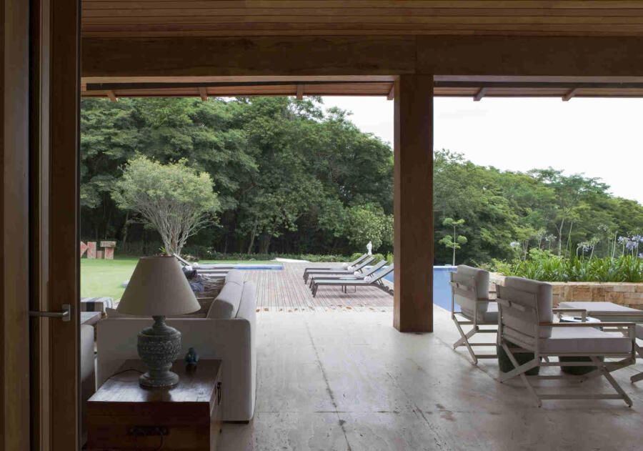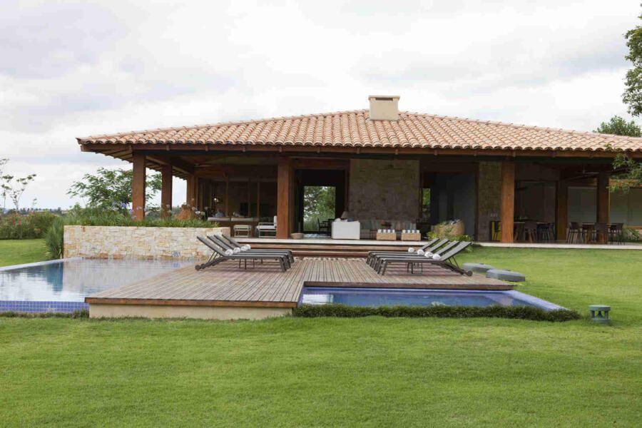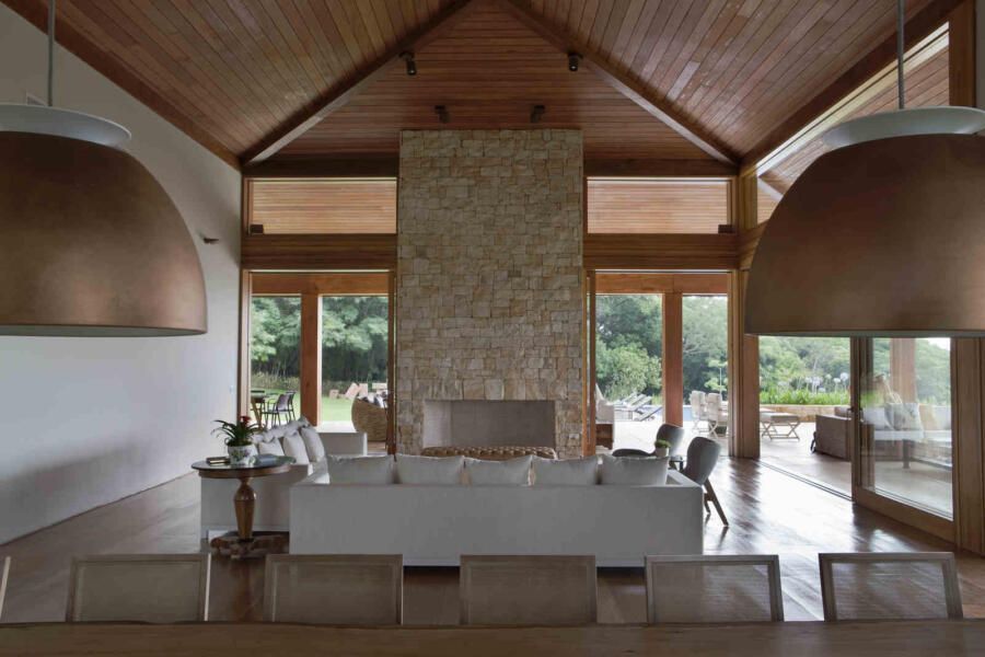 Uma casa de campo integrada à natureza e com mistura de materiais. Esse era o desejo de um casal com muitos filhos e netos para este projeto assinado pela arquiteta Gilda Meirelles na Quinta da Baroneza, interior de São Paulo.
