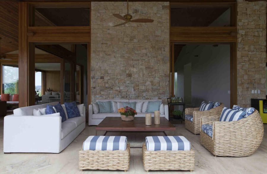 “O programa da casa compreende salas amplas e integradas, terraço e área de churrasqueira para a família passar a maior parte do tempo, sala de televisão, uma suíte com escritório, dois banheiros para o casal, quatro suítes para os filhos ou hóspedes e outros dois quartos grandes para acomodar as crianças.”