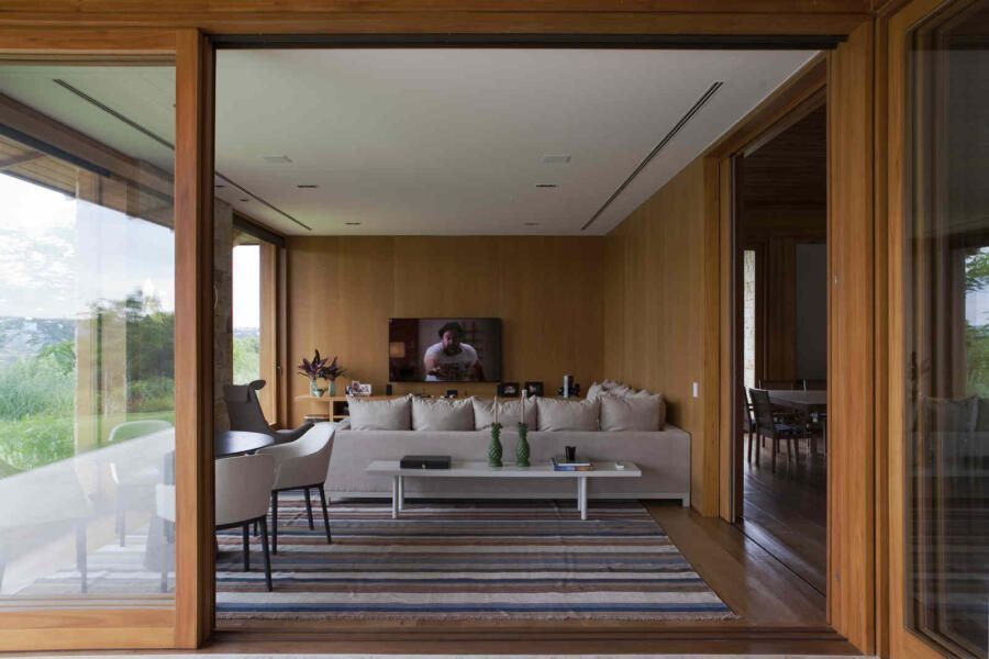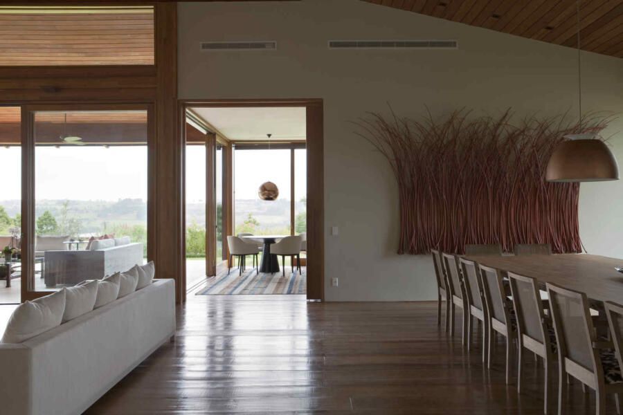 “O principal propósito da casa era poder reunir a família extensa com conforto para momentos de lazer. O partido adotado foi então criar ambientes aconchegantes, agradáveis e que possibilitassem uma circulação funcional mesmo com uma área construída tão grande.”