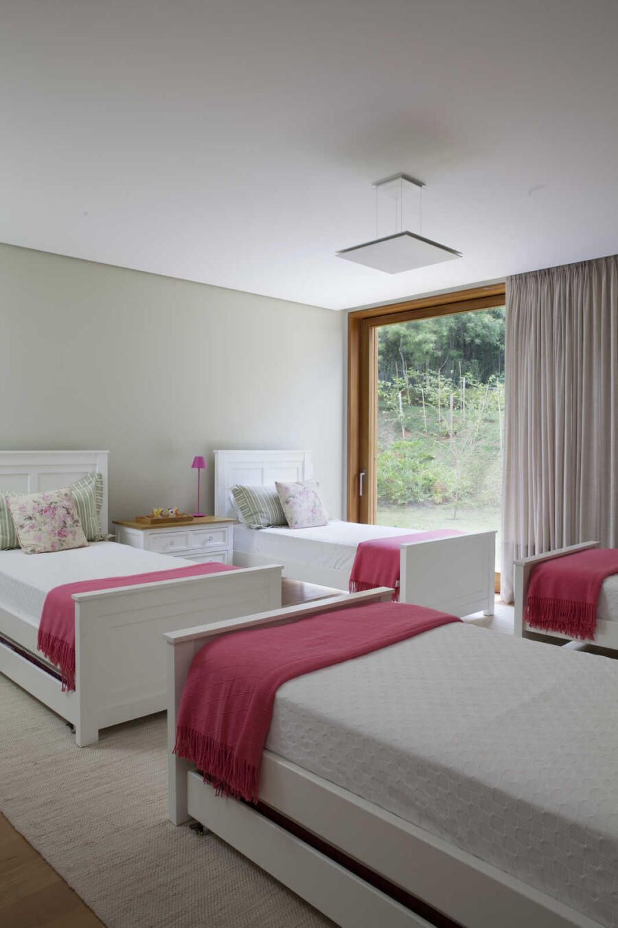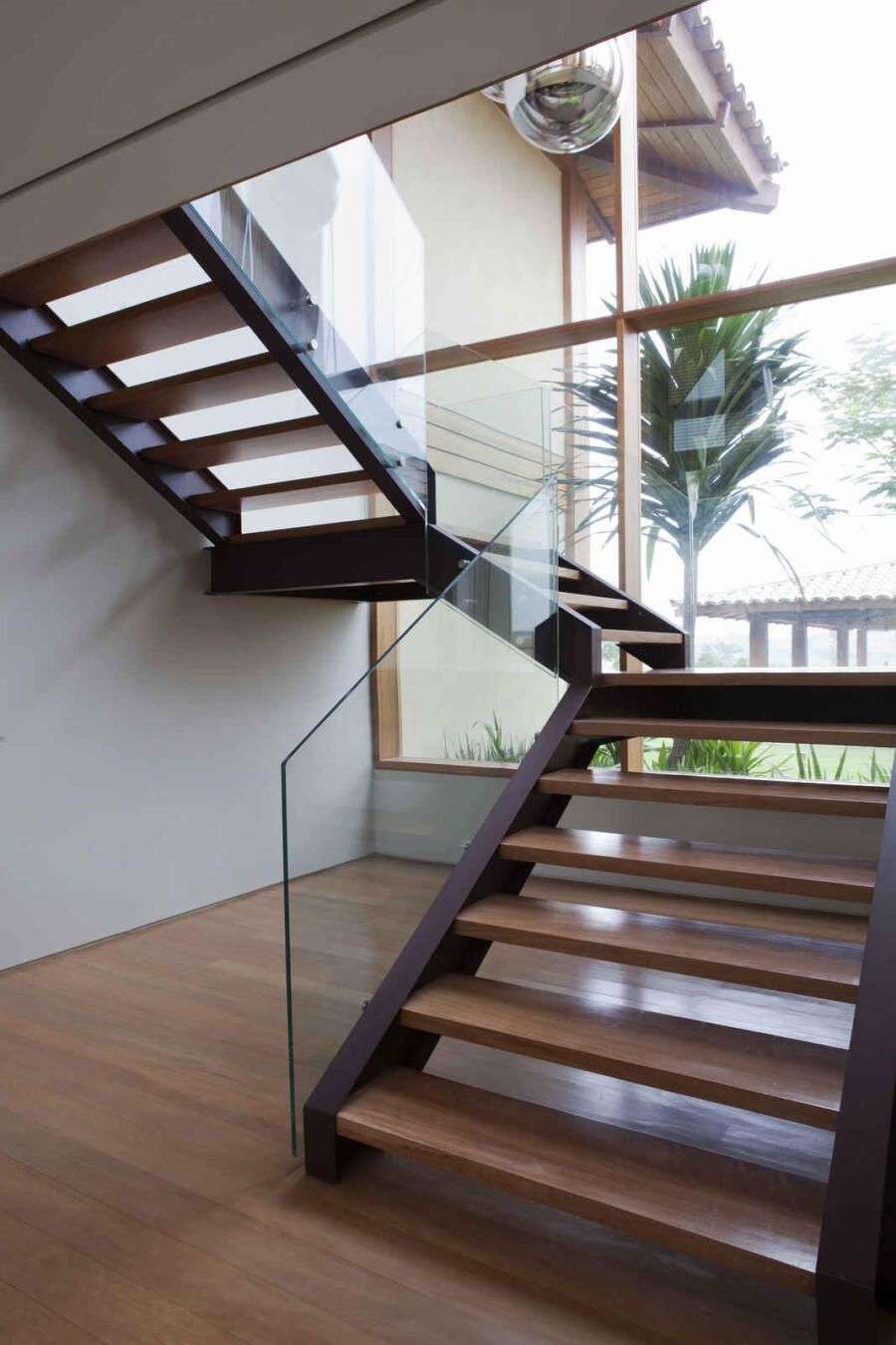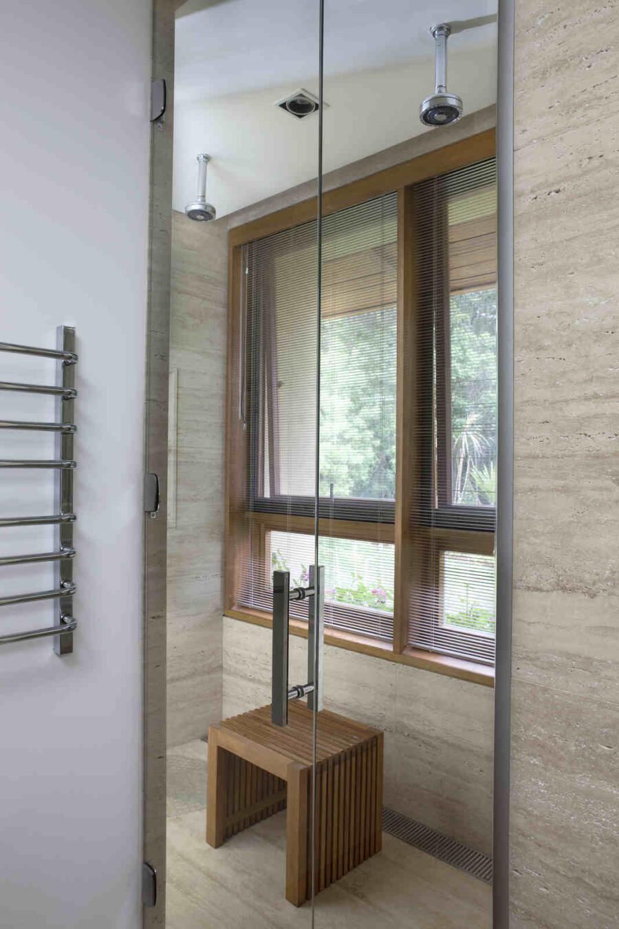 “A localização do imóvel valoriza as duas vistas do terreno, sendo uma delas voltada a uma reserva de mata. Para aproveitar o visual, criamos vários blocos interligados por uma galeria envidraçada que dá vista para o verde em todo o percurso.”