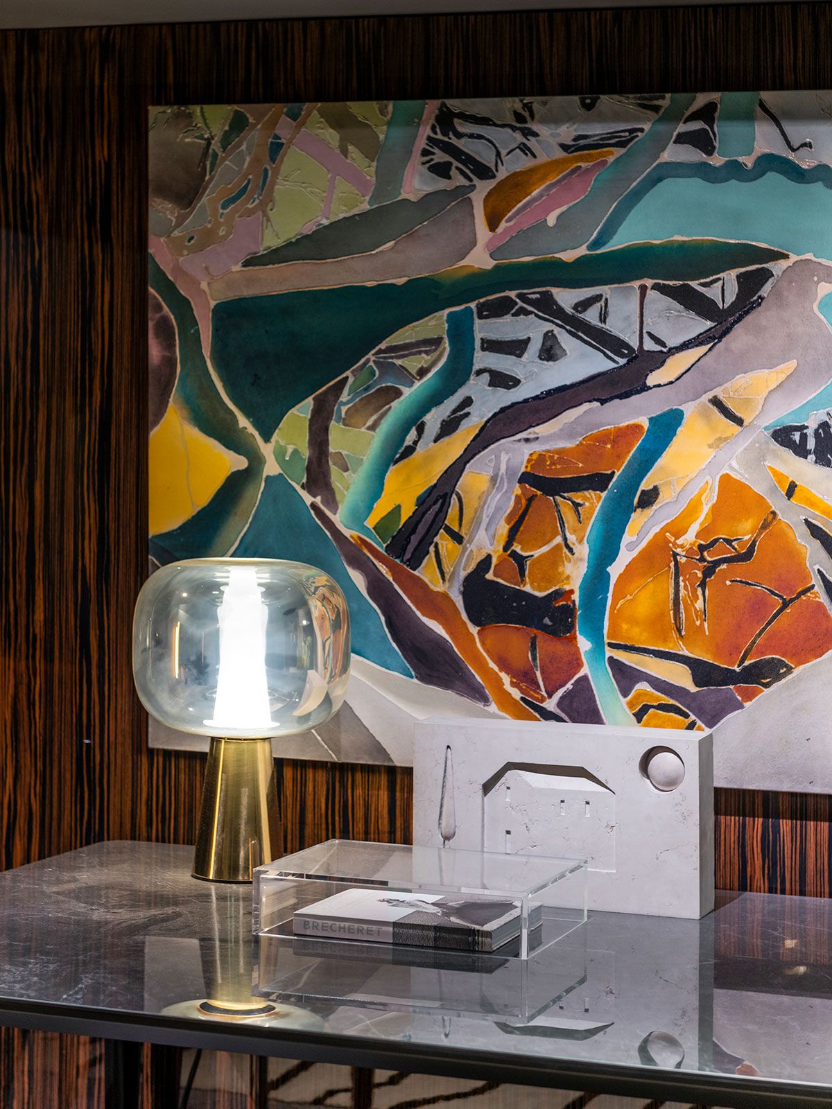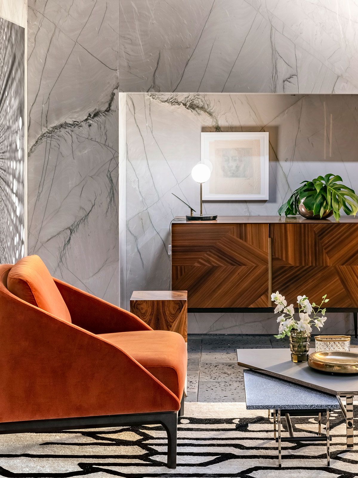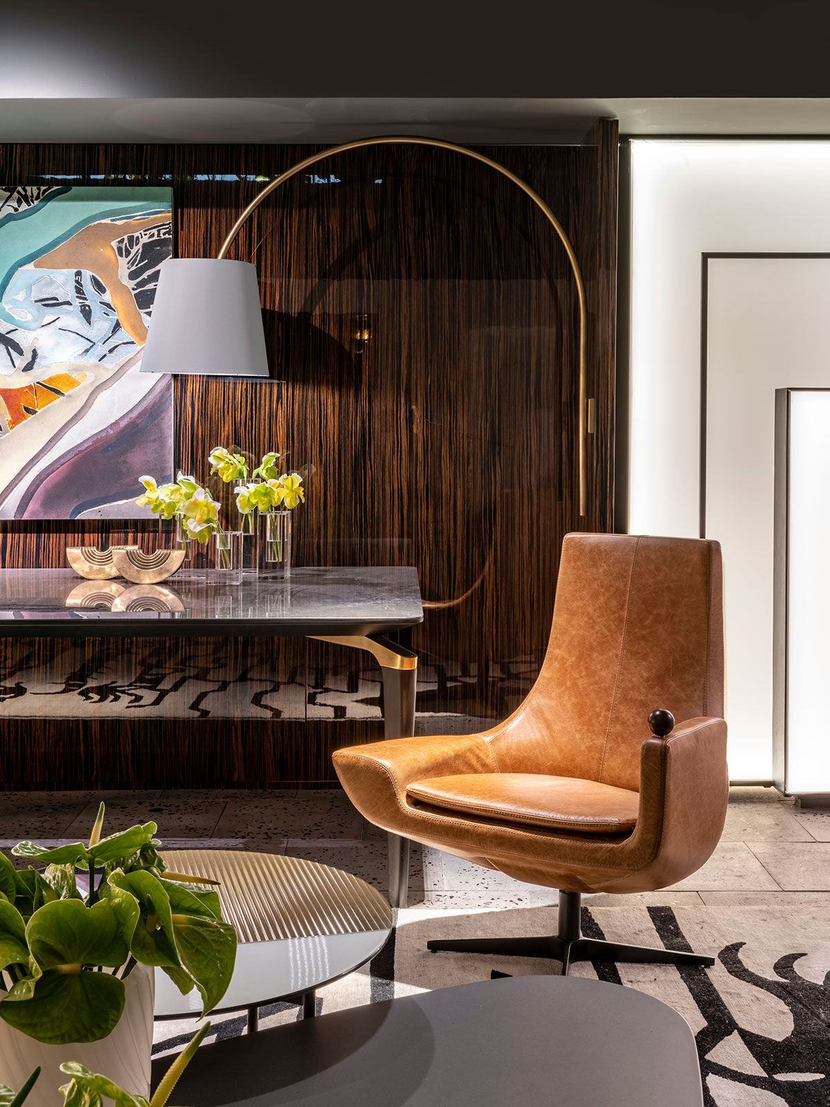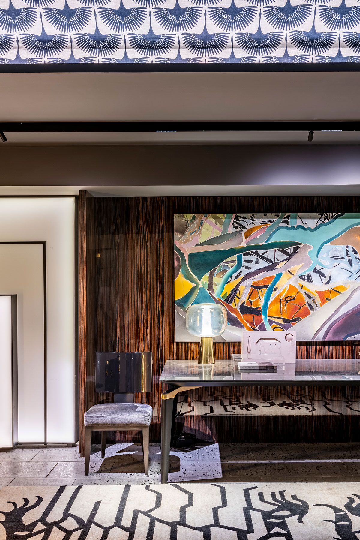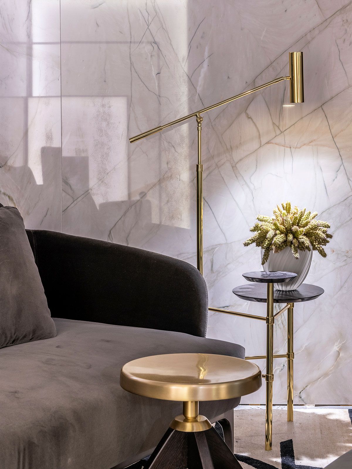 O ambiente assinado pelo Gustavo Martin para a CasaCor SP 2019 é o Les Hérons. O espaço de 49m² é inspirado na art deco que marcou lobbys icônicos dos hotéis do início do século 20 e foi criado para recepcionar os convidados de uma casa, é uma zona de relaxamento onde acontecem pequenos encontros ou curtas esperas.
