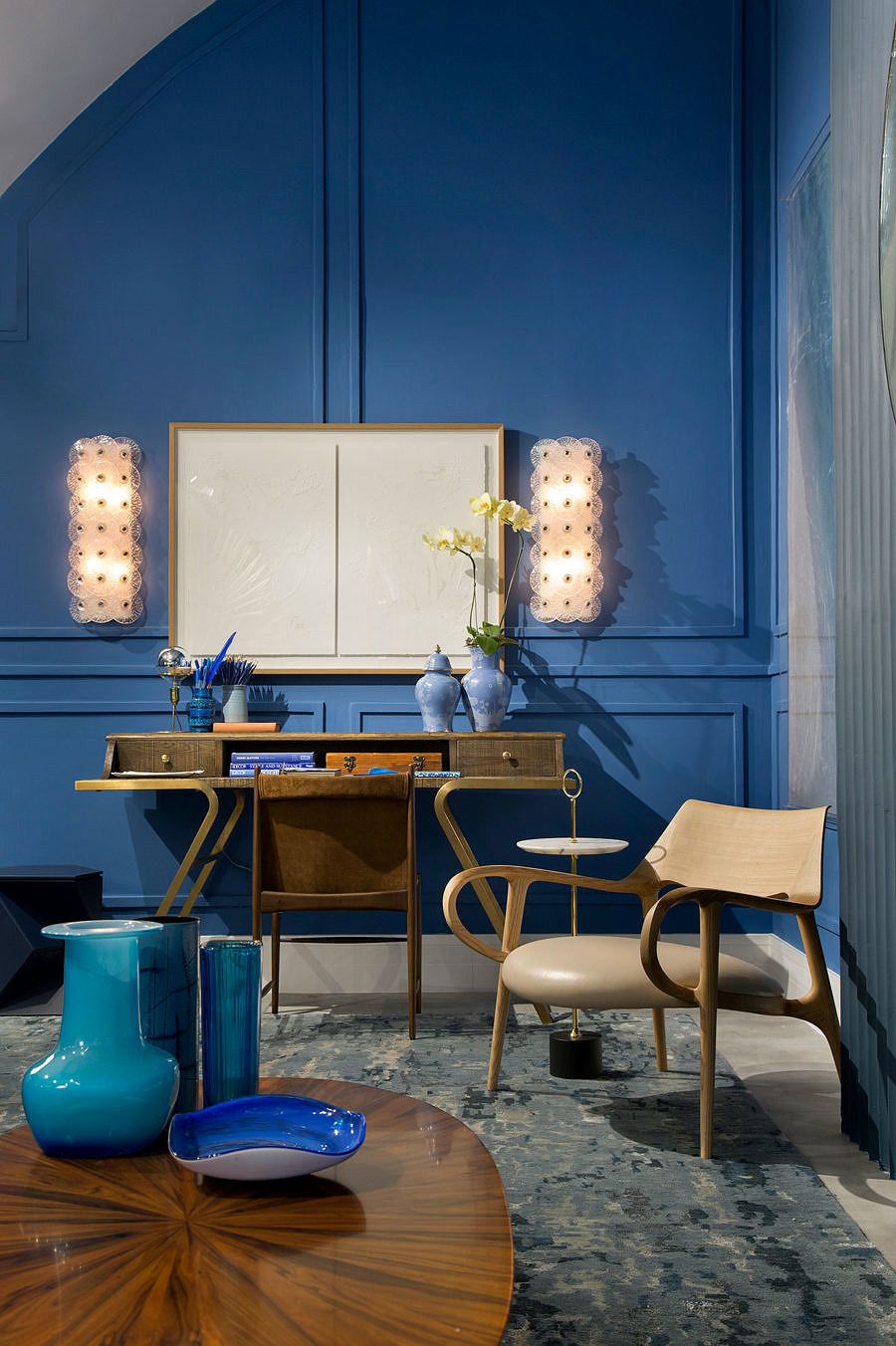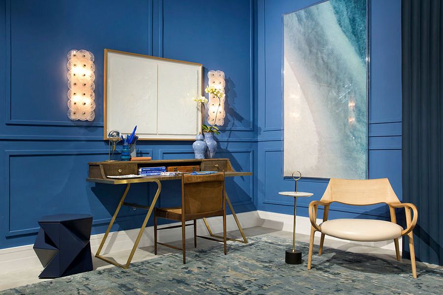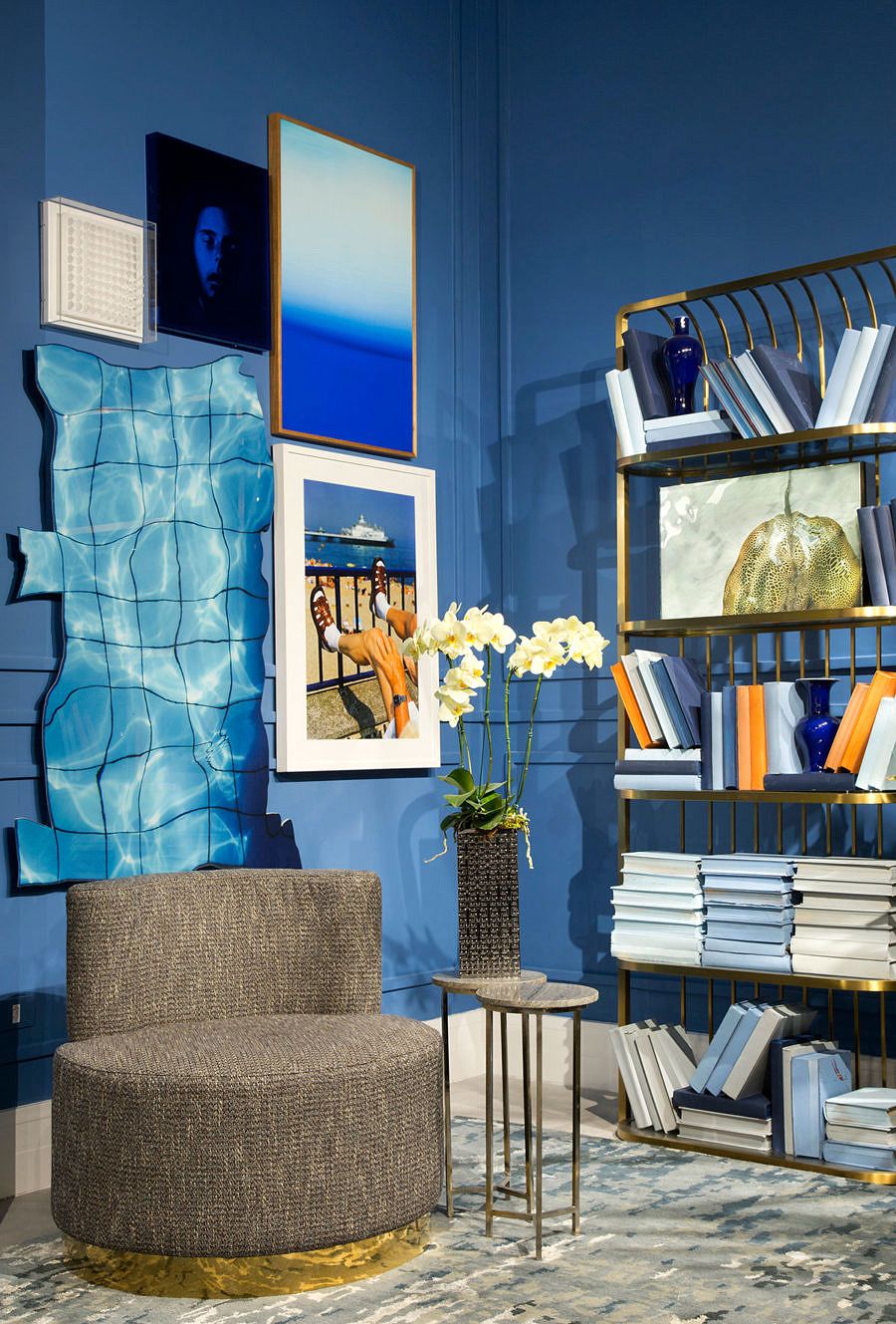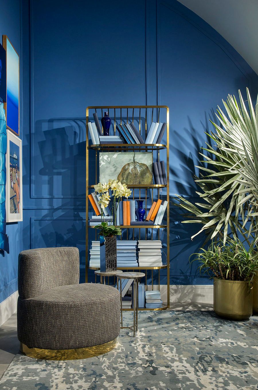 O ambiente assinado por Bruno Carvalho para a CASACOR São Paulo é o Hall da Biblioteca. O ambiente de 50 m² conta com diferentes tons de azul, inspirados no céu e no mar.