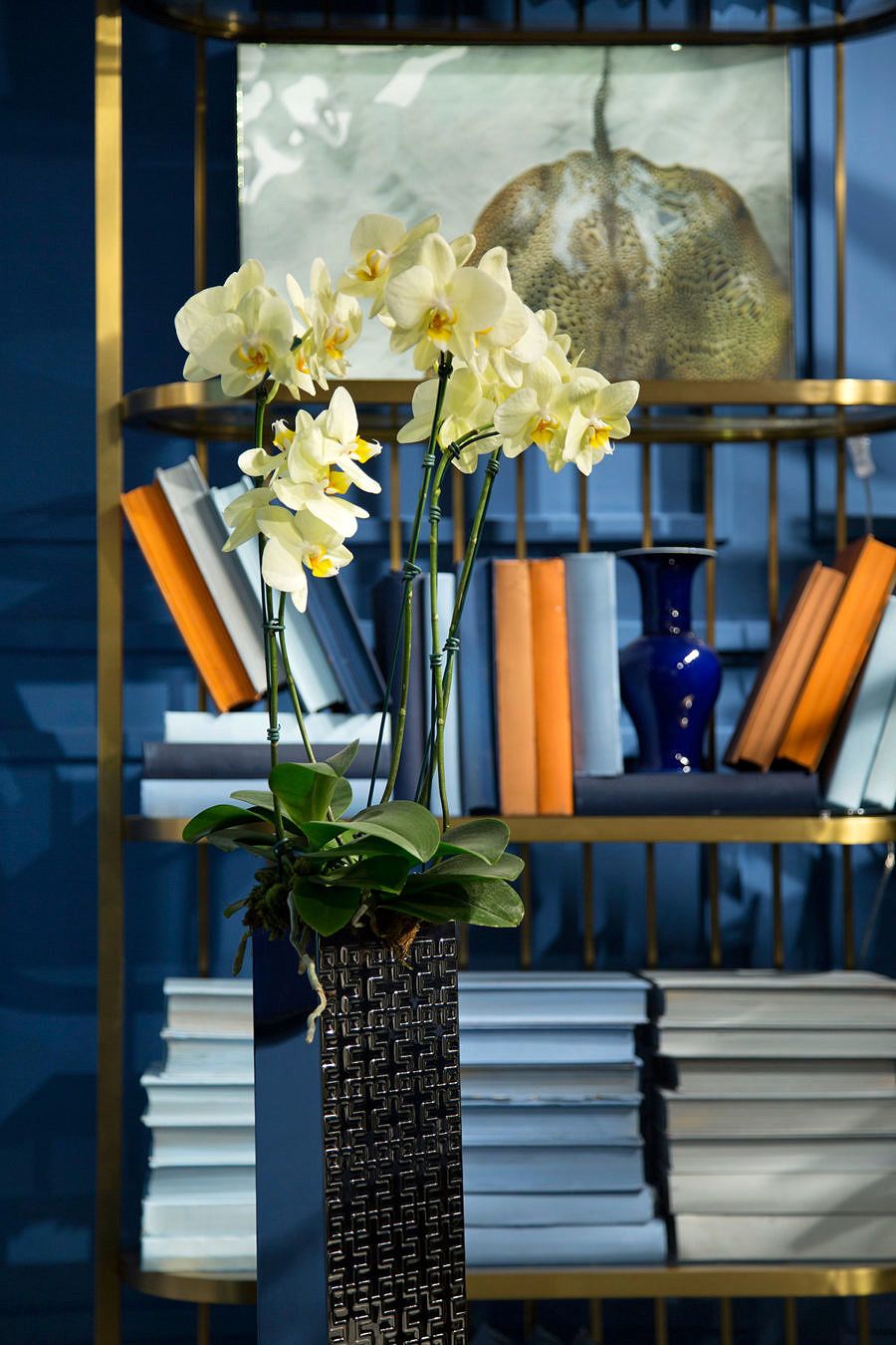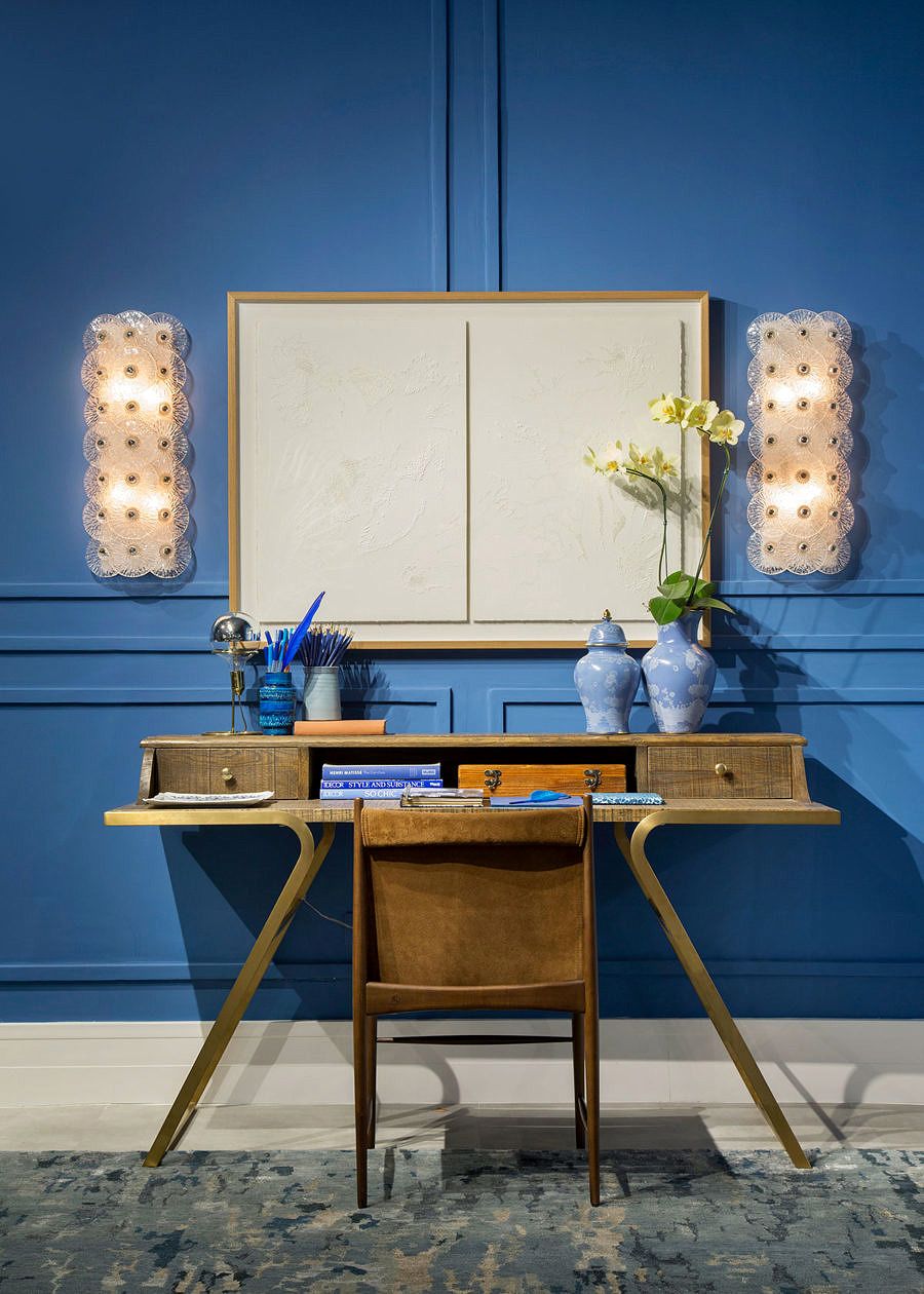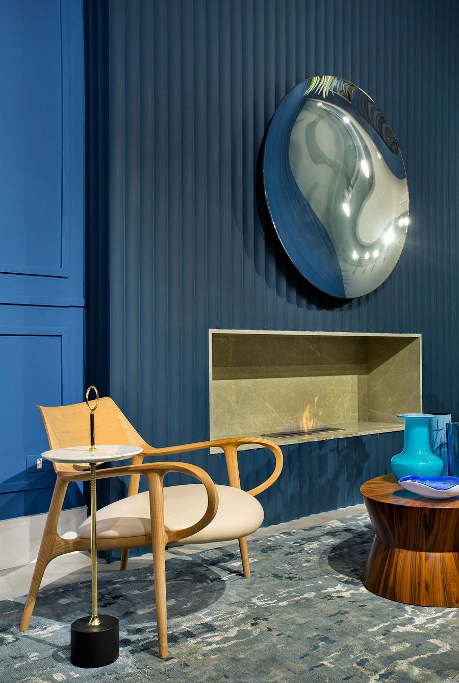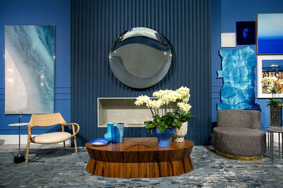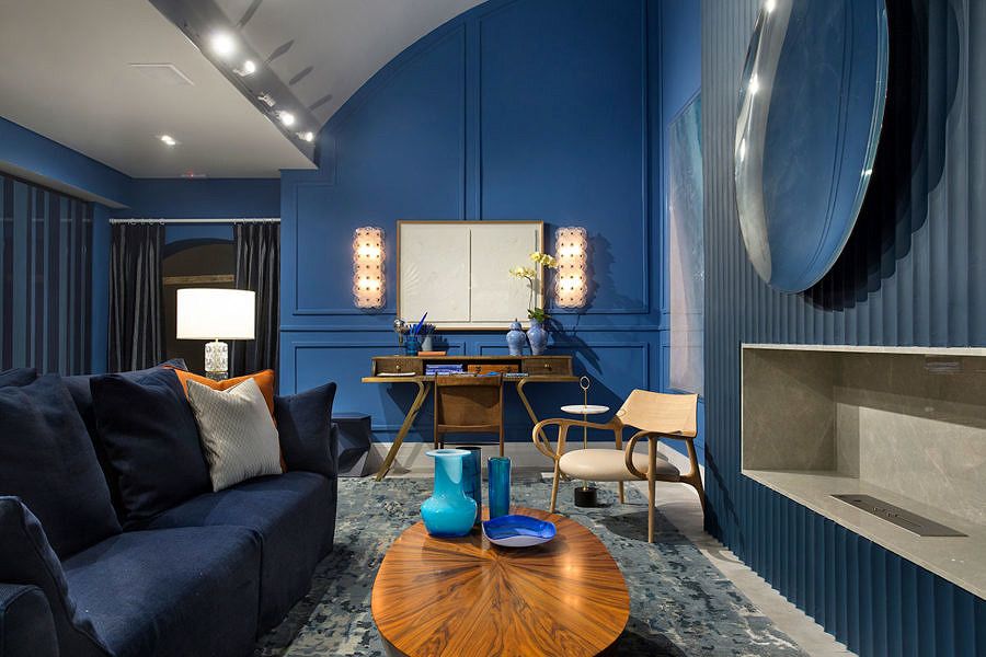 O ambiente assinado por Bruno Carvalho para a CASACOR São Paulo é o Hall da Biblioteca. O ambiente de 50 m² conta com diferentes tons de azul, inspirados no céu e no mar.