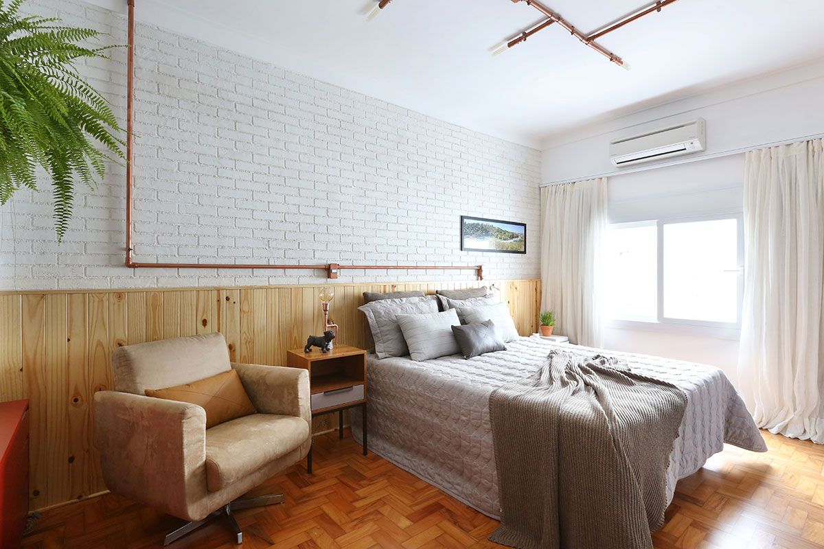Para este projeto, precisávamos fazer as intervenções com mínimo de obra e tempo possíveis. O cliente desejava que o apartamento refletisse seu estilo de vida e seus gostos, para isso usamos revestimentos naturais com uma pegada mais industrial, sem perder a contemporaneidade da proposta.