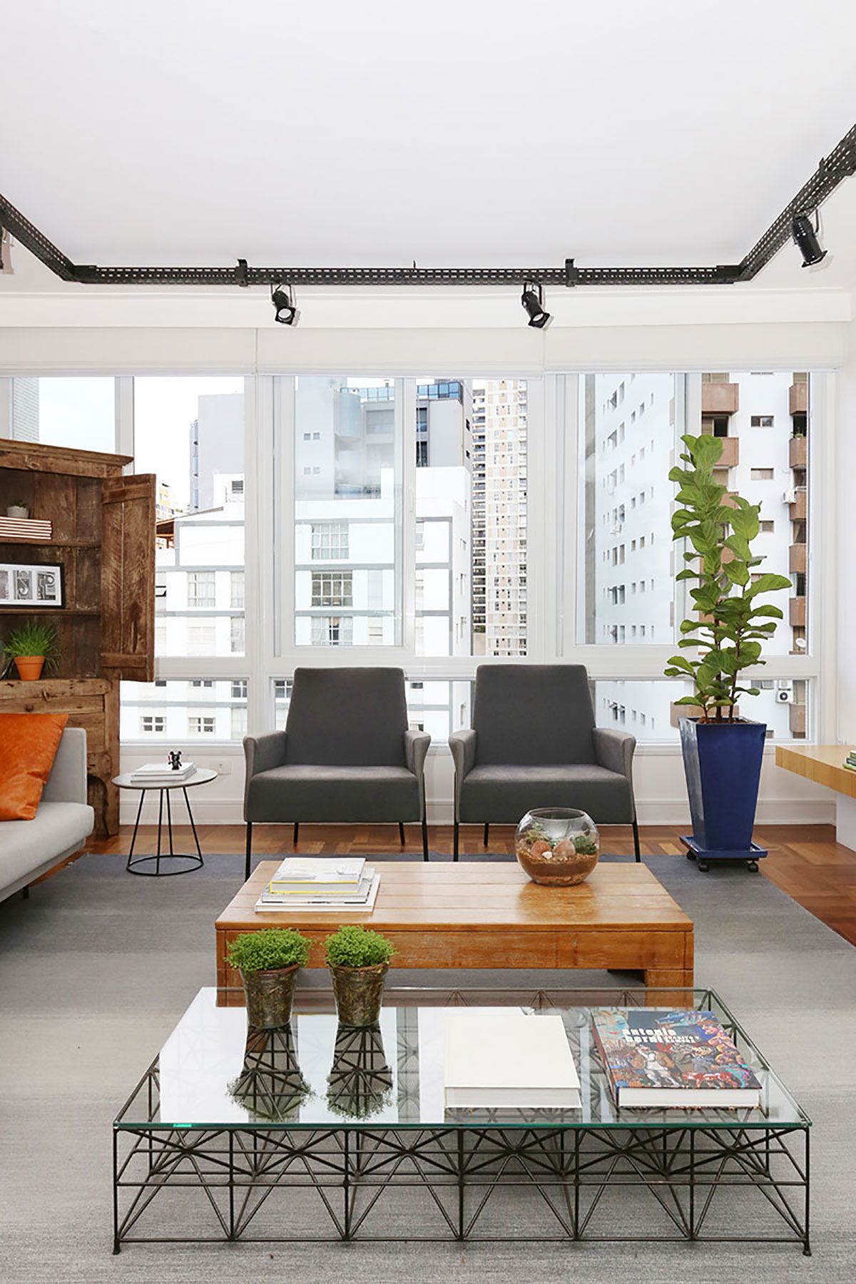 Uma das exigências do cliente era que utilizassem peças do acervo pessoal de objetos adquiridos em viagens. Por isso, a integração de peças antigas e rústicas com as novas de design contemporâneo.