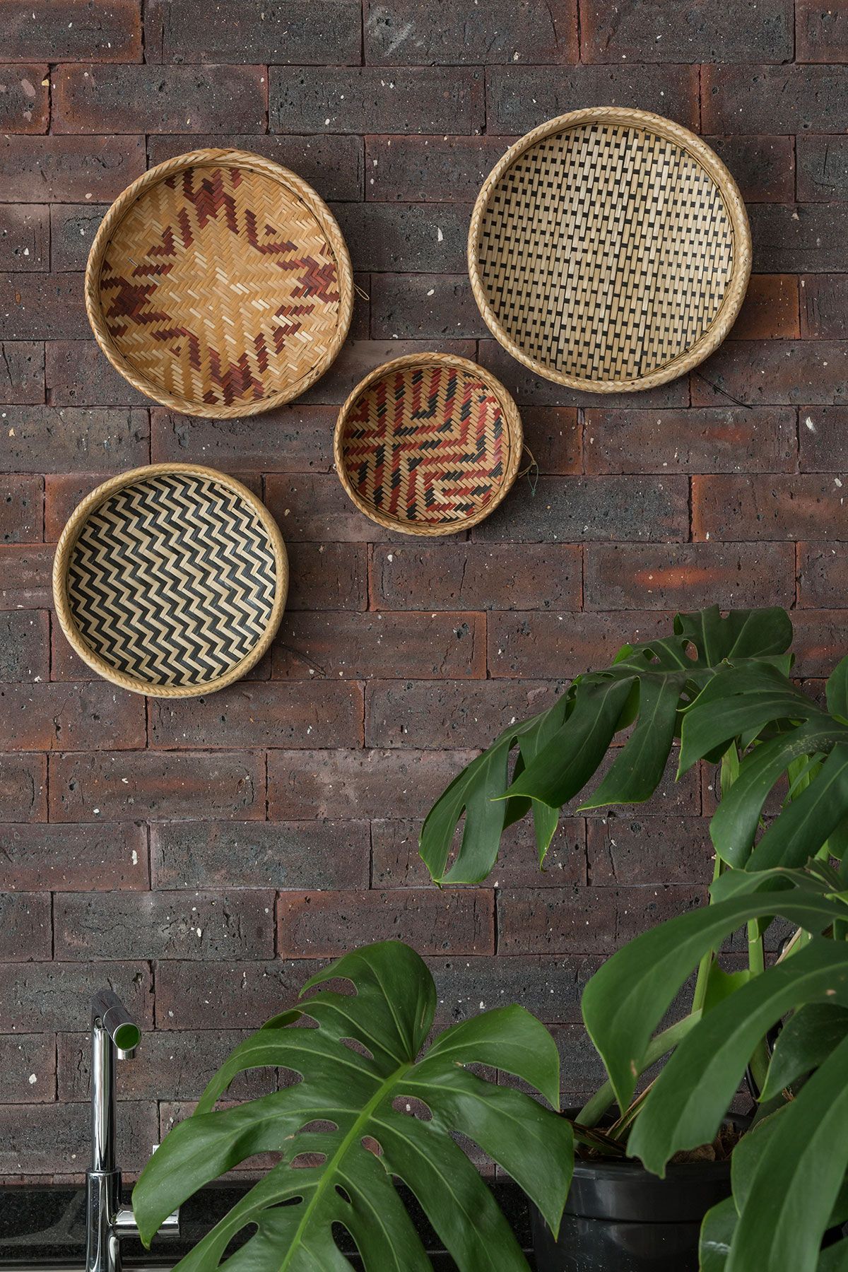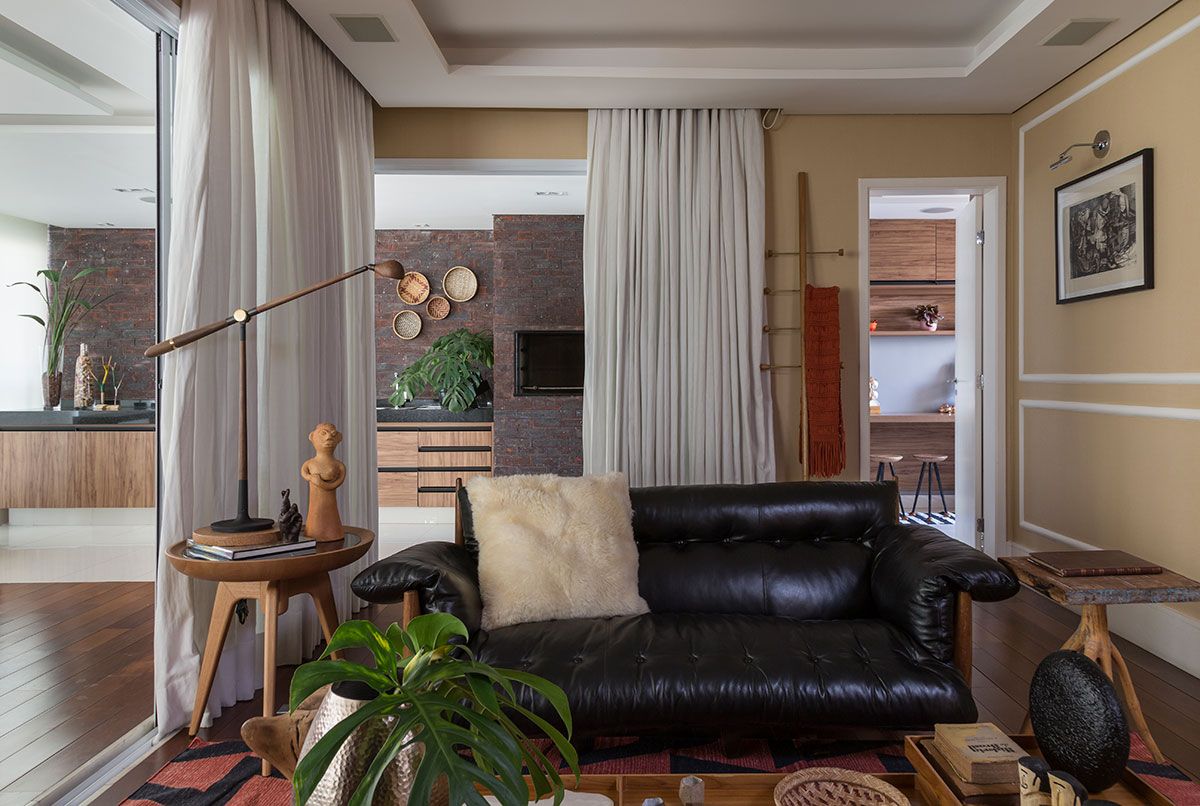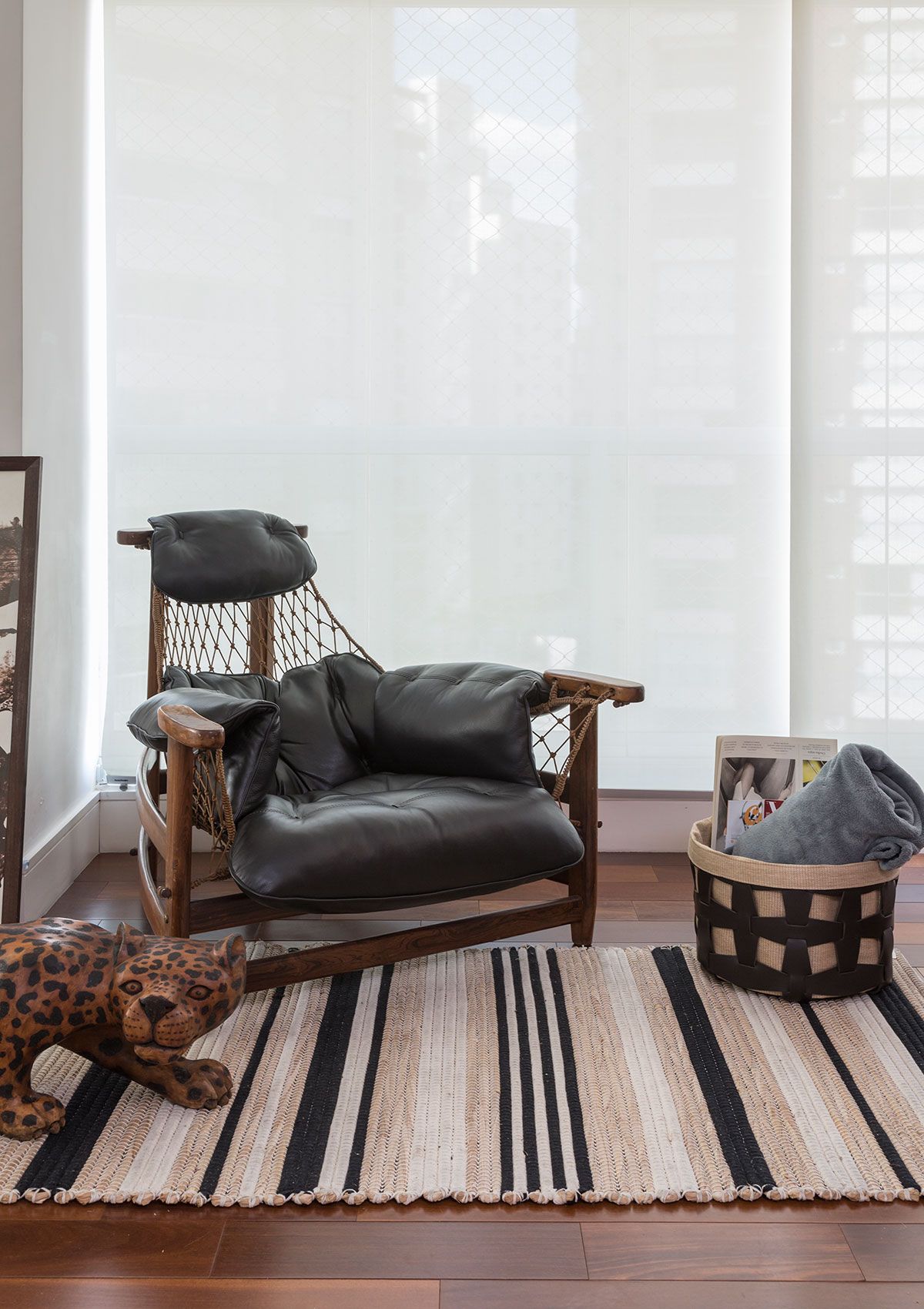 O projeto do escritório H2C Arquitetura era uma casa que abrigasse as necessidades do casal e dois filhos pequenos, com tons neutros, madeira e muitas influências brasileiras. Por isso escolheram peças de mobiliário autoral, cestaria indígena e esculturas do Projeto Sertões, que mapeia arte e artesanato pelo Brasil.