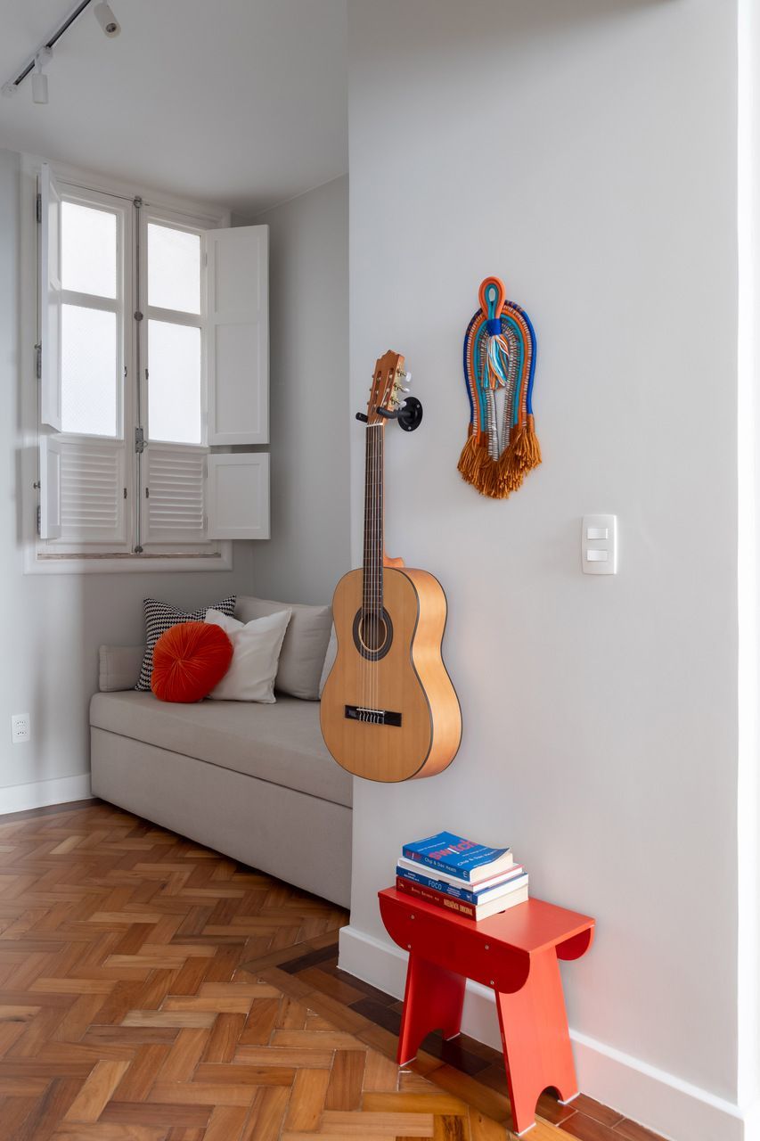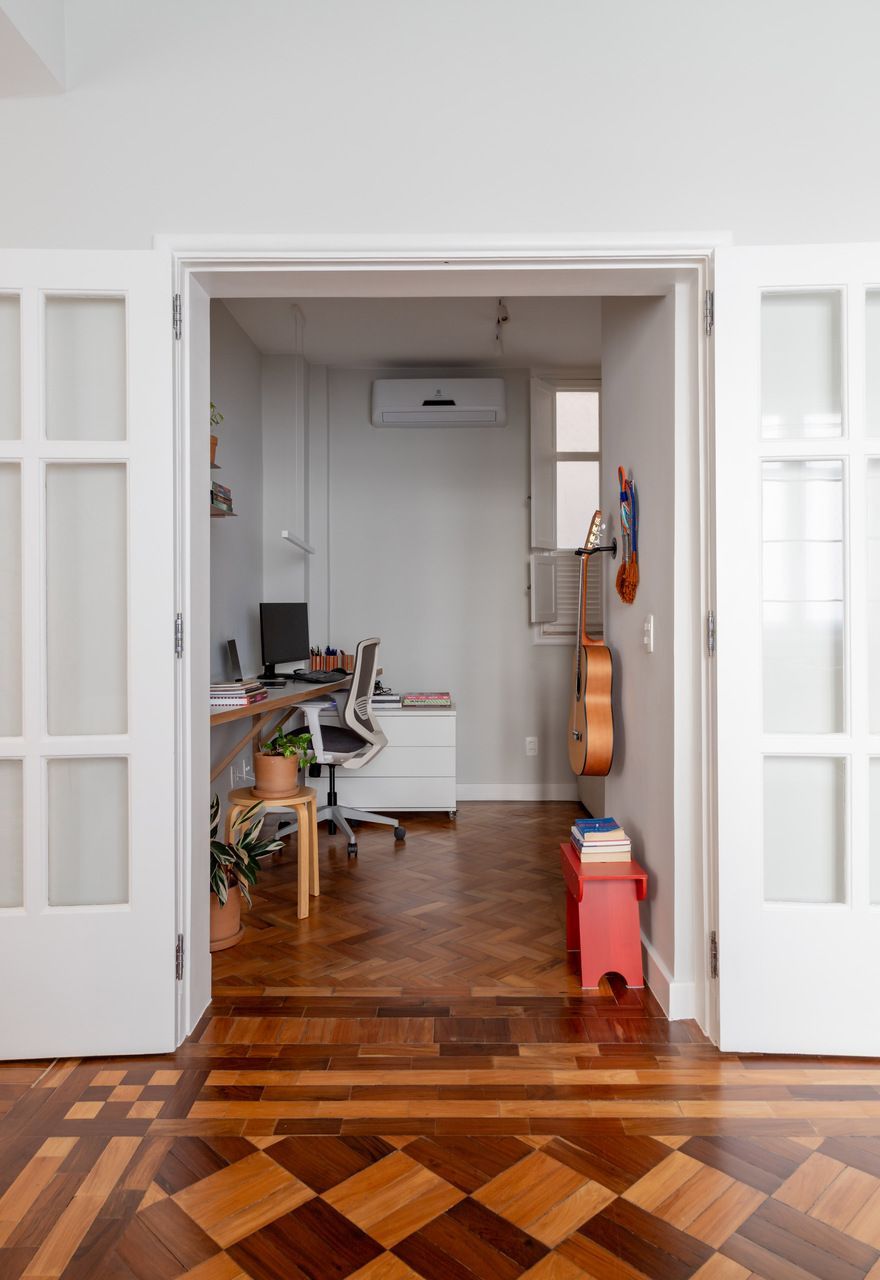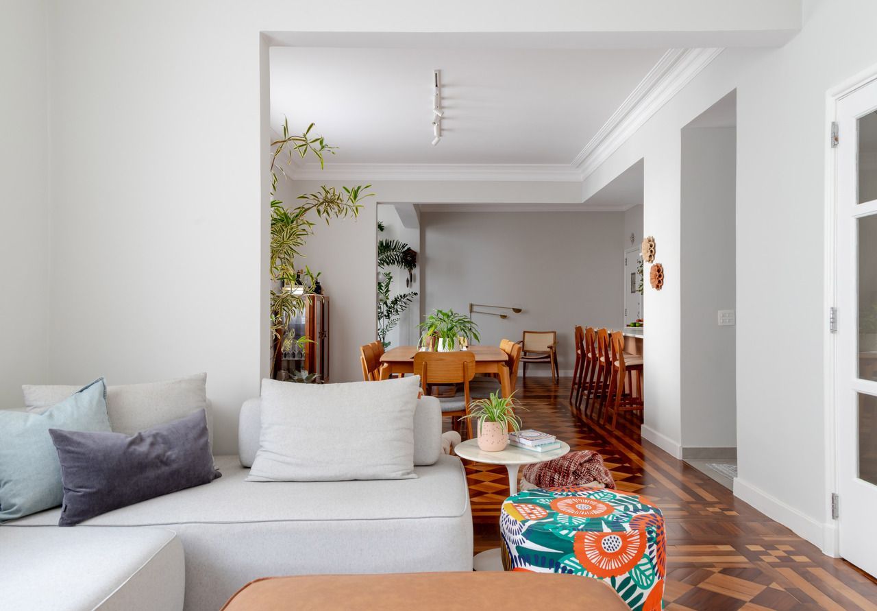 Depois de passar uma temporada de sete anos na Noruega, a designer de interiores Ana Paula Crivelenti e o marido, que já tinham morado em Copacabana e no Recreio dos Bandeirantes, voltaram a viver no Rio de Janeiro, com os filhos. Inicialmente, decidiram alugar um apartamento, pois queriam procurar, com calma, um imóvel para comprar. Até que se encantaram com esta unidade de 150m², em um prédio centenário super charmoso, no Flamengo, bairro na Zona Sul da cidade.