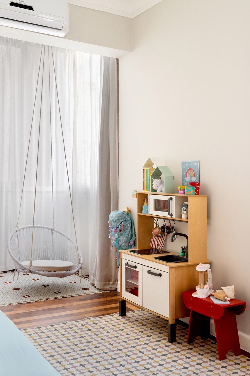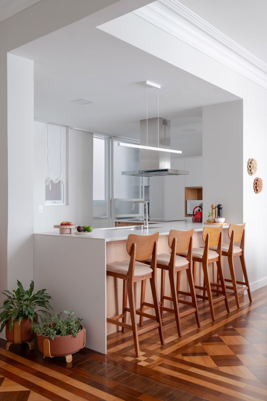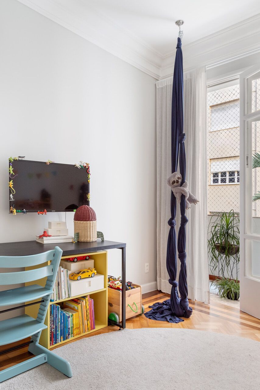 Depois de passar uma temporada de sete anos na Noruega, a designer de interiores Ana Paula Crivelenti e o marido, que já tinham morado em Copacabana e no Recreio dos Bandeirantes, voltaram a viver no Rio de Janeiro, com os filhos. Inicialmente, decidiram alugar um apartamento, pois queriam procurar, com calma, um imóvel para comprar. Até que se encantaram com esta unidade de 150m², em um prédio centenário super charmoso, no Flamengo, bairro na Zona Sul da cidade.