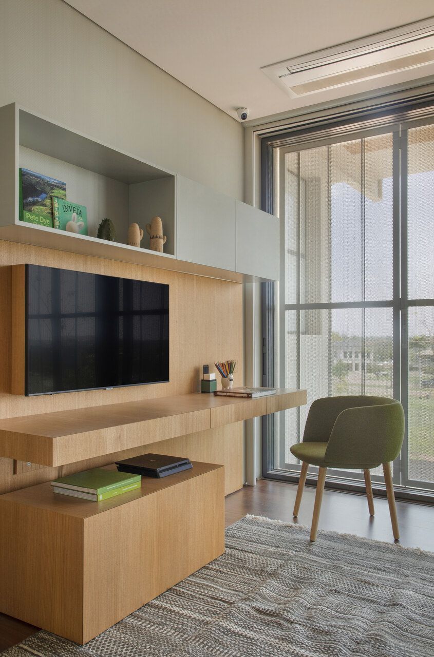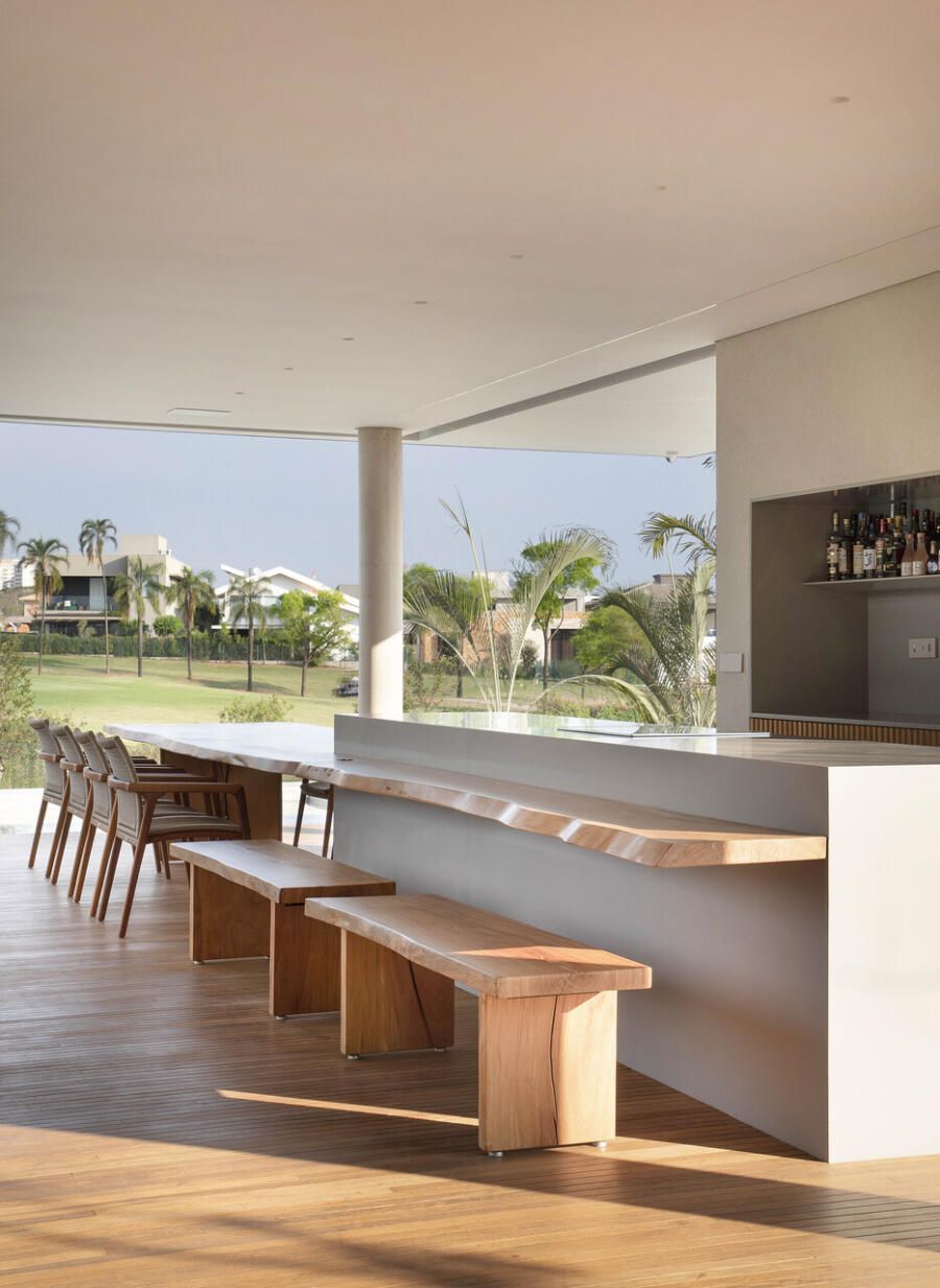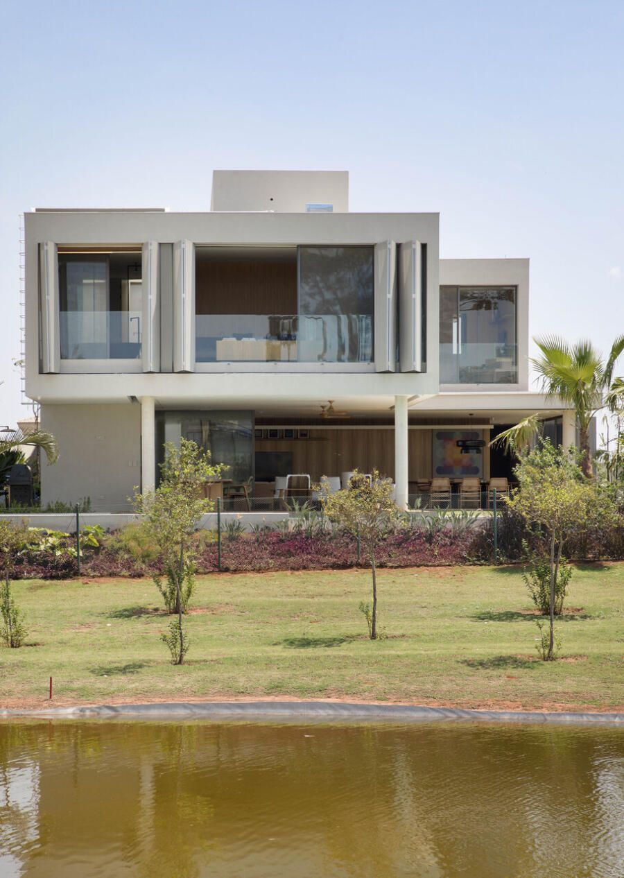 Um casal com dois filhos adolescentes escolheu São José do Rio Preto (SP) para construir sua casa dos sonhos em um terreno de 801m² dentro de um condomínio fechado. O projeto foi feito pelo escritório Solange Calio Arquitetos, com o objetivo de criar uma casa prática e confortável, perfeita para receber amigos e familiares. Além disso, os espaços internos e externos foram pensados para valorizar a paisagem ao redor, que inclui um campo de golfe e um lago.