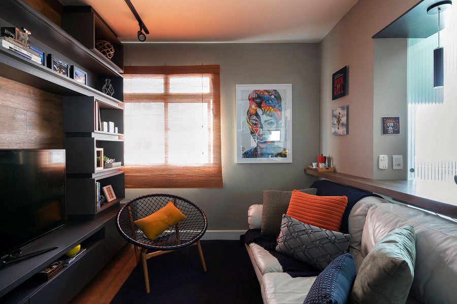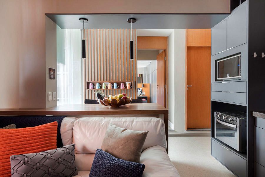 O apartamento antigo de 42 m² pertence hoje a um jovem casal recém-casado. O morador, que já conhecia o trabalho da arquiteta Carmem Avila, do escritório Carmem Avila Arquitetura, a convidou para reformar o apê que moraria com sua esposa. A ideia do escritório foi desenvolver um projeto com maior integração e conforto para os ambientes.