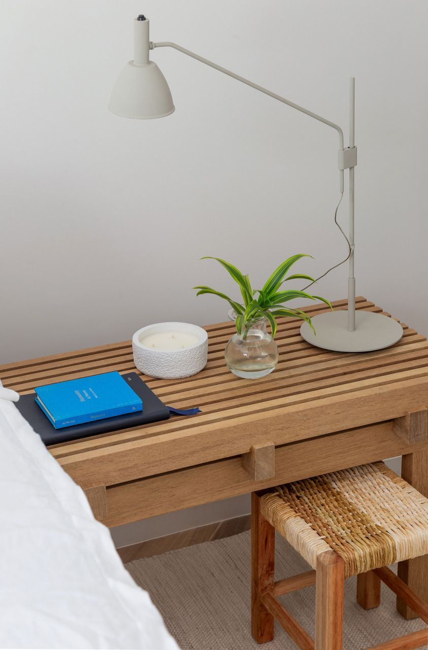 A marcenaria, desenhada sob medida, reforça o apreço do casal pela madeira. Esse mesmo material aparece nos móveis soltos, que combinam achados de fast design com ícones do mobiliário brasileiro, caso do banco Mocho, de Sergio Rodrigues. Quadros estrategicamente escolhidos completam o conjunto, criando um hi-lo elegante que traduz o momento de vida dos moradores.