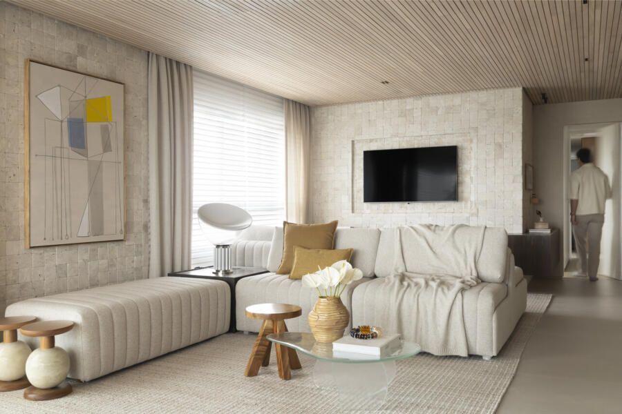 A proposta partiu de um objetivo claro: criar um espaço acolhedor, com identidade e sensação de permanência. A ideia era que o apartamento se afastasse da lógica de um imóvel de passagem e assumisse um caráter mais duradouro, com ambientes confortáveis e uma linguagem atemporal, como conta o morador: