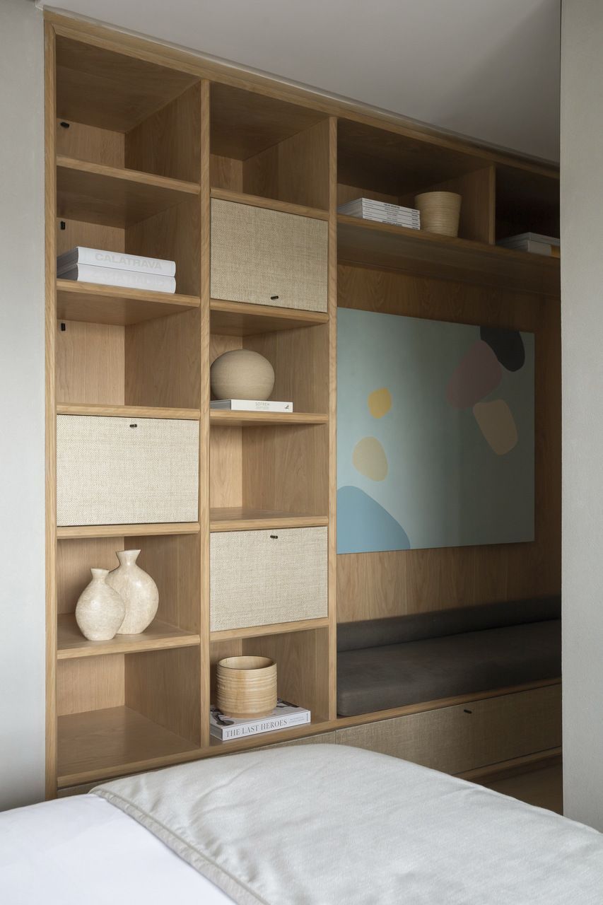 Durante a obra, algumas decisões foram ajustadas para garantir melhor execução e coerência com o orçamento, como a substituição de elementos inicialmente previstos por soluções sob medida mais integradas ao projeto. O resultado é um apartamento funcional, bem resolvido e com uma identidade clara, pensado para acompanhar o morador ao longo dos anos.