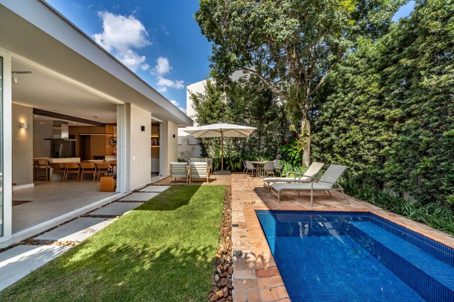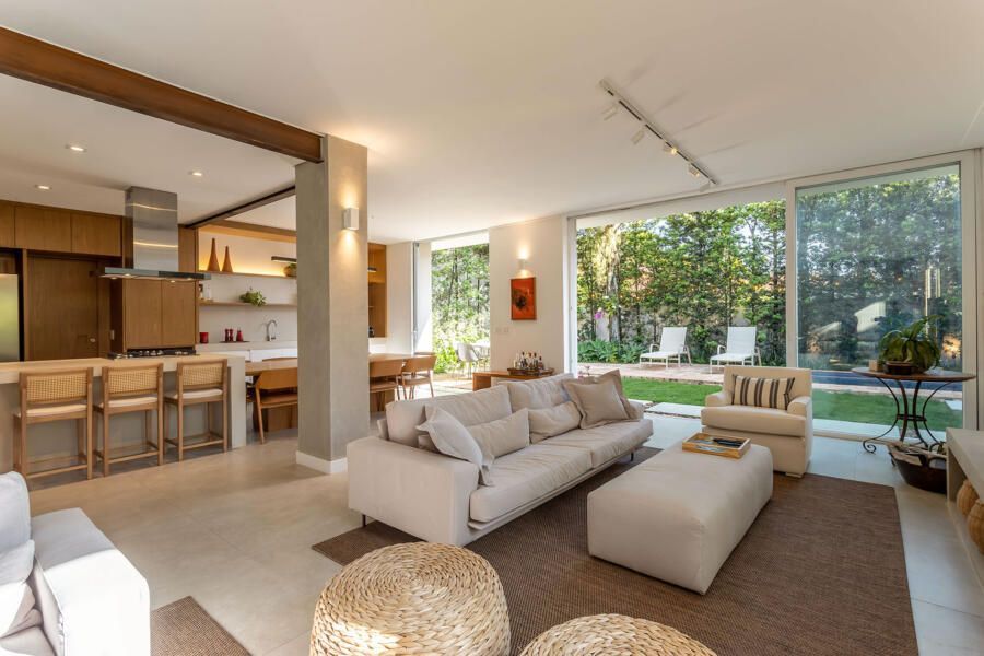 Uma casa integrada, com vista para o jardim e decoração contemporânea. Este é o projeto assinado pelo escritório Cyan Arquitetura, que contou com projeto de interiores da Uzo Design e paisagismo por Camila Cavallari.