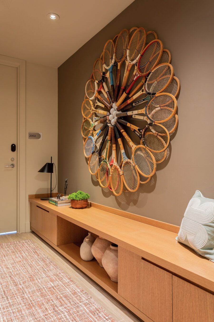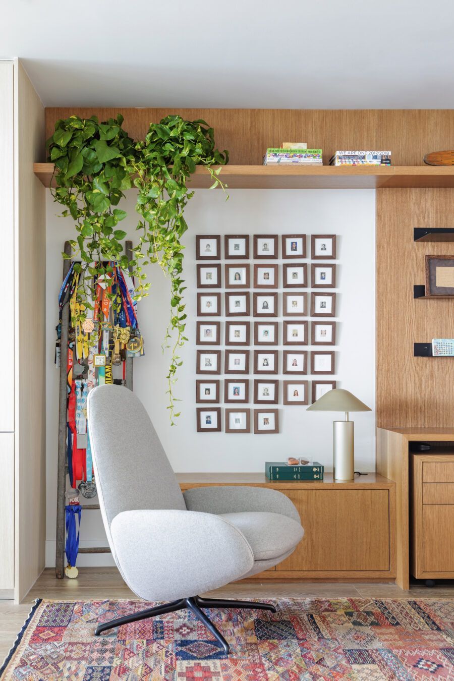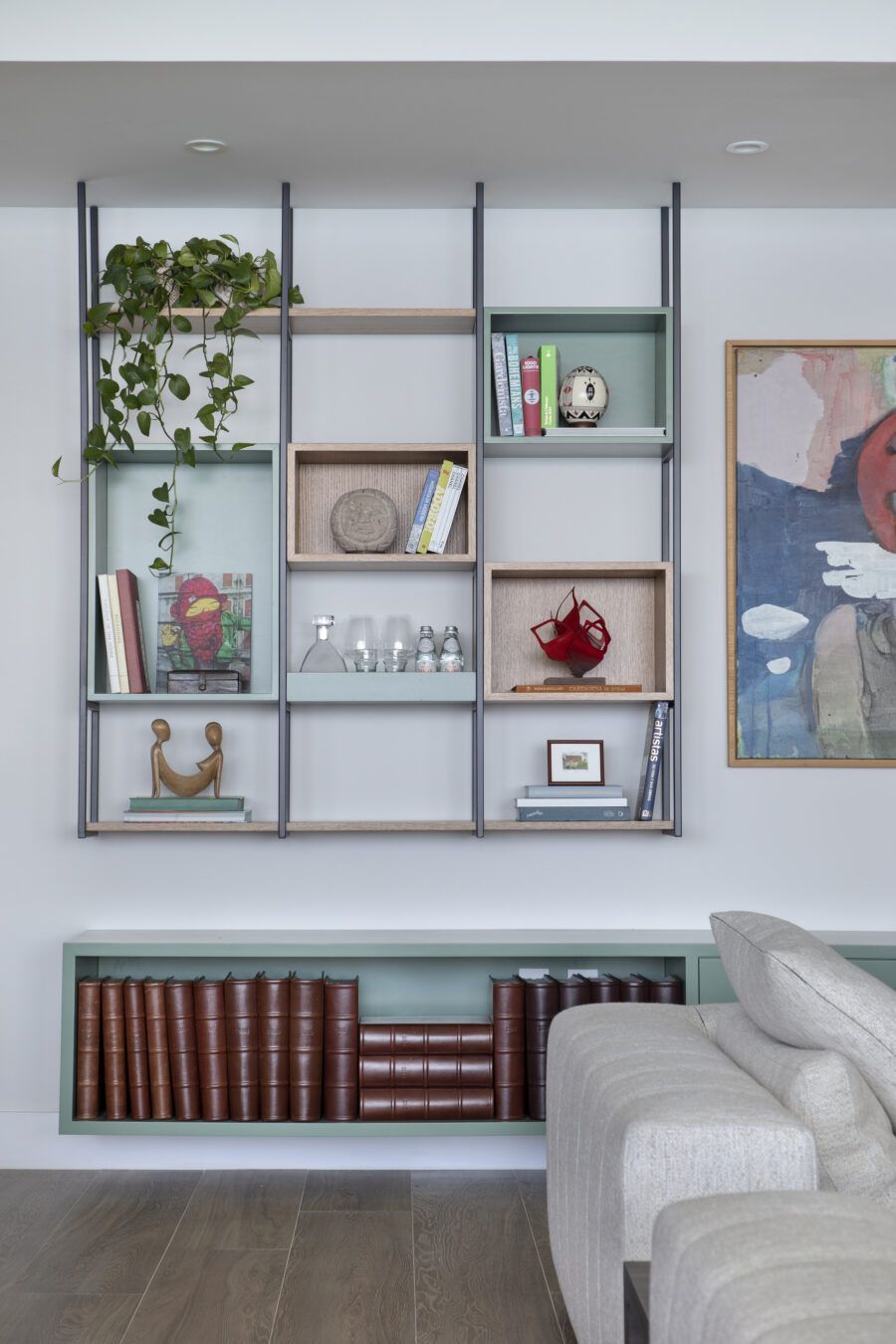 “Os clientes vão acrescentando novos quadros quando nasce um bebê ou quando alguém se casa. Nosso maior desafio neste projeto foi fazer caber no novo lar os muitos objetos de recordação que os clientes trouxeram das duas casas que eles tinham em São Paulo e foram desmontadas ao mesmo tempo.”