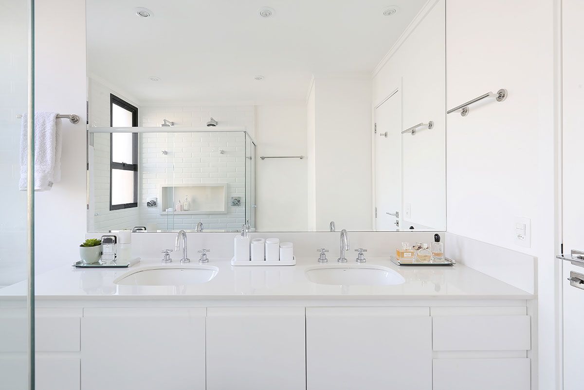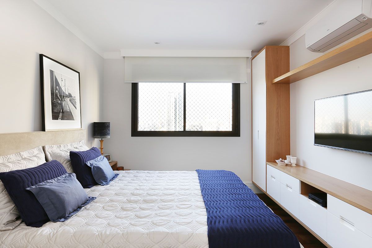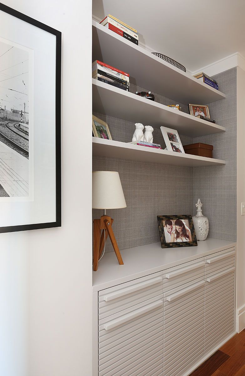 O desafio foi criar novos espaços para acomodar tudo o que o marido tinha no escritório, a escrivaninha para trabalho, estante com livros, documentos e objetos pessoais, além do armário e da cômoda com todas as roupas e sapatos.