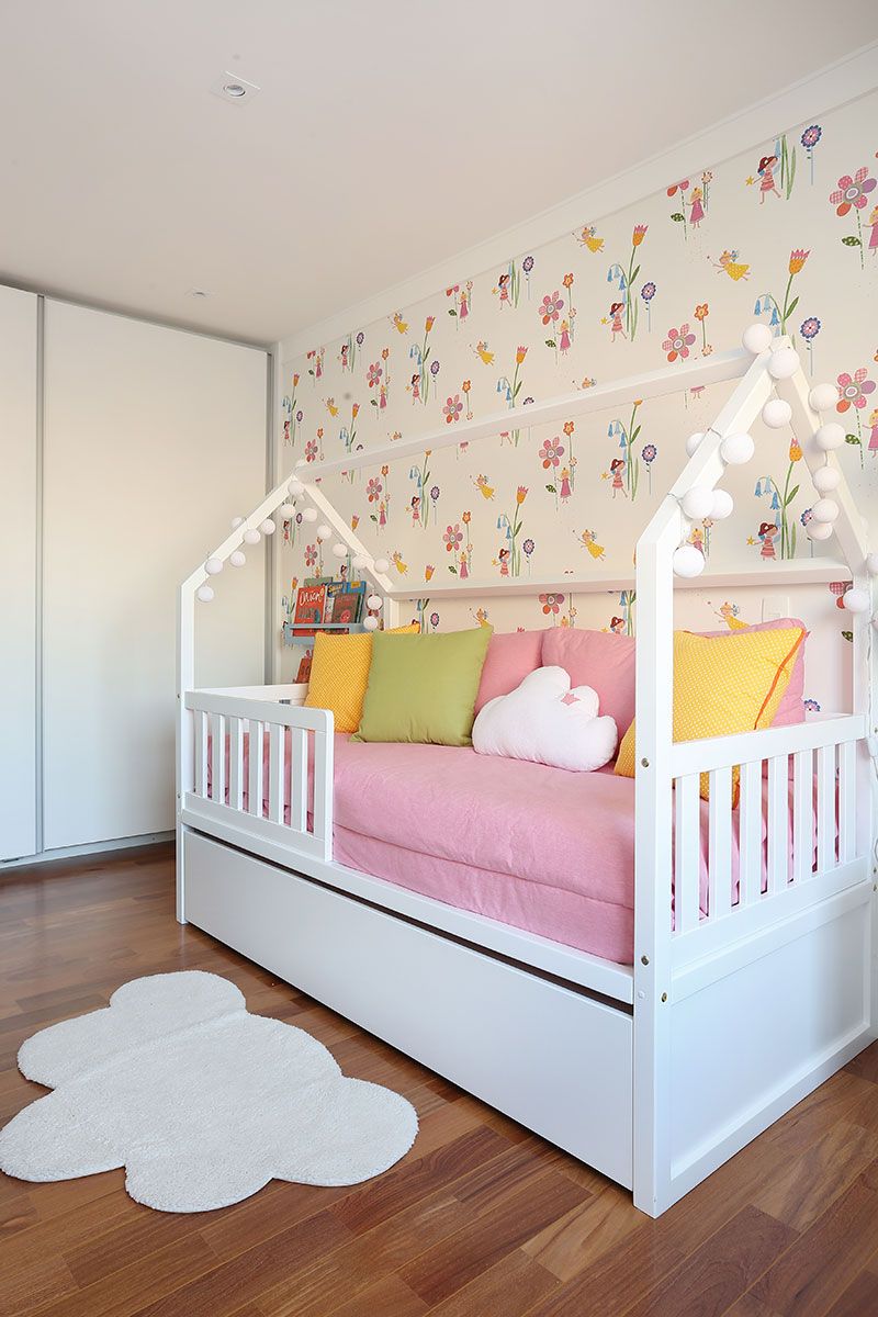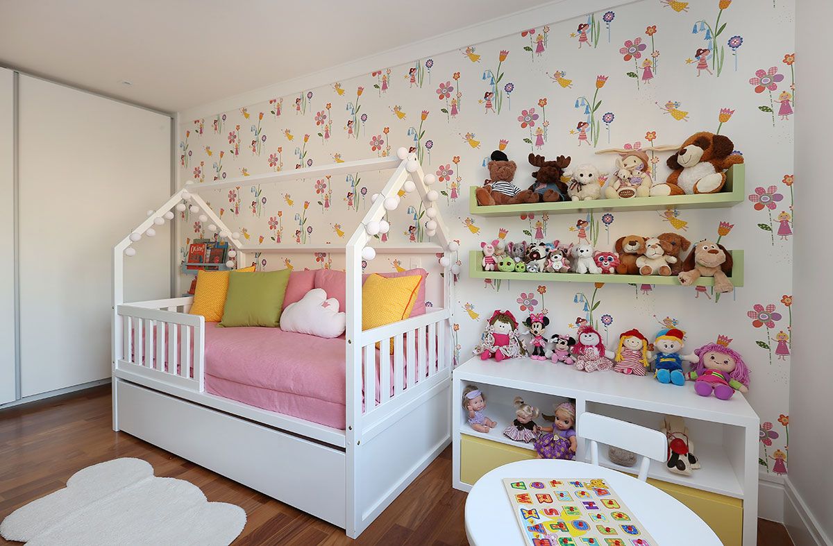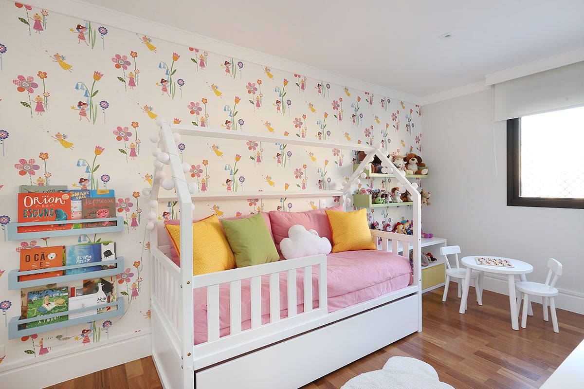 Um casal jovem, com uma filha pequena e “grávidos” do segundo filho. Precisavam de espaço para acomodar o escritório do marido e as coisas dele que ficavam no quarto que passaria a ser da filha. Pediram ao escritório Stal Arquitetura um quarto bem especial para ela, que deixaria seu quarto de bebê para o irmão e passaria a dormir na cama. Desejavam móveis atuais, além do pedido especial de terem uma parede com plantas.