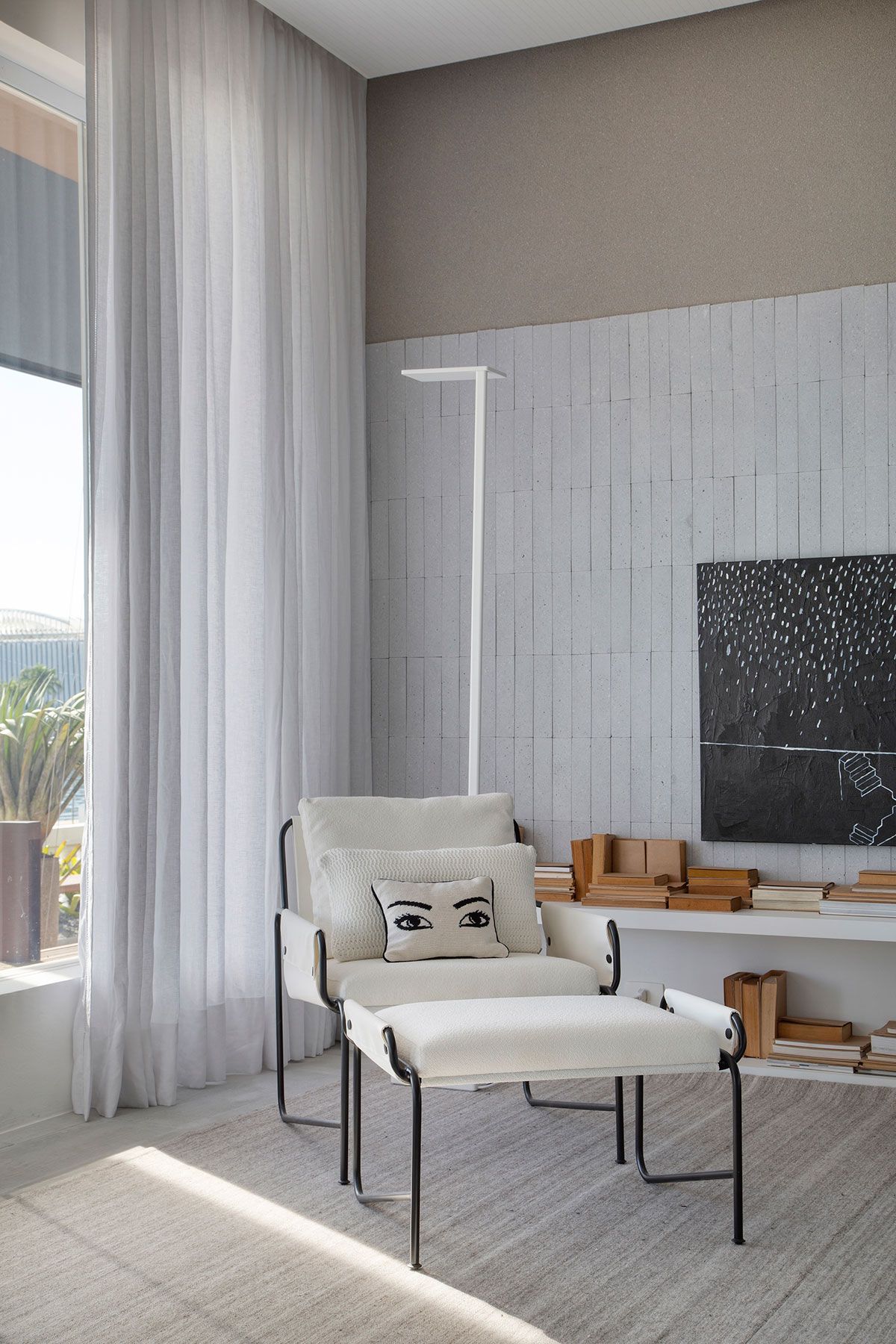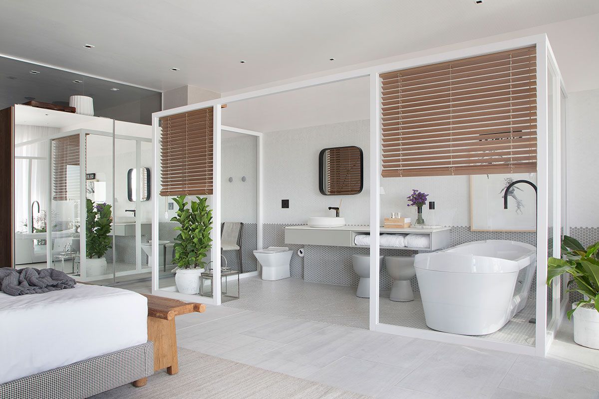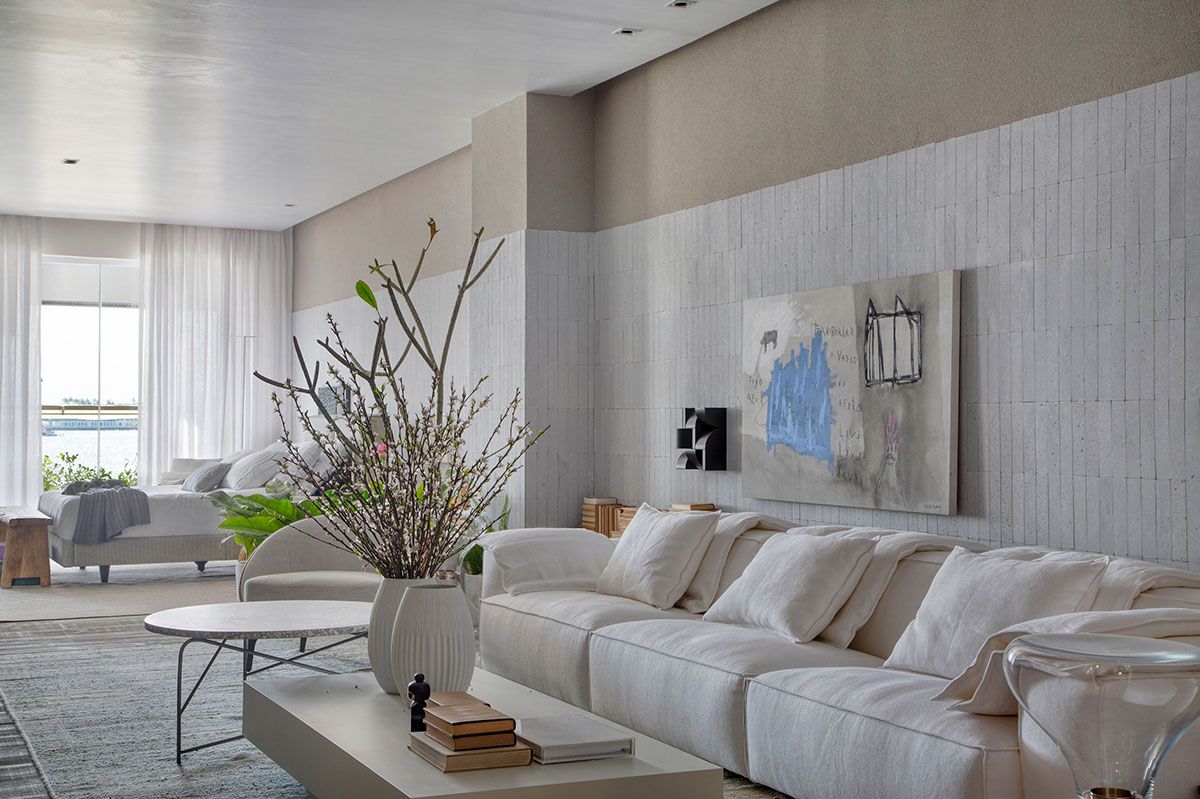 O ambiente assinado pelo escritório Jacira Pinheiro Arquitetura para a CasaCor Rio 2019 é a Casa DOA. O espaço 90m² é um loft iluminado, que se debruça sobre a Baía da Guanabara, em tonalidades claras e com escolhas minimalistas.