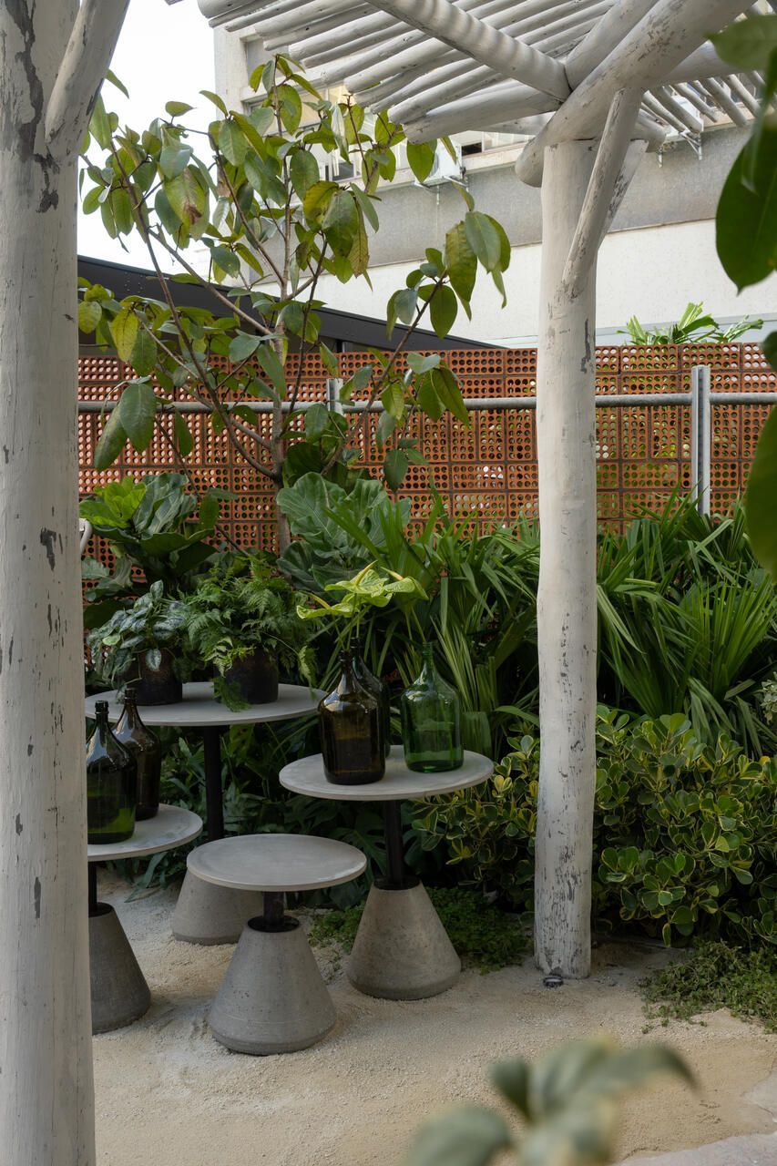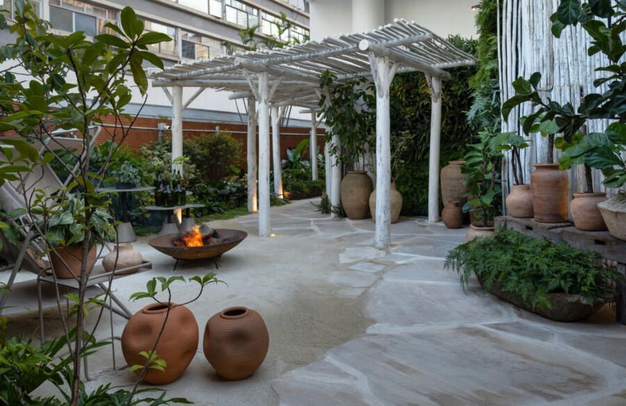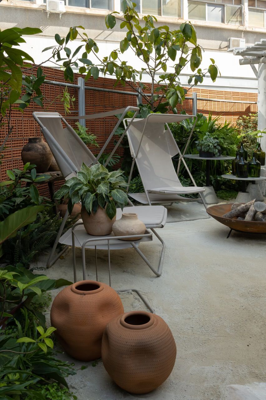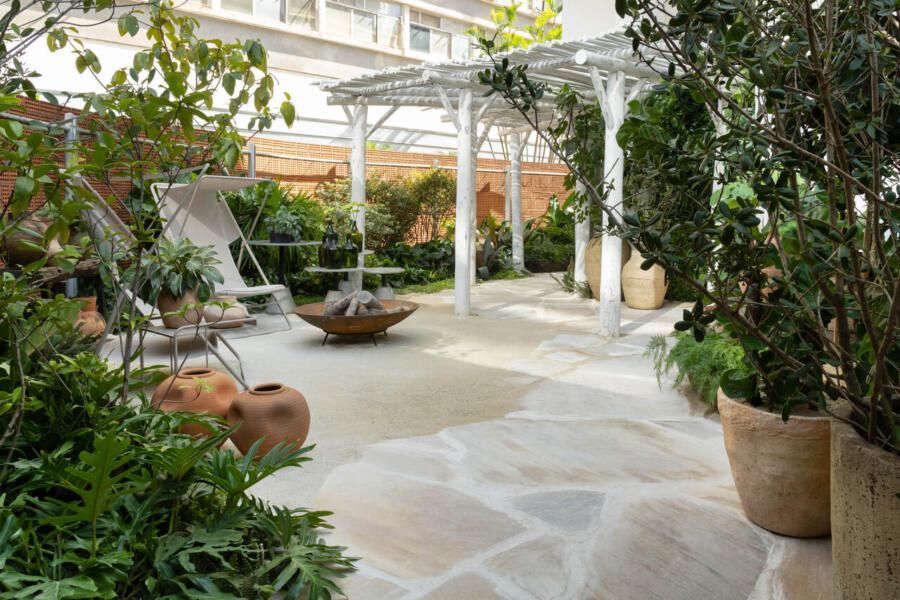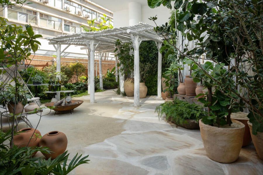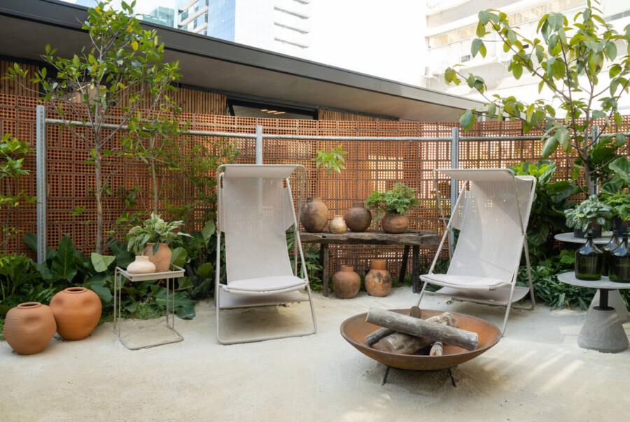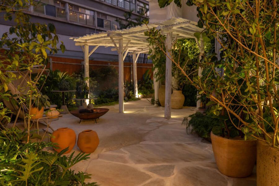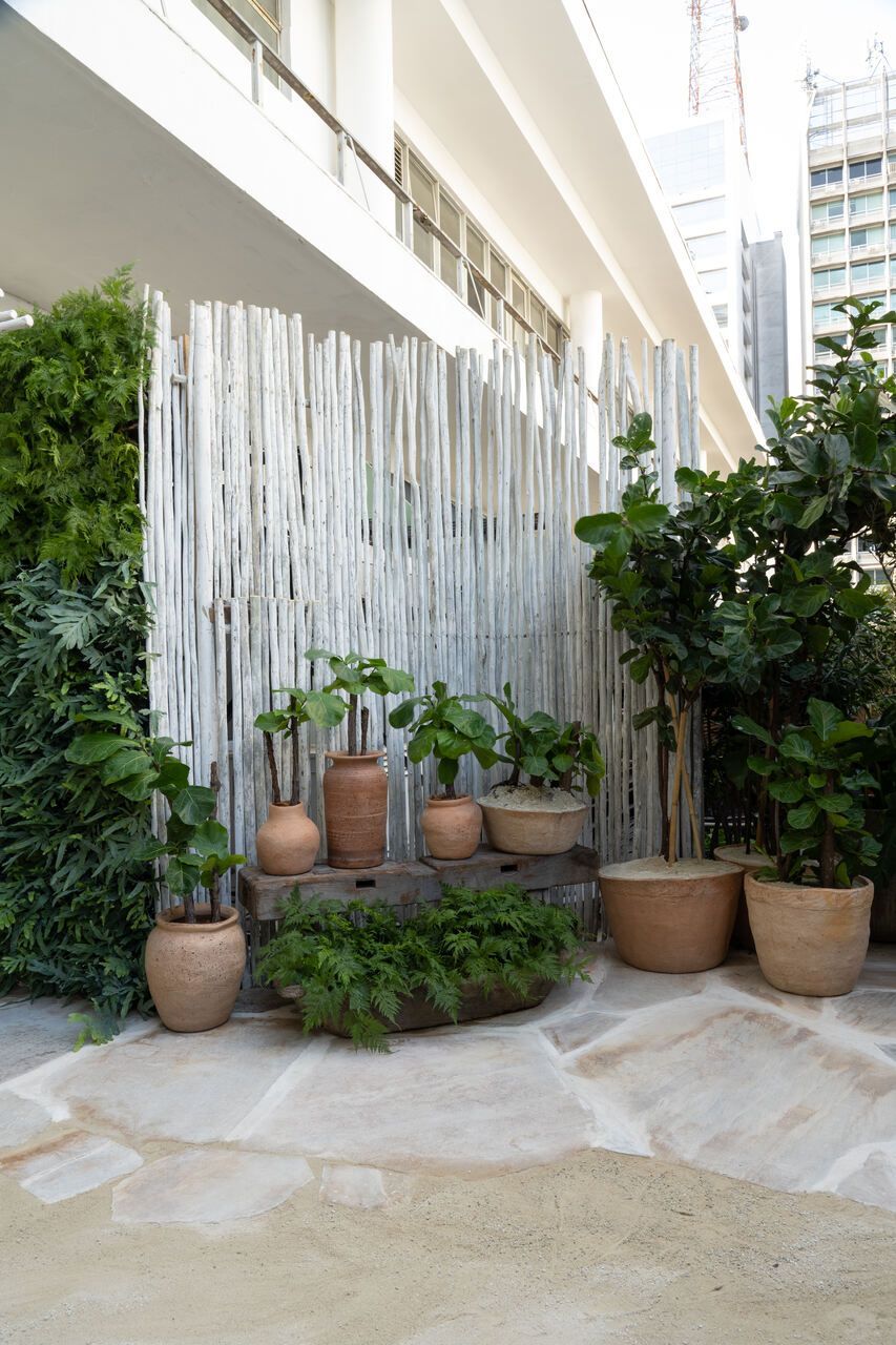 Um dos maiores desafios enfrentados pela dupla foi compor o espaço tão somente com vasos, já que o Conjunto Nacional é tombado pelo patrimônio e apresenta limitações para alterações. No final, o fator serviu como estimulo e fez com que as paisagistas apostassem na genuinidade da madeira, das pedras e do barro para compor o Jardim Sereno.