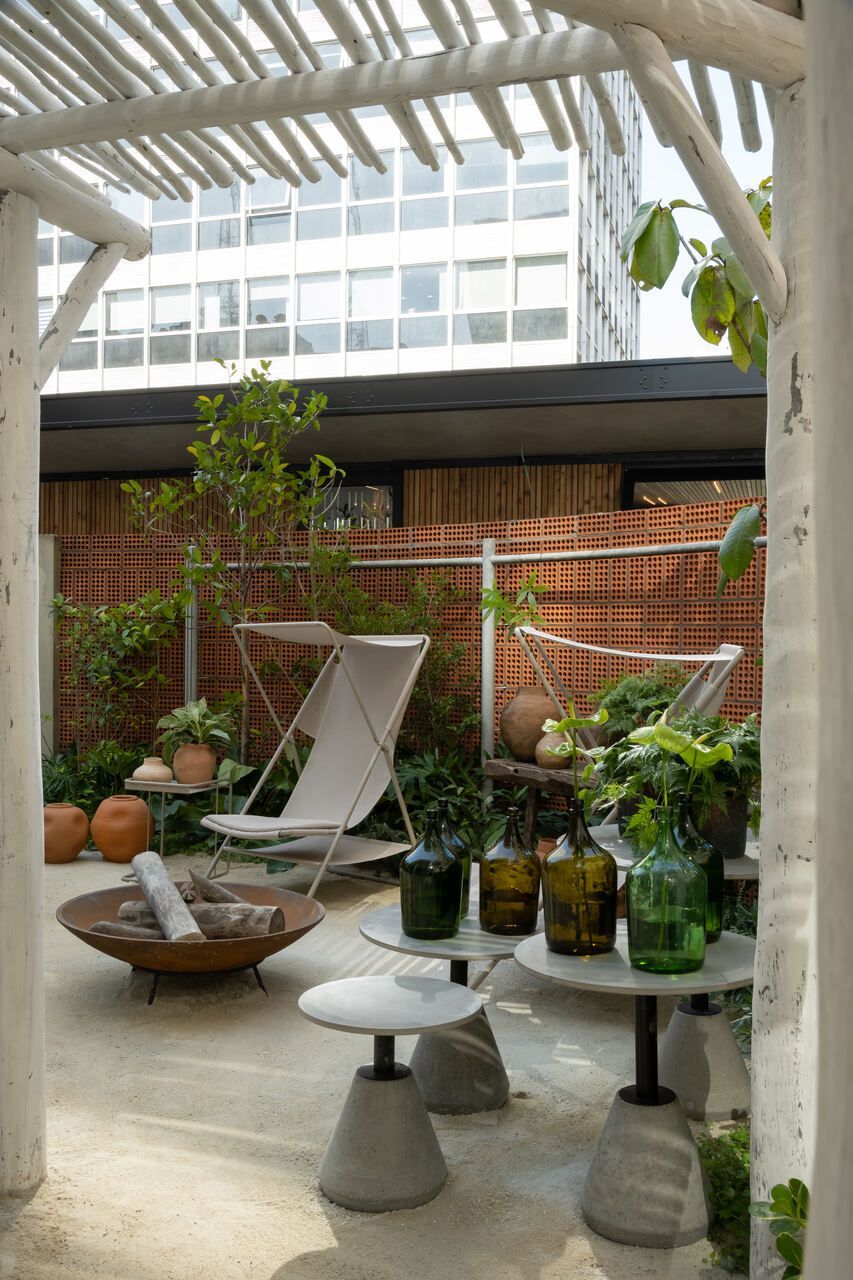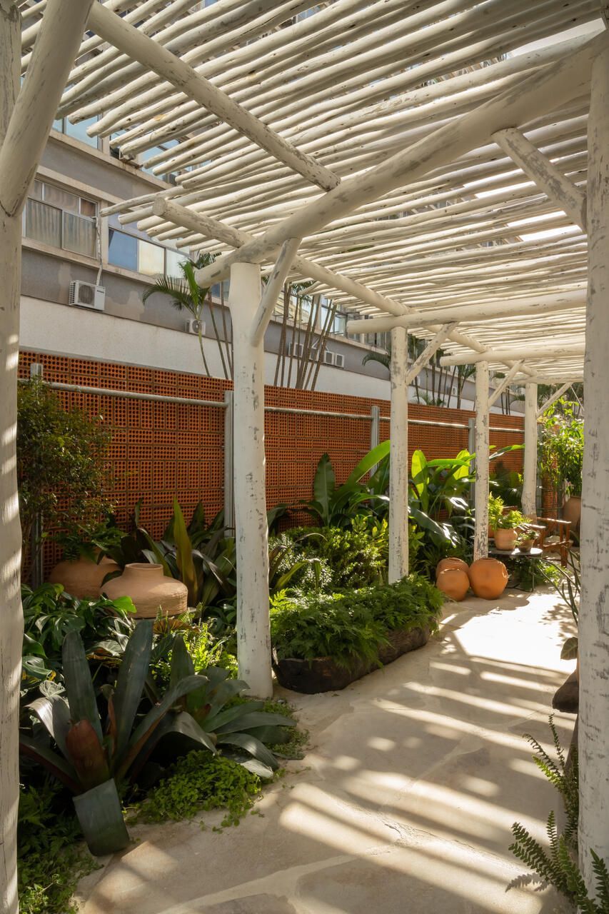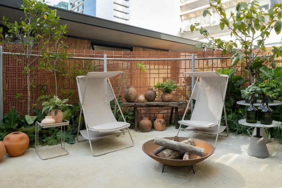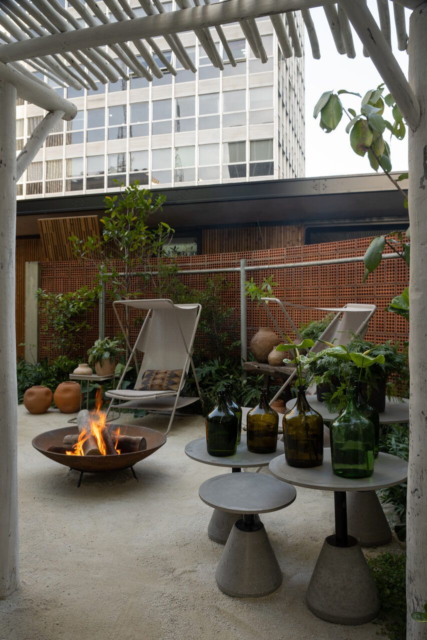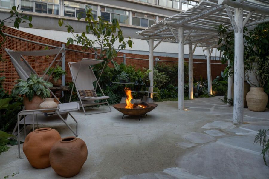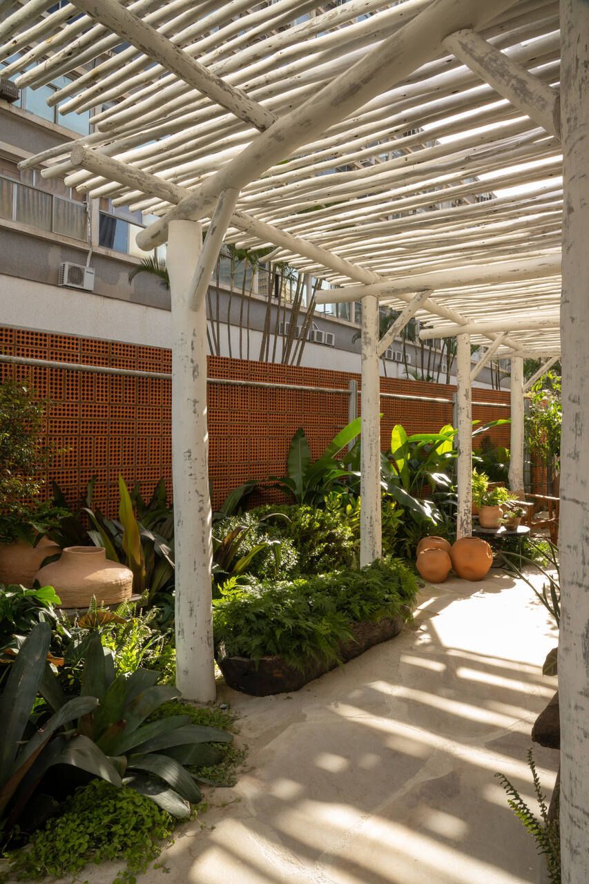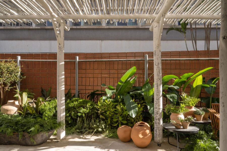 Um dos maiores desafios enfrentados pela dupla foi compor o espaço tão somente com vasos, já que o Conjunto Nacional é tombado pelo patrimônio e apresenta limitações para alterações. No final, o fator serviu como estimulo e fez com que as paisagistas apostassem na genuinidade da madeira, das pedras e do barro para compor o Jardim Sereno.