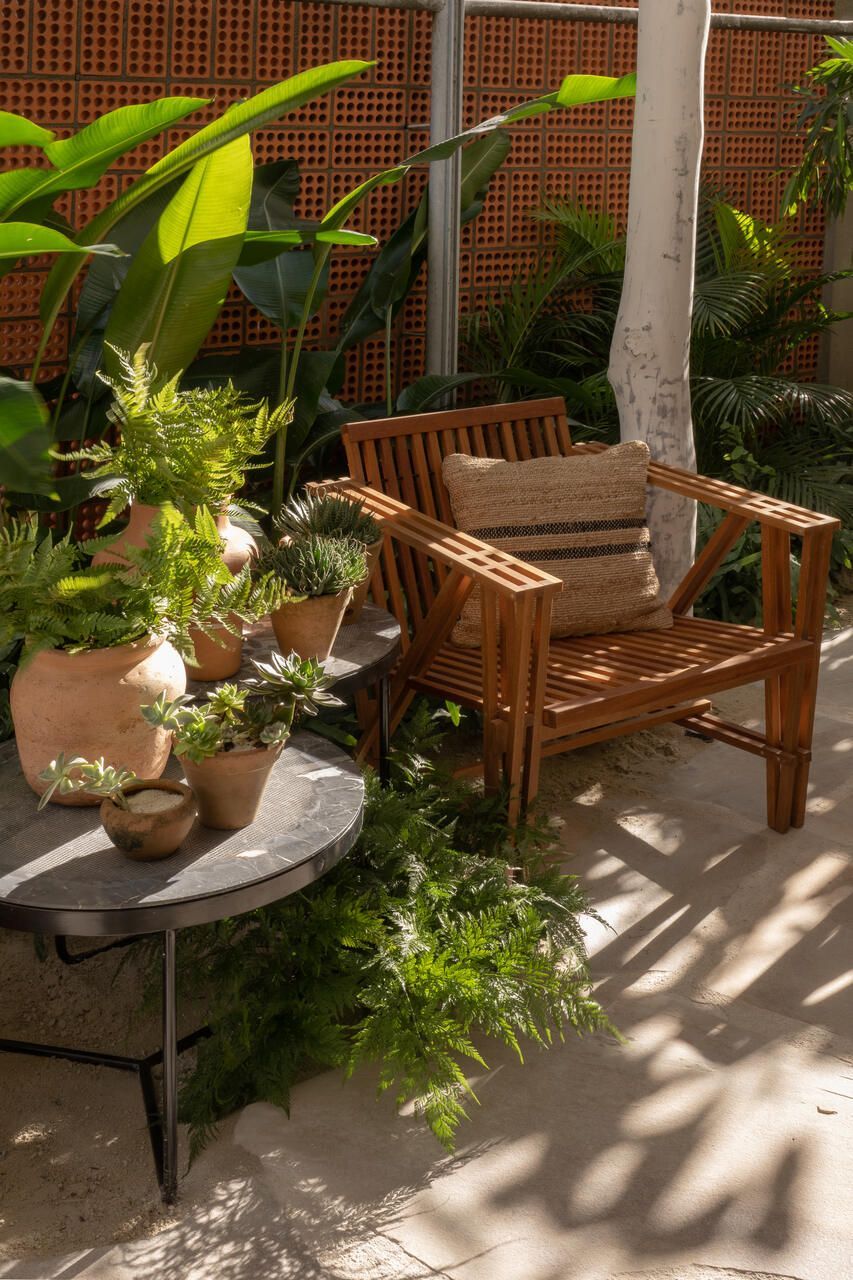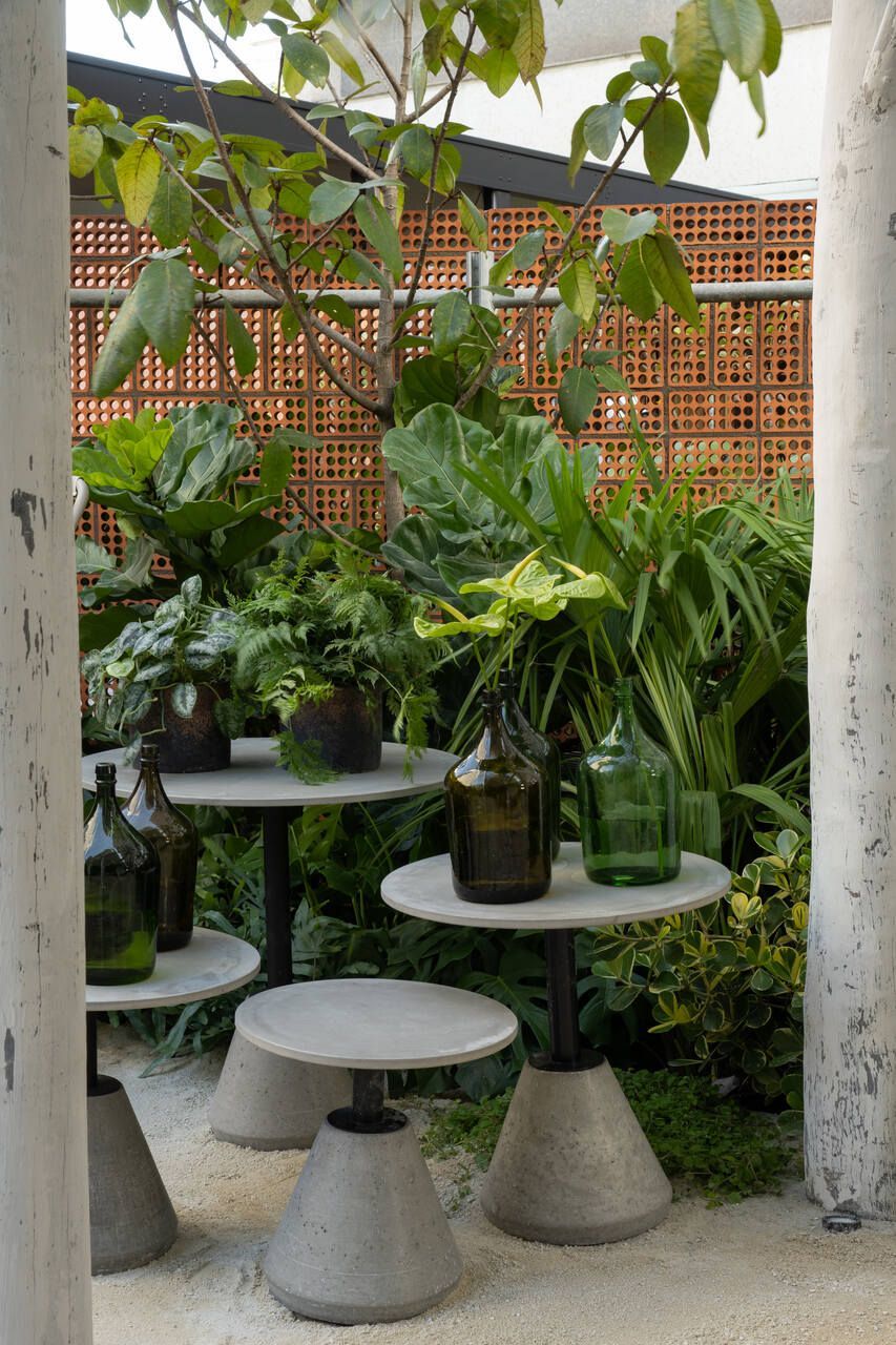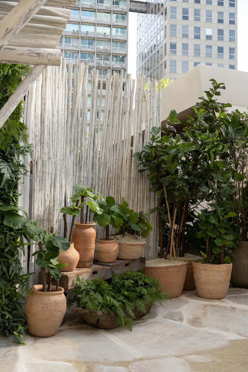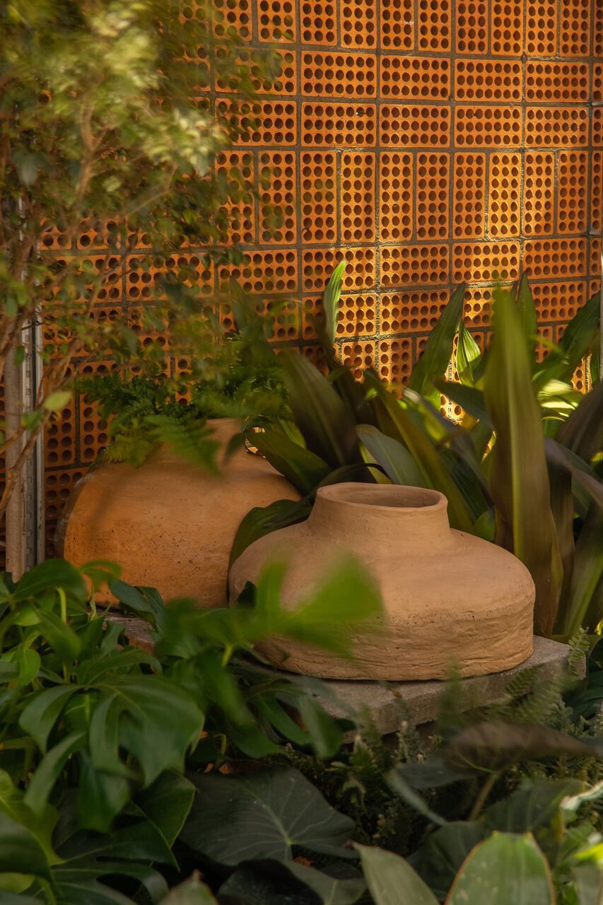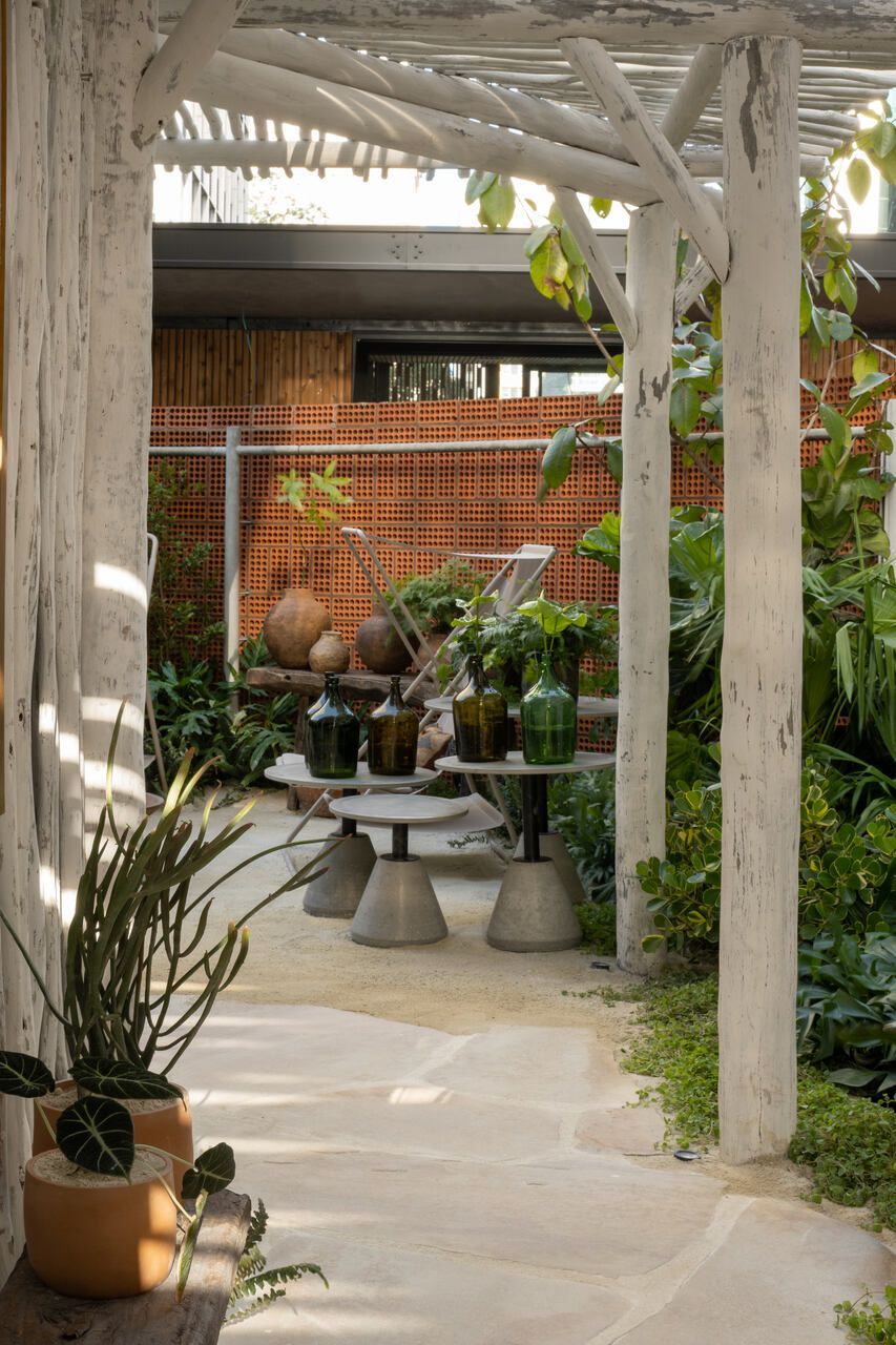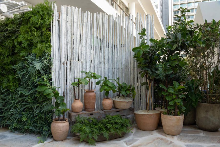 Um dos maiores desafios enfrentados pela dupla foi compor o espaço tão somente com vasos, já que o Conjunto Nacional é tombado pelo patrimônio e apresenta limitações para alterações. No final, o fator serviu como estimulo e fez com que as paisagistas apostassem na genuinidade da madeira, das pedras e do barro para compor o Jardim Sereno.