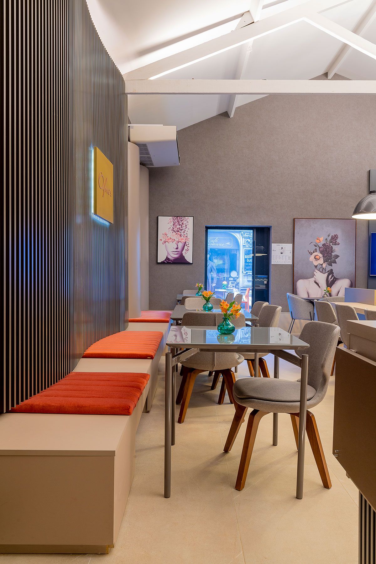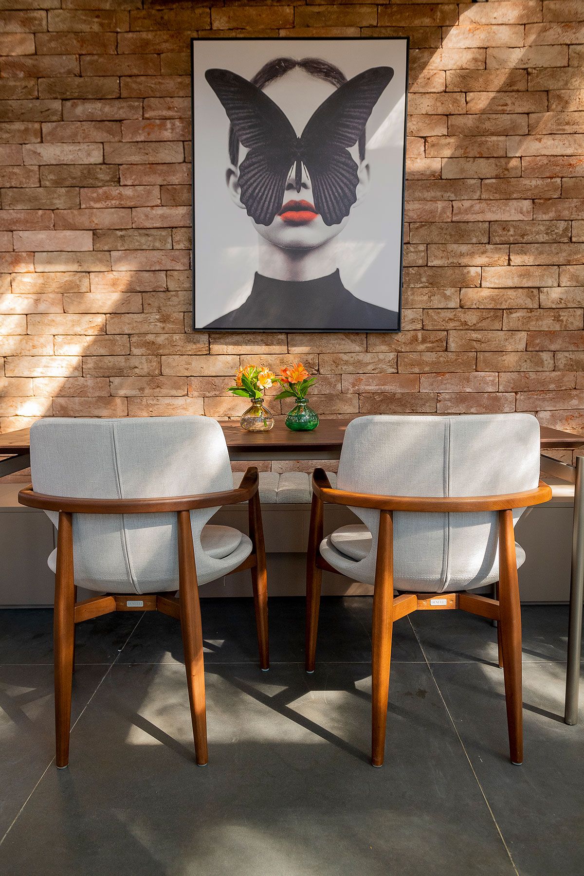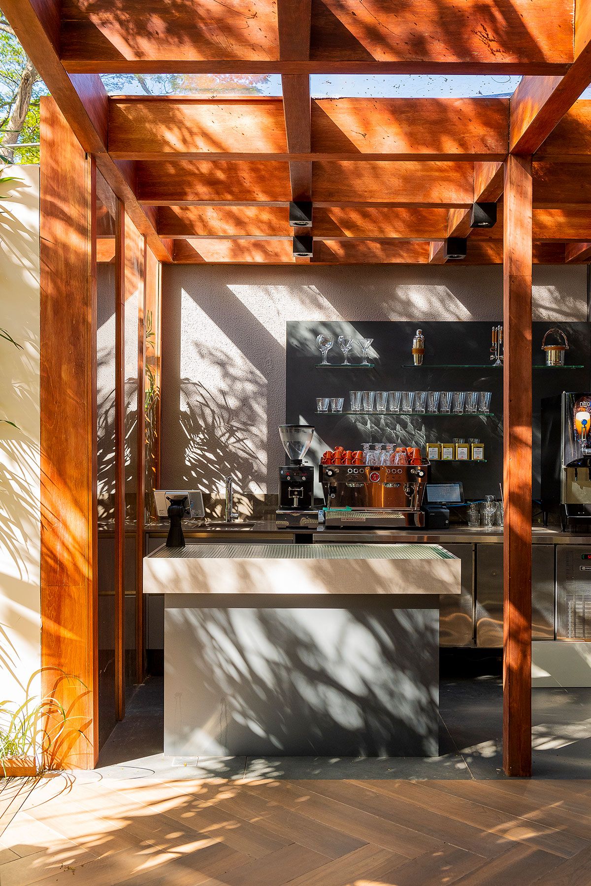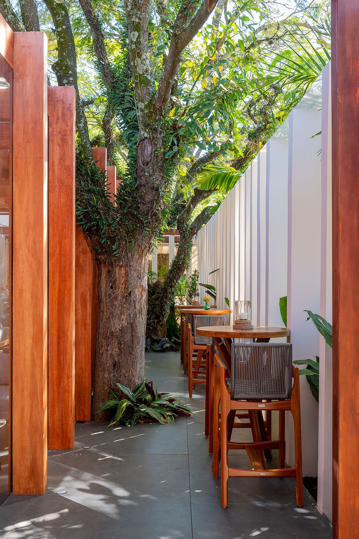 A designer pensou nas diferentes personalidades, preocupando-se em criar formas de receber bem quem procura por um minuto de relaxamento. Jóia criou dentro do macro, pequenos universos orgânicos nas diversas formatações de mesas para que os clientes se sintam à vontade, seja na mesa coletiva, no deck ou sozinho, curtindo uma boa música ou livro.